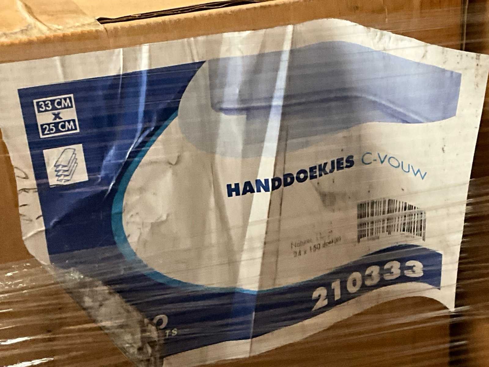 Bestaande uit: servetten 40x40, 33x33, 25x25cm, handdoeken C-vouw en Z-vouw, diverse zeep