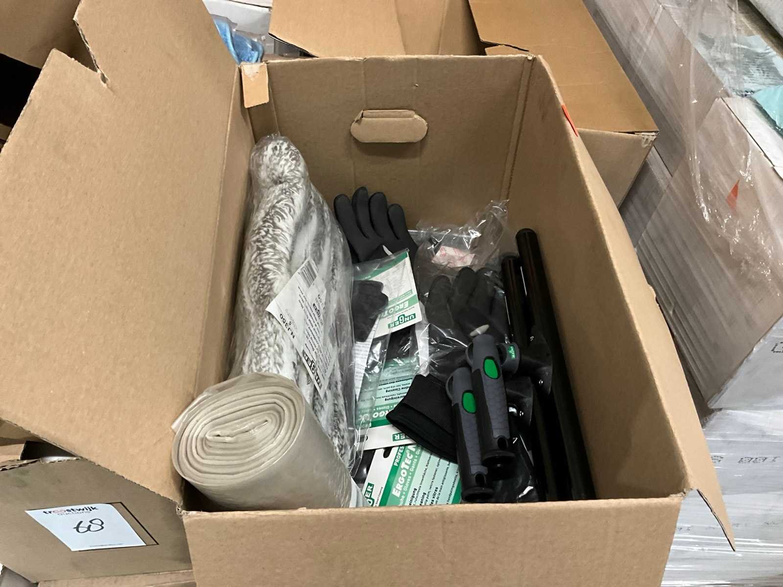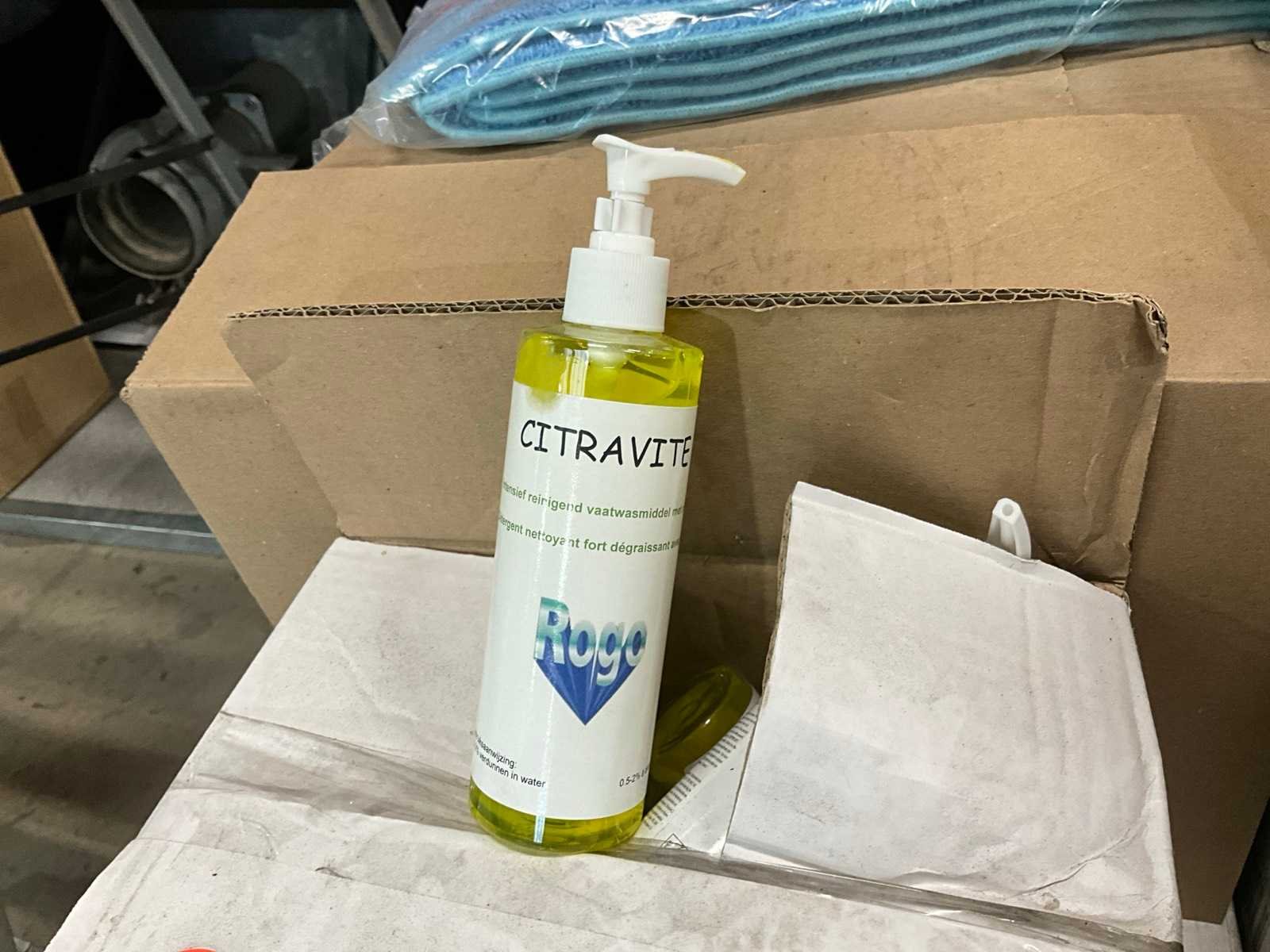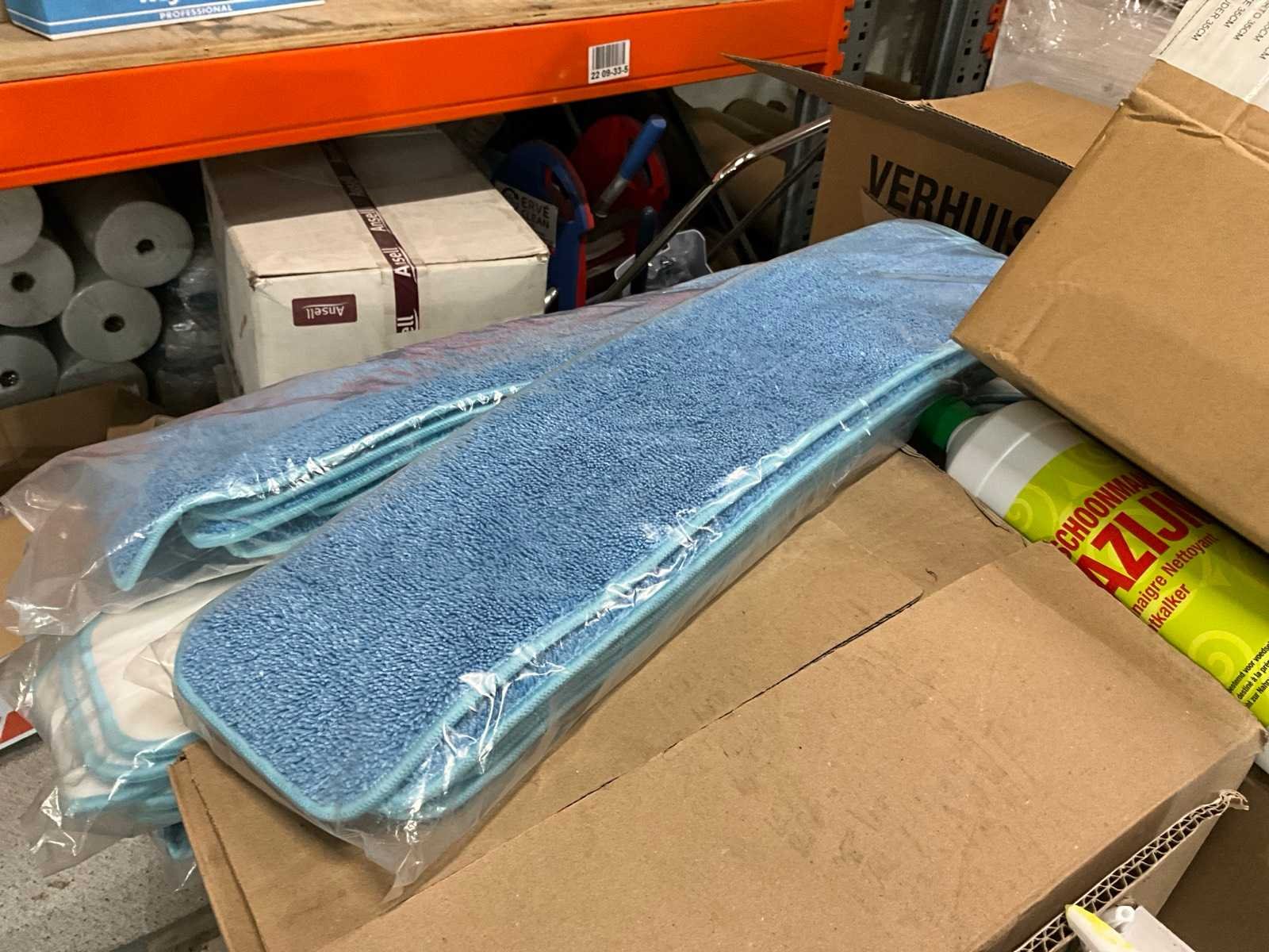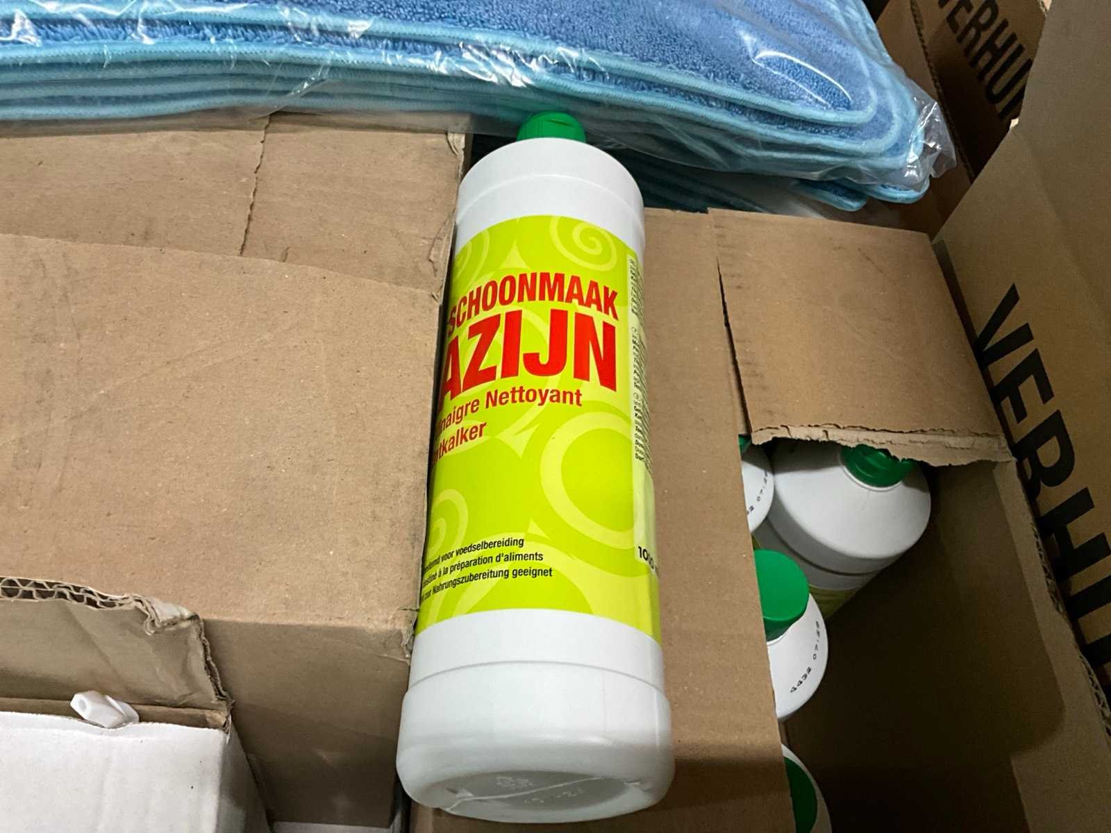 Waaronder vaatwasmiddelen; schoknmaakazijn; allesreiniger; Unger werkhandschoenen; ruitenwas zeemdoeken; in diverse dozen op pallet;