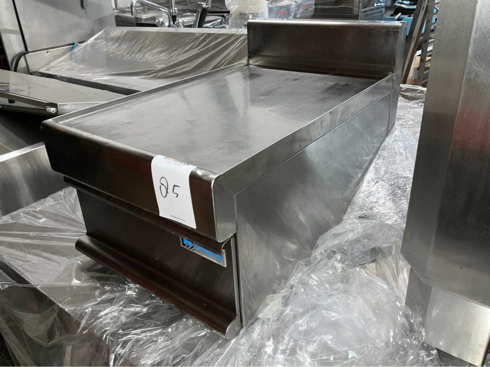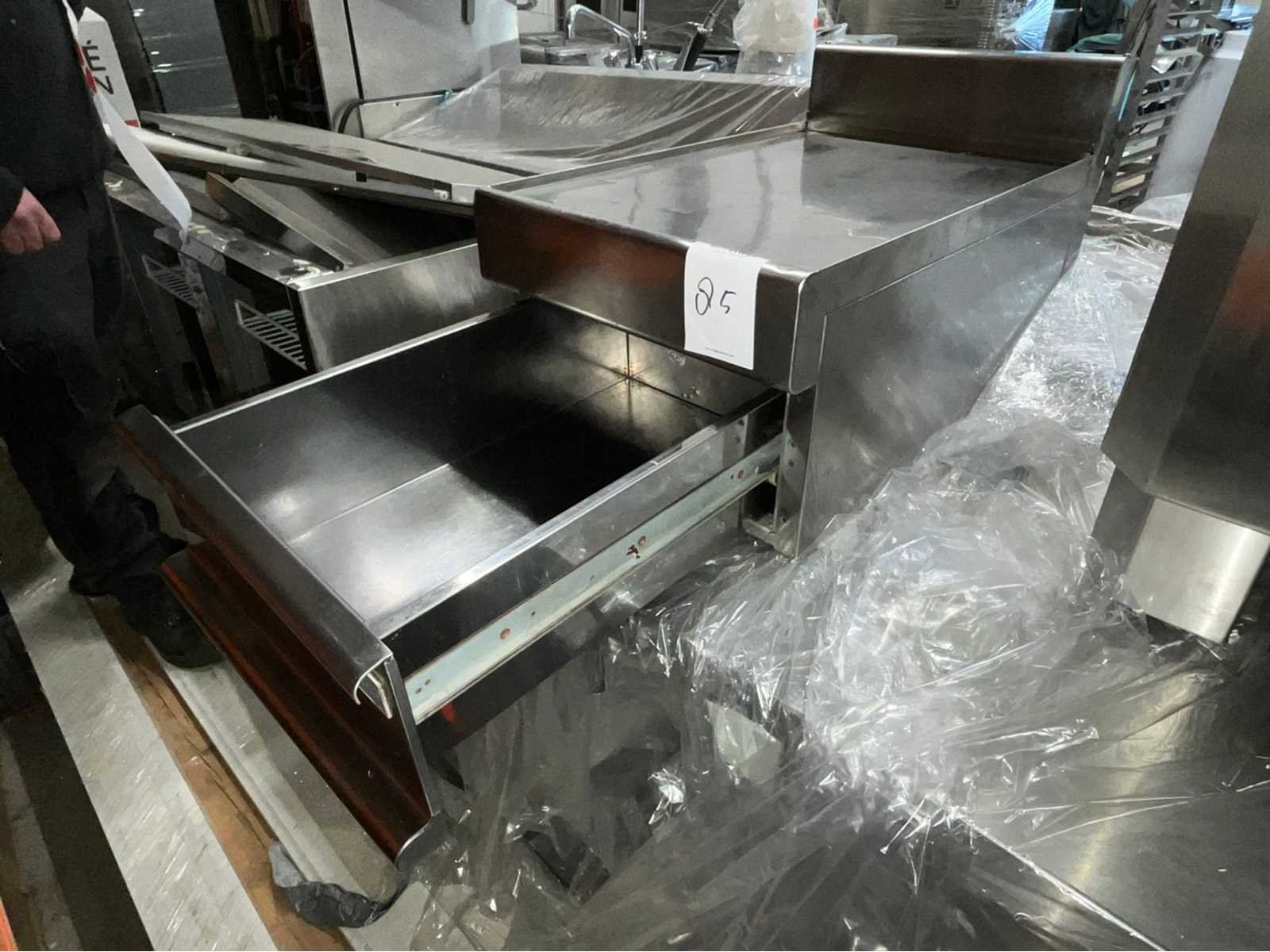 Tafelmodel; roestvast staal; voorzien van lade; gebruiksporen; Merk: Modular Lengte: 40cm Breedte: 65cm Hoogte: 40cm