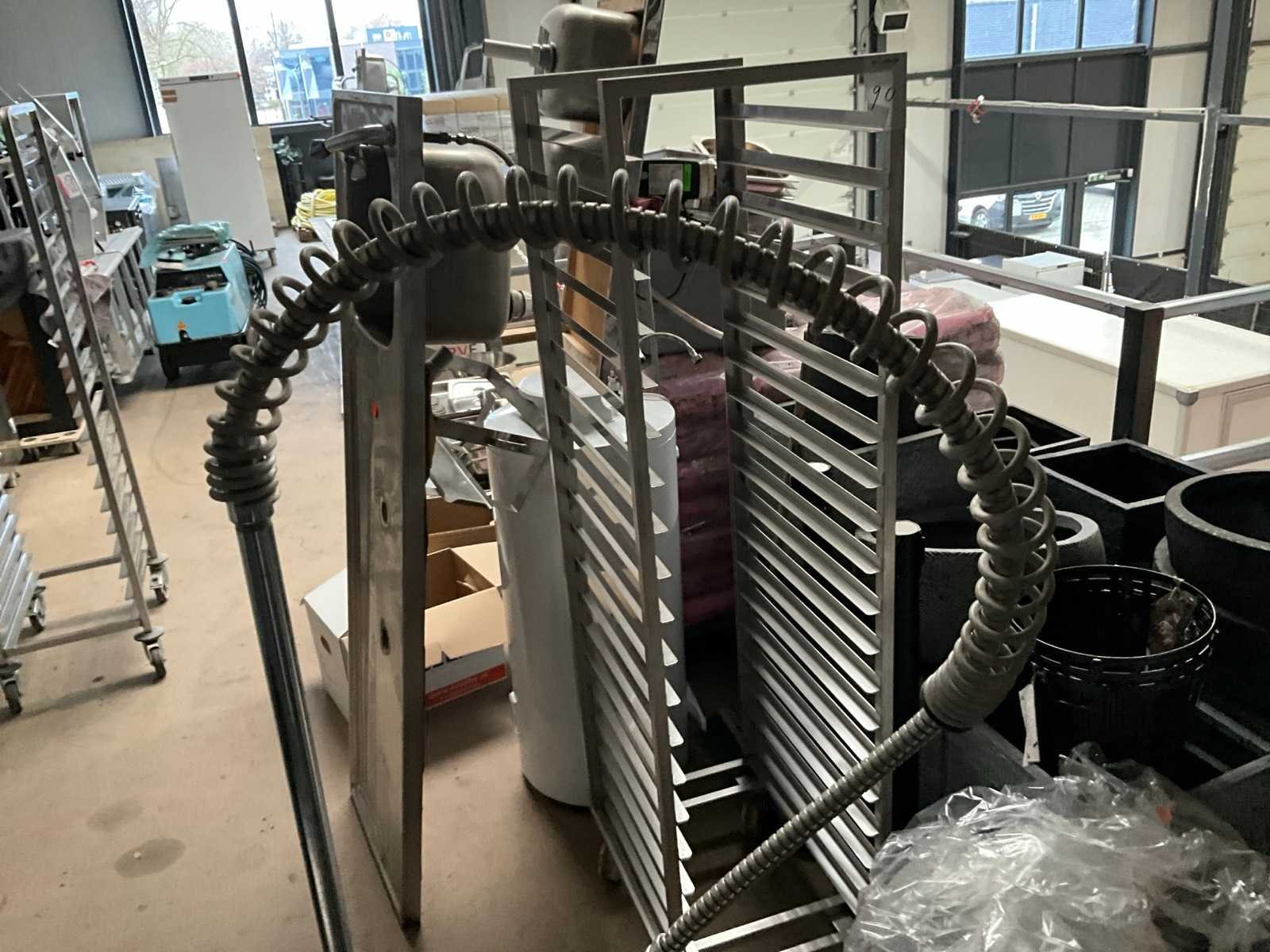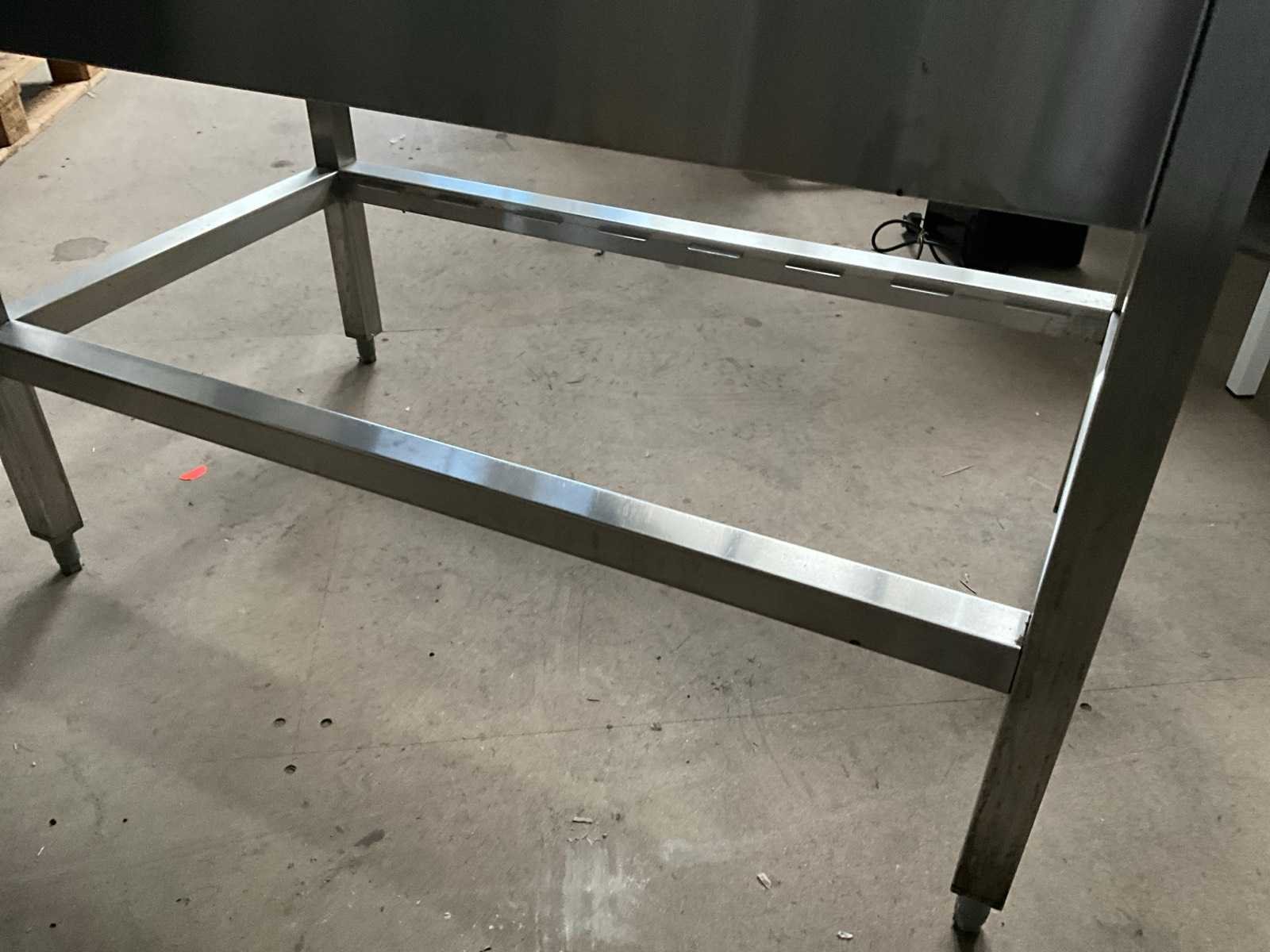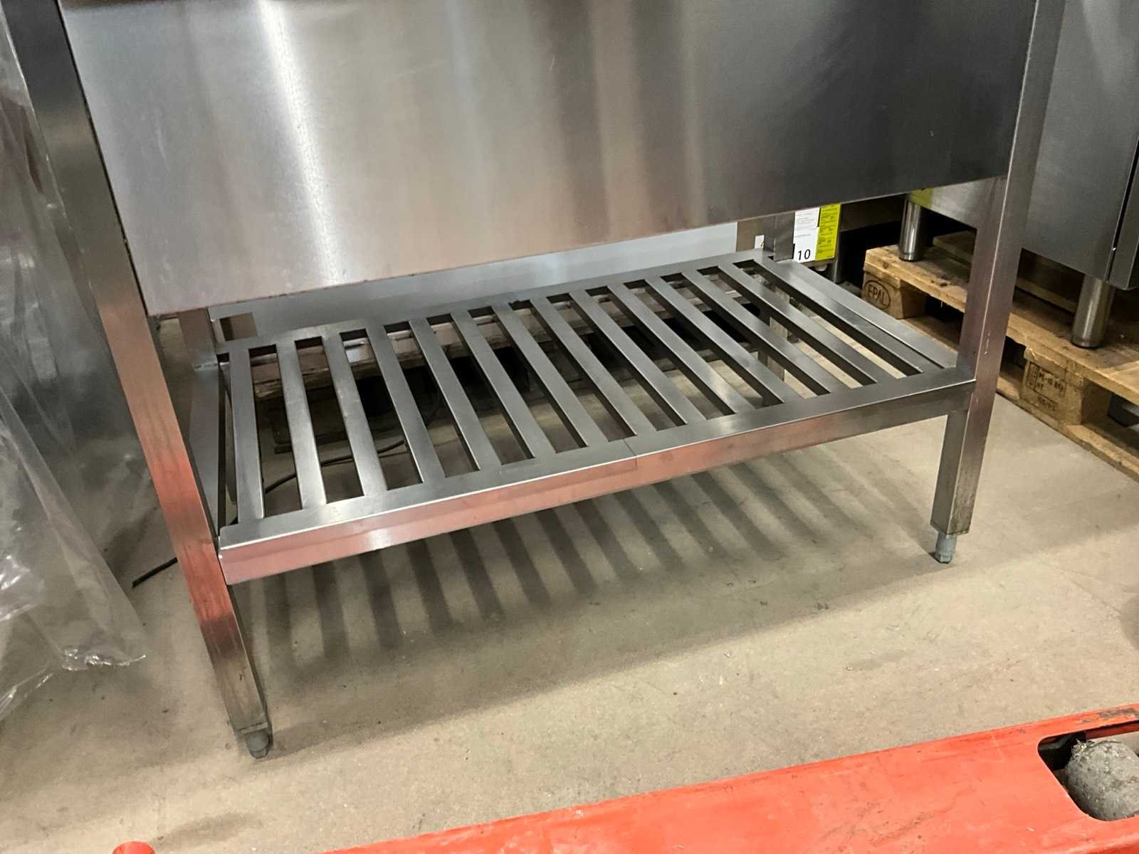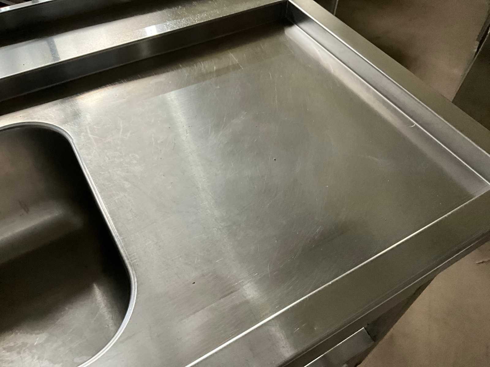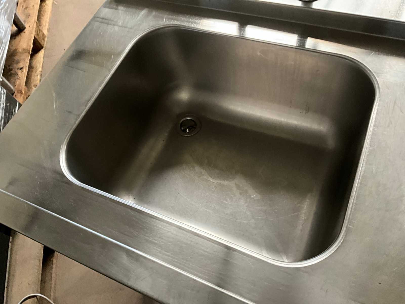 Roestvast staal; kraan met spoeldouche; onderlegrooster; Lengte: 70cm Breedte: 110cm Hoogte: 180cm