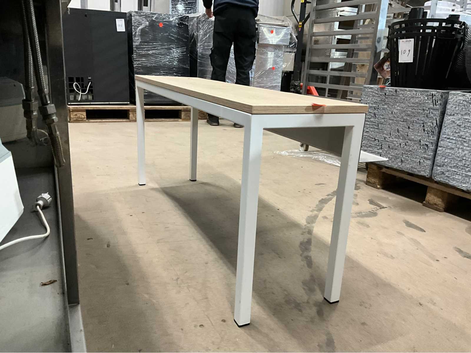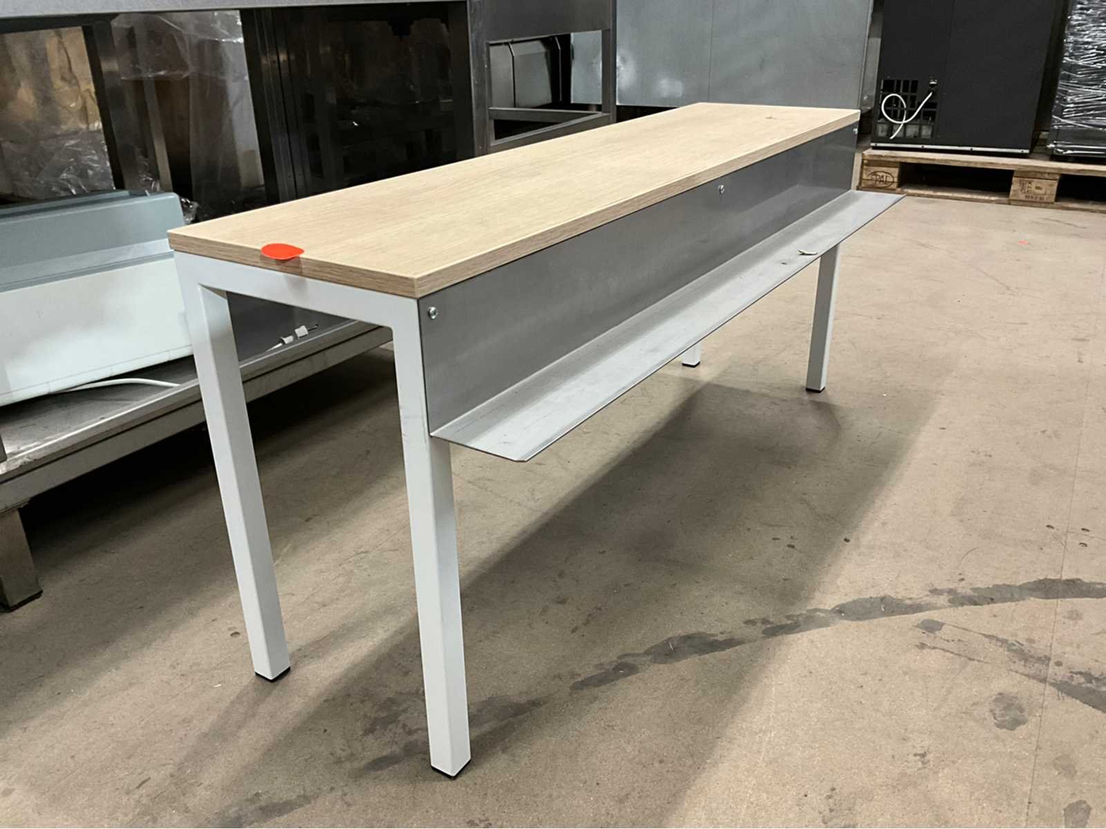 Profielstaal onderstel; gelamineerd blad; roestvast staal afwerking; afmeting 1180x300/400x530 mm;
