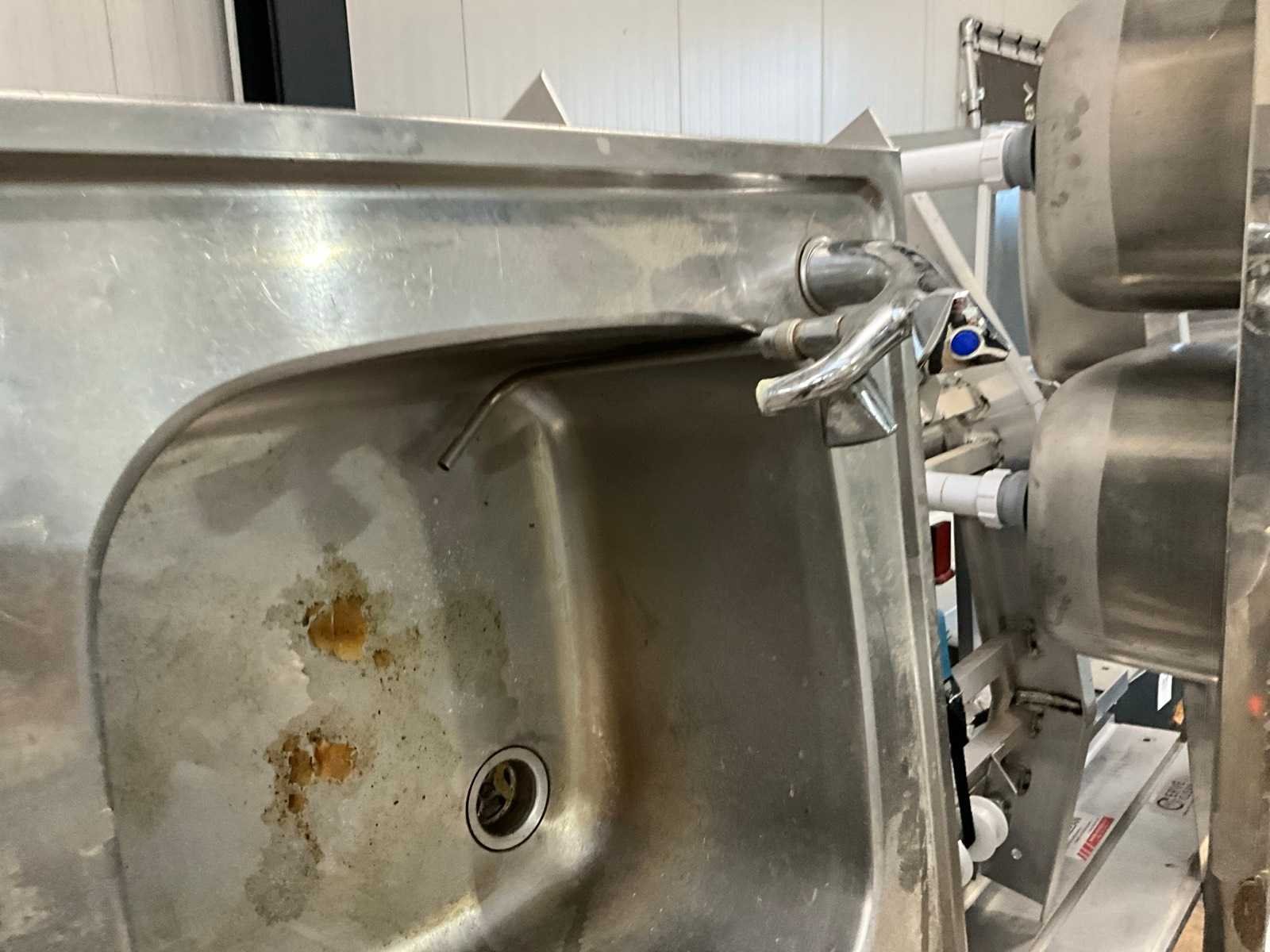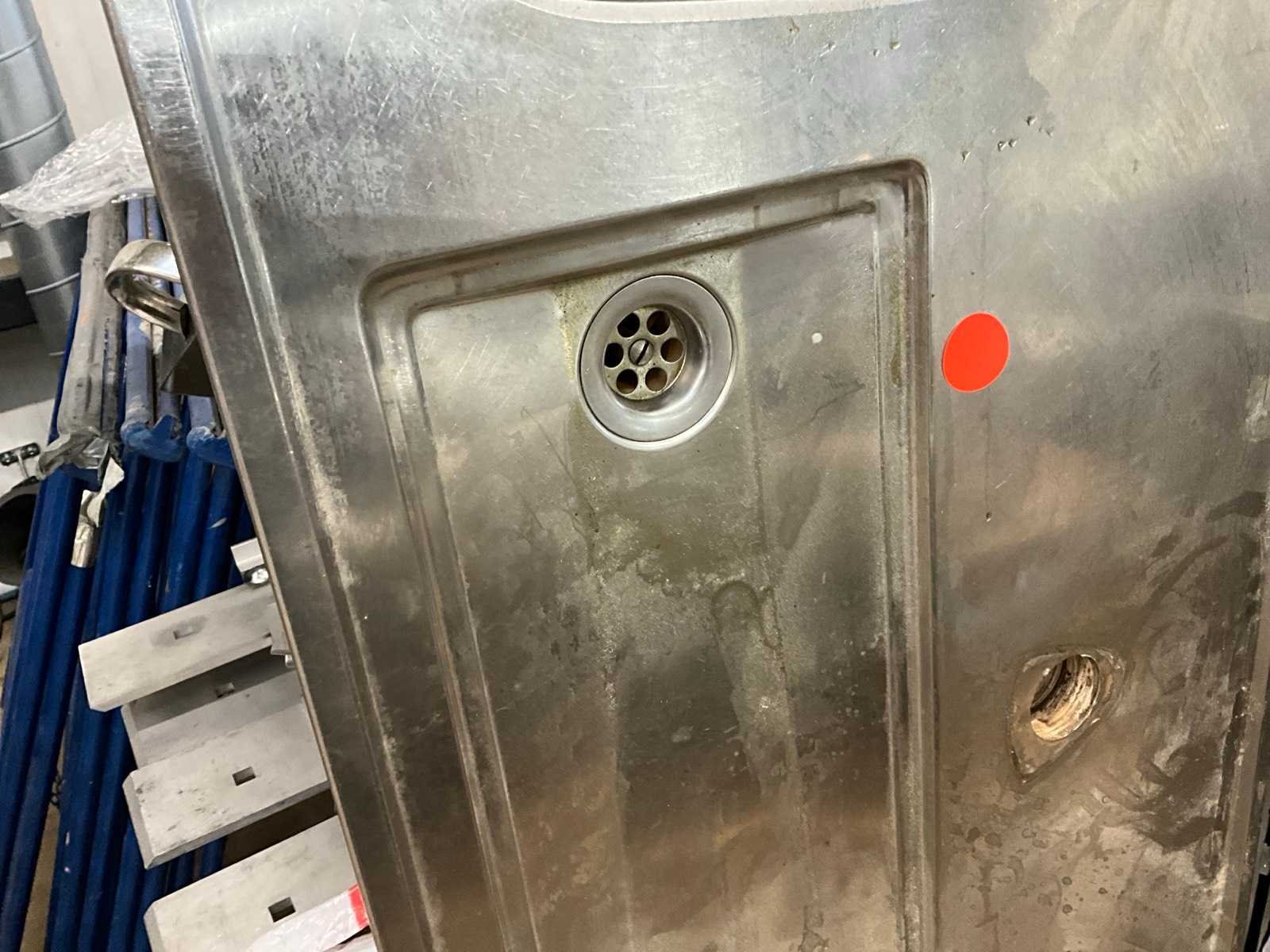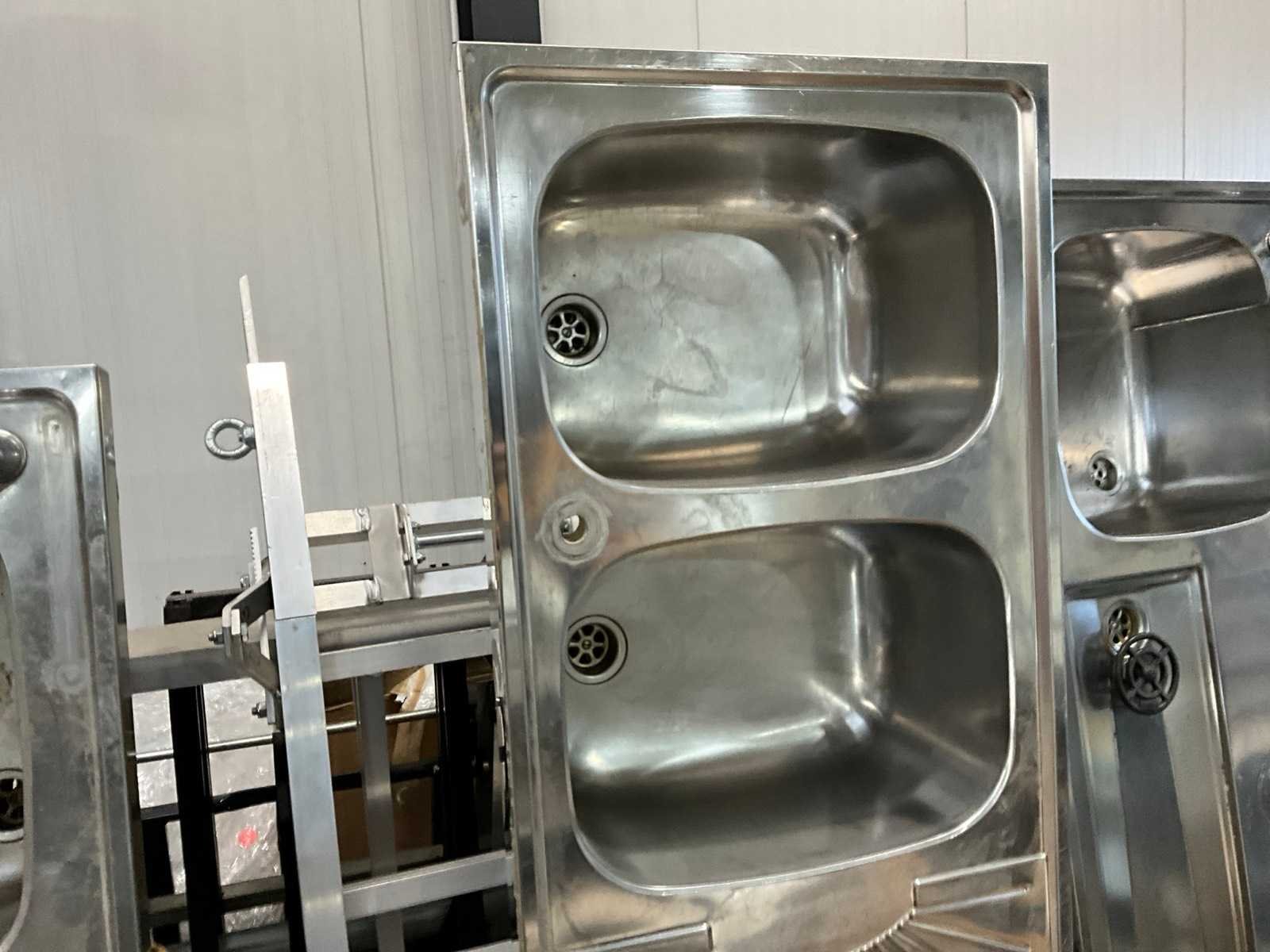 2x enkele spoelbak met tapgoot, 1x dubbele spoelbak, 1x werkblad