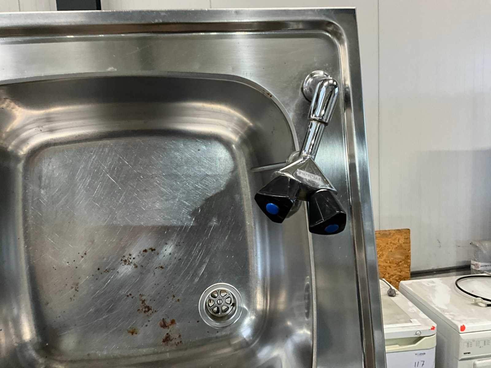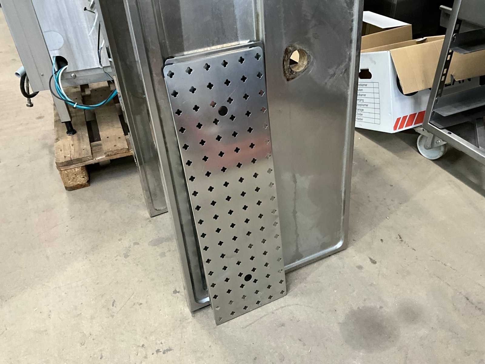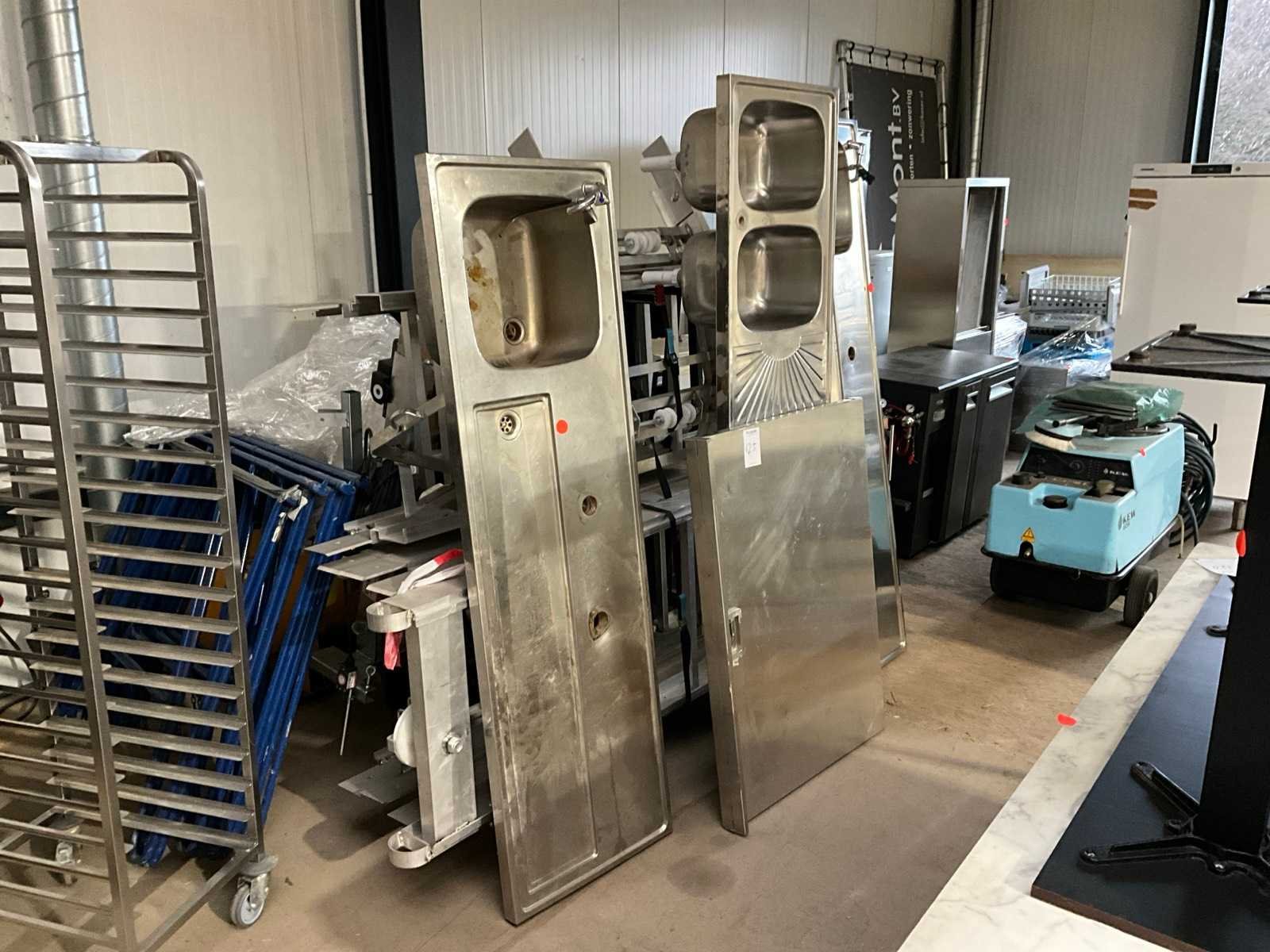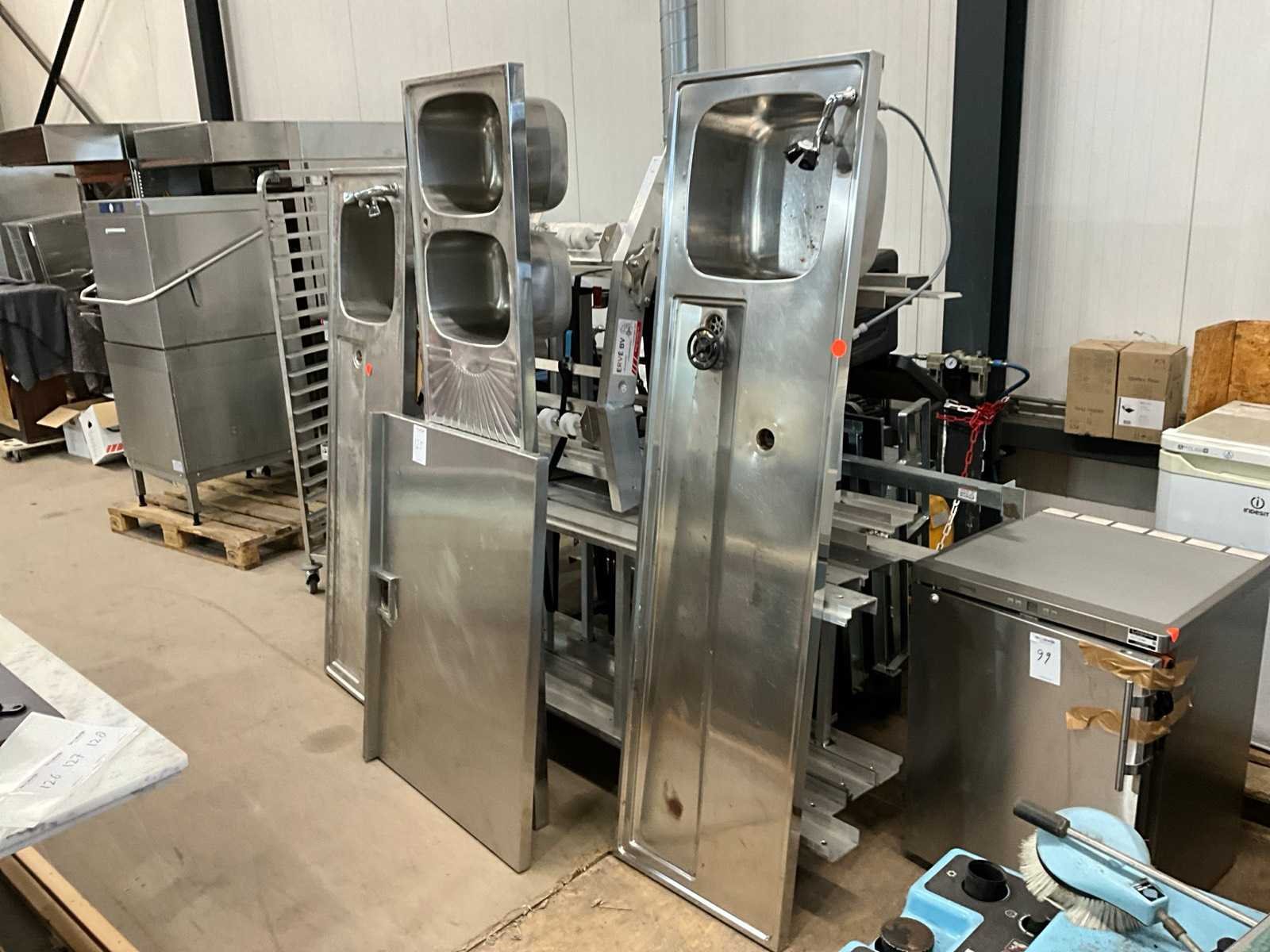 2x enkele spoelbak met tapgoot, 1x dubbele spoelbak, 1x werkblad