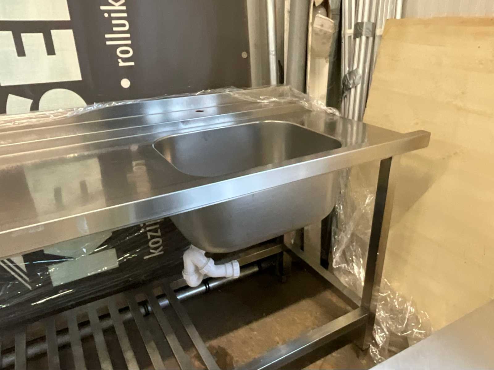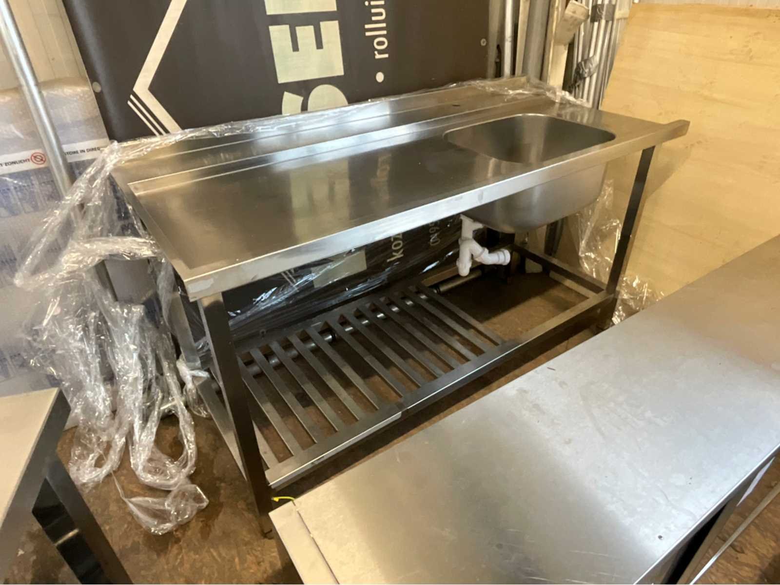 Roestvast staal; spoelbak afmeting 400x500x240 mm; voorzien van onderlegrooster; Lengte: 165cm Breedte: 62cm Hoogte: 90cm