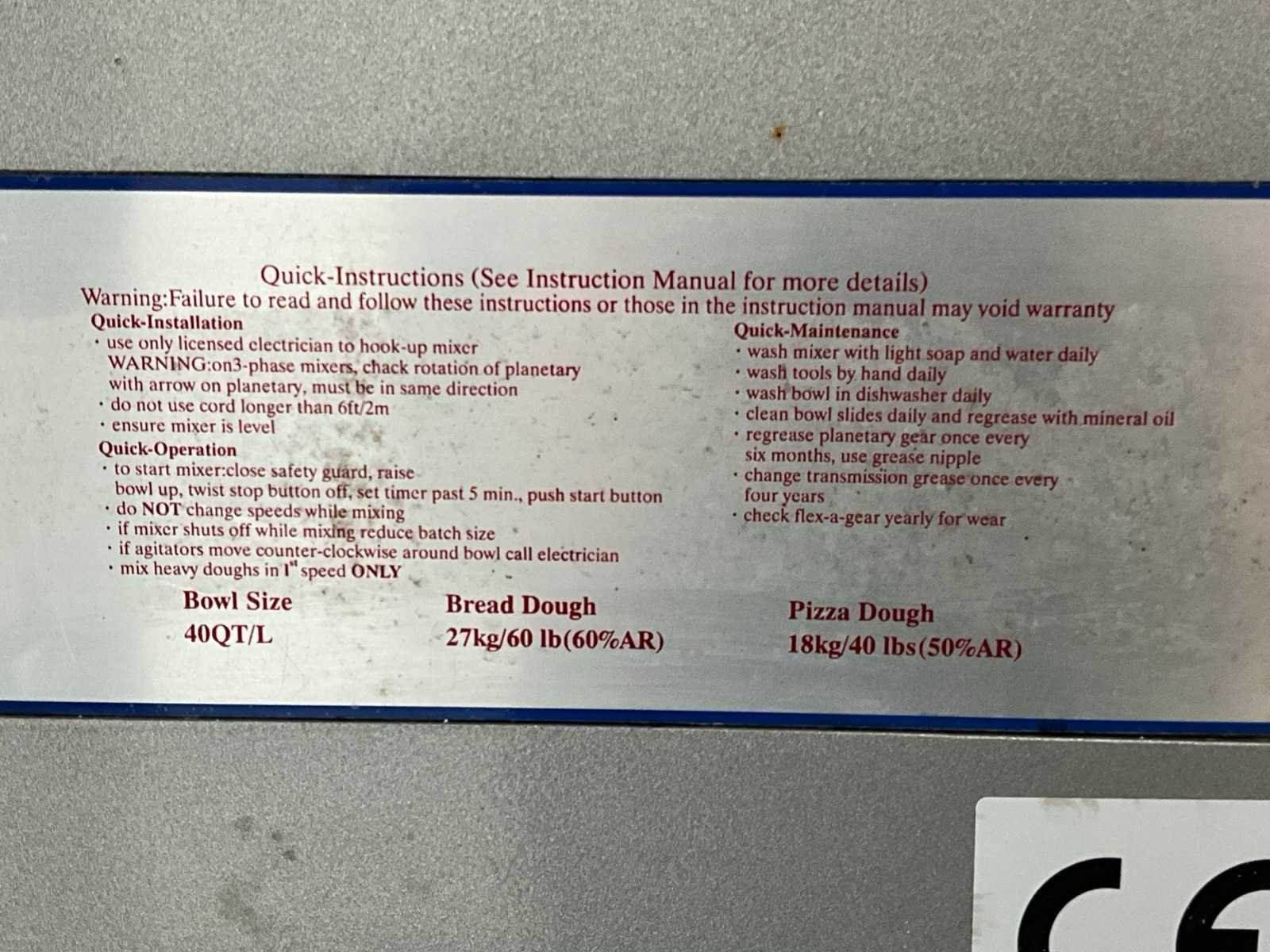 Inclusief roestvast staal kuip inhoud 40 liter; kuip in hoogte handbediend verstelbaar; spiraal kneedhaak; vlinder / harp; Merk: Spar Mixer Type: SP-40HA-E Bouwjaar: 2020 Aansluiting: 400V Totale afmeting L: 700mm Totale afmeting Breedte: 800mm Totale afmeting Hoogte: 1350mm