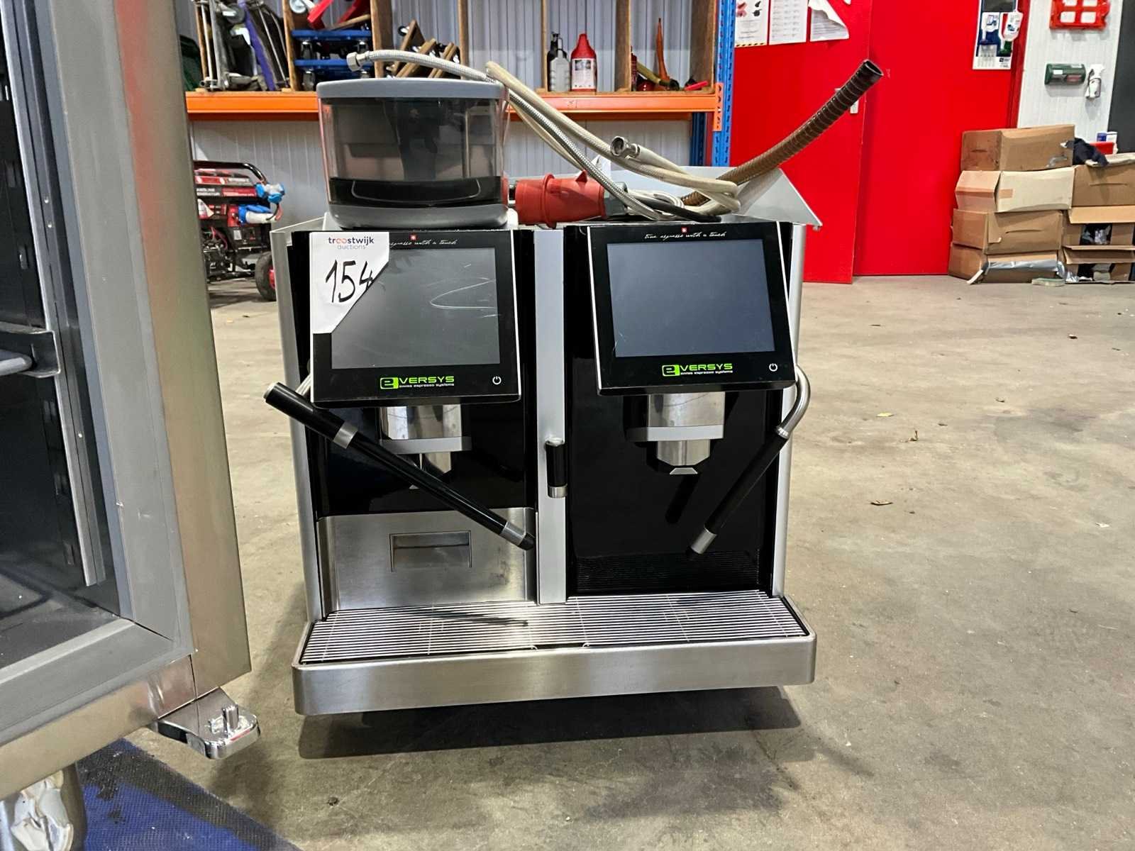Tafelmodel; tiptoets bediening; bovenop gebouwd koffiebonen station; diverse aansluitingen; werkend in opslag genomen en gereinigd. vervolgens niet meer getest Eversys E4M Aansluiting: 400V Aantal groepen: 2pcs Beker/glasverwarming: true Totale afmeting L: 600mm Totale afmeting Breedte: 600mm Totale afmeting Hoogte: 650mm
