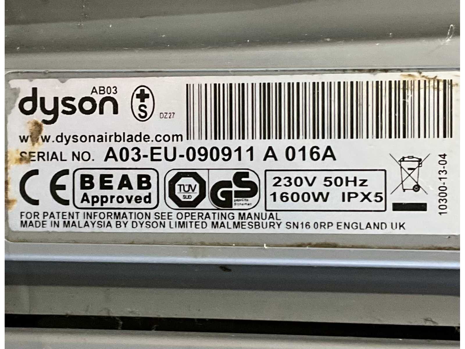 Merk: Dyson Type: Airblade AB03 Totale afmeting L: 300mm Totale afmeting Breedte: 260mm Totale afmeting Hoogte: 650mm