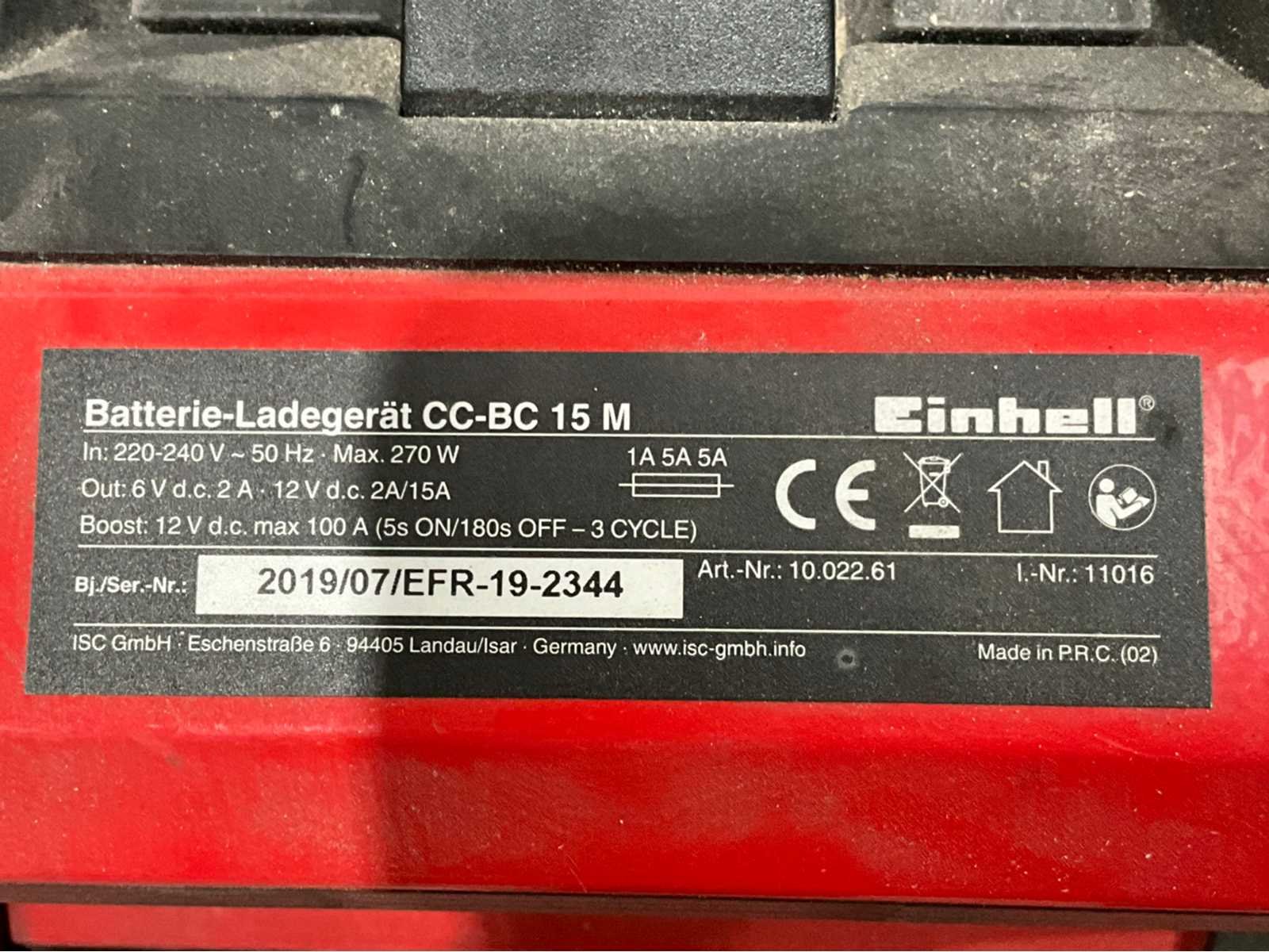 6 - 12 Volt uit; Merk: Einhell Type: CC-BC 15M Bouwjaar: 2019 Aansluiting: 230V
