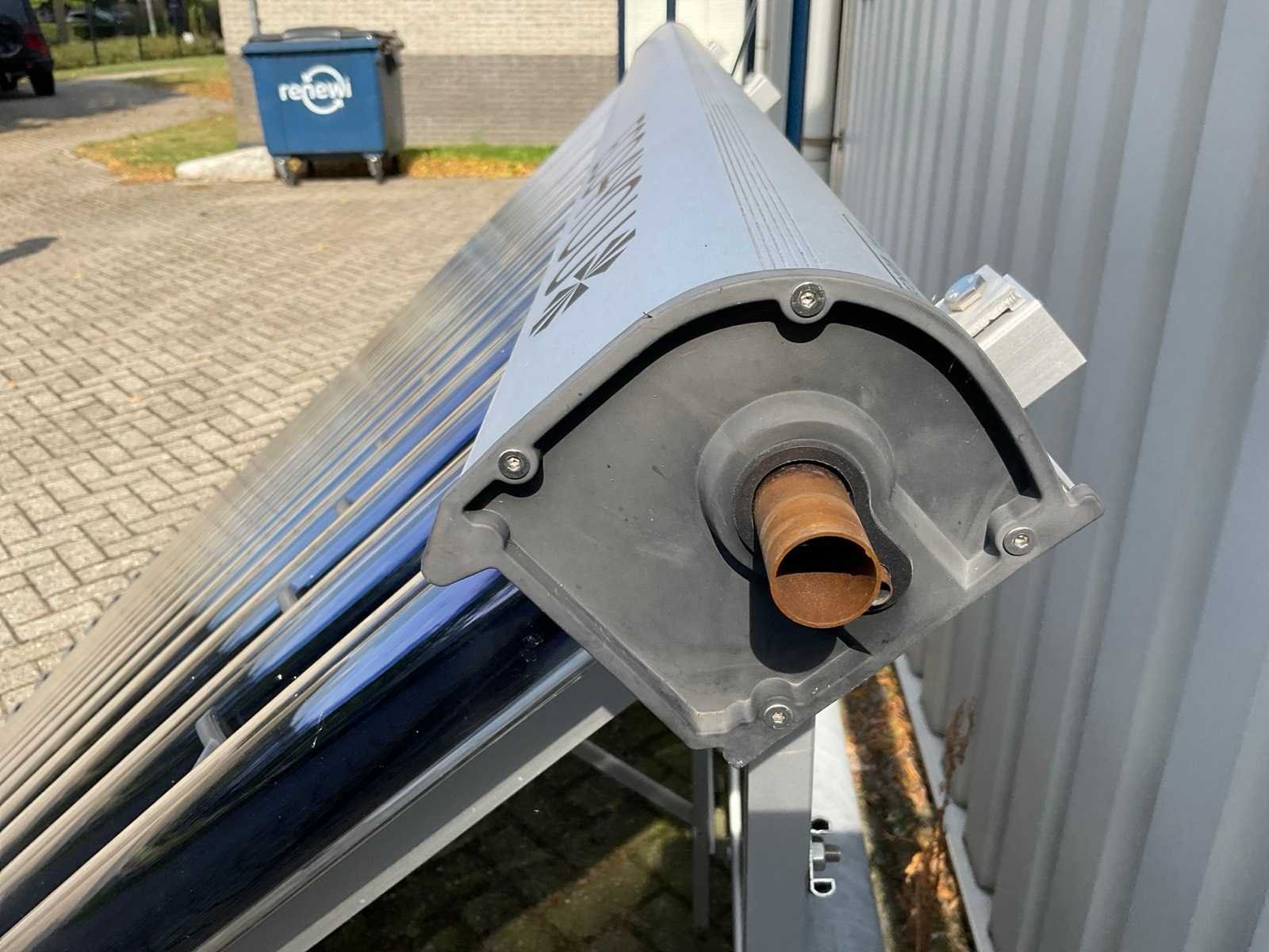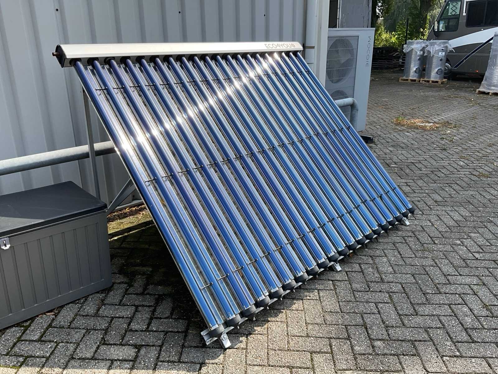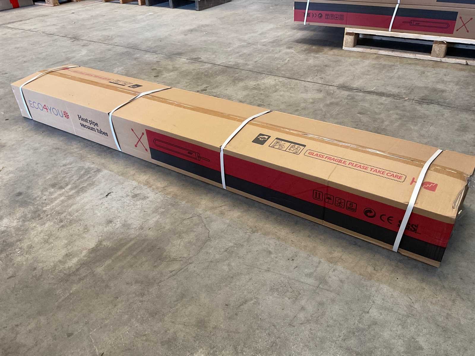 Bestaande uit: 60 vacuümbuizen, diameter 58 mm, aansluiting 22 mm, 60x parabolische spiegelreflector; Bij ophalen inclusief dak montageset voor vlak dak of schuin dak; in originele verpakking; Merk: Eco4You Type: CPC-HP Vacuümbuis type: true Totale afmeting L: 2000mm Totale afmeting Breedte: 2230mm Totale afmeting Hoogte: 130mm