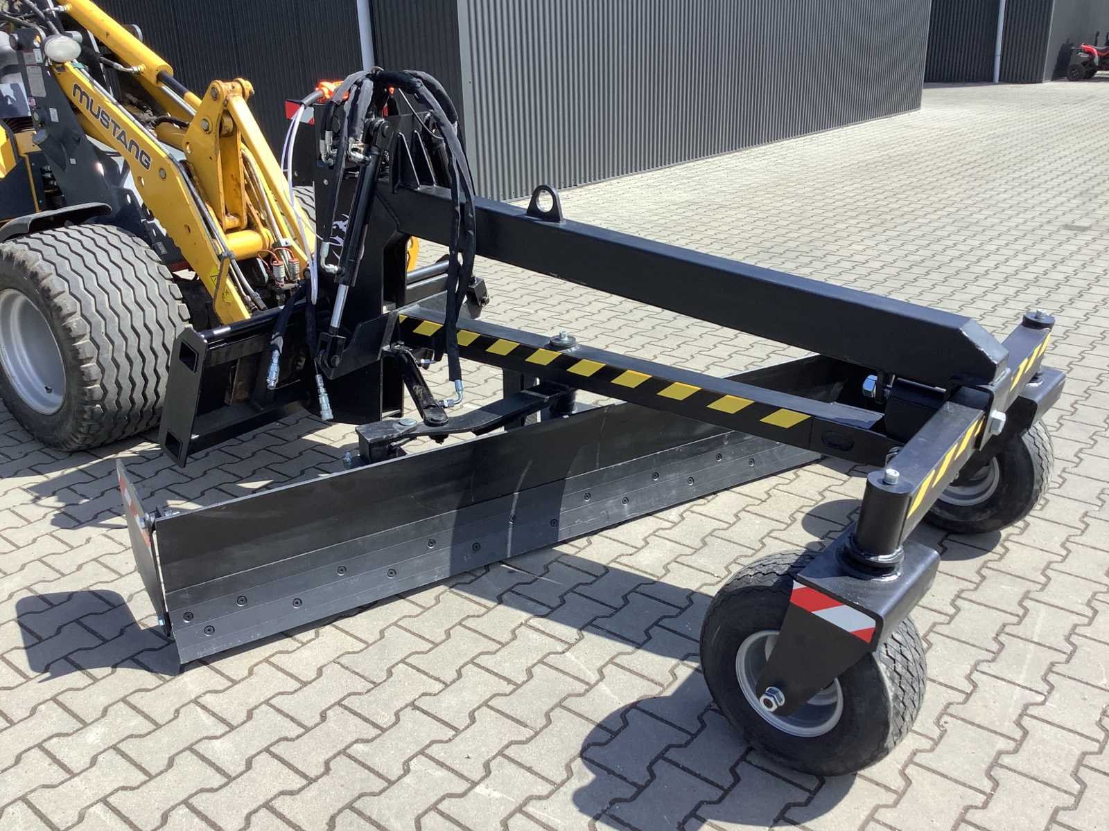 Werkbreedte 240 cm, hydraulisch bestuurbaar, voorzien van afstandsbediening (aan te sluiten op 12V systeem), rotatiehoek 25 graden, hellingshoek 24 graden, hydropomp, hydraulisch slangenpakket met aansluitingen, Bobcat/schranklader opname-/aanbouwplaat, luchtbanden, ongebruikt Merk: Field Type: Leveller 2400 Bouwjaar: 2025 Eigen gewicht: 520kg Totale afmeting L: 2900mm Totale afmeting Breedte: 2425mm Totale afmeting Hoogte: 1350mm