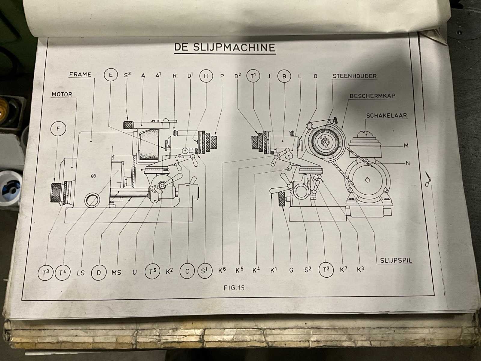 Voorzien van diverse spandoeken en slijpstenen, machineboek Merk: Deckel SO Serienummer: 74-16339 Afmeting l: 500mm Afmeting b: 200mm Afmeting h: 1450mm
