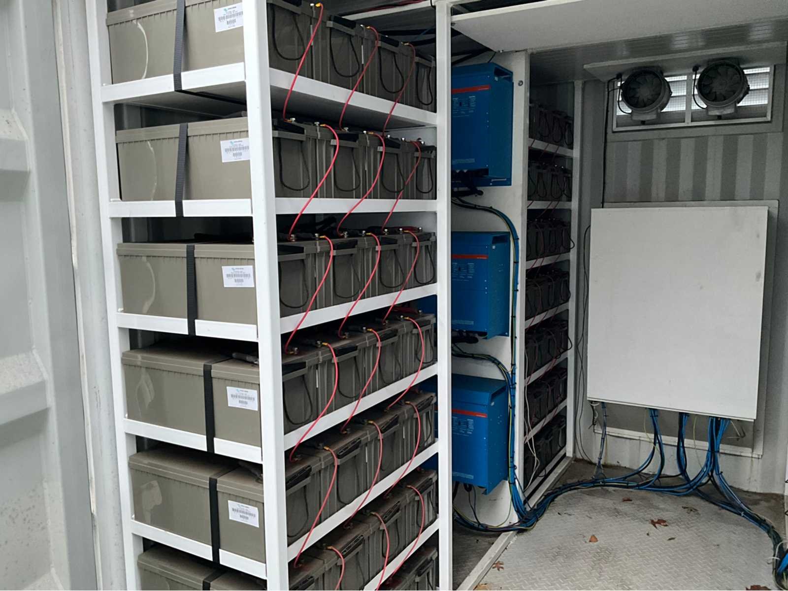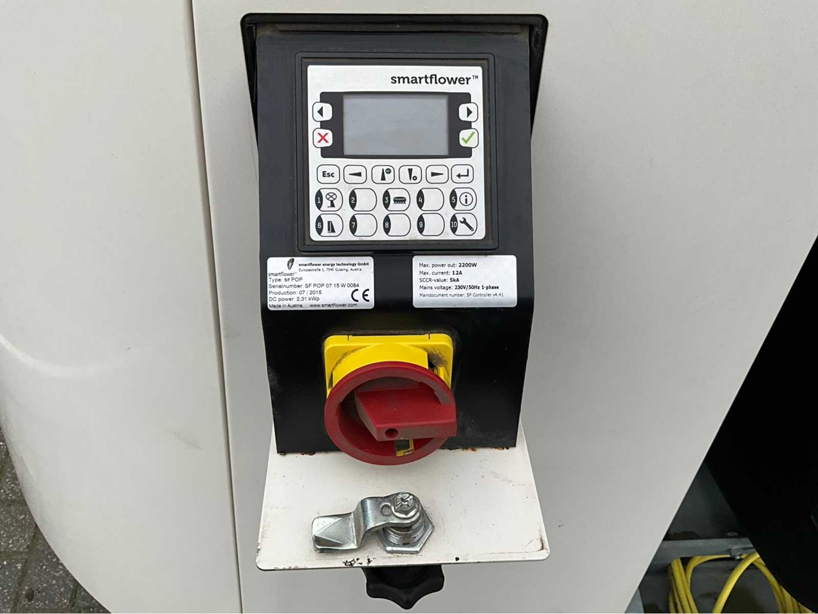 Voorzien van smartflower pop zonnepanelen gemonteerd op stalen onderframe stapelbaar op 10 ft container AC vermogen 2200Watt vermogen DC 2,31 KWP, 112 stuks AGM accu’s á12V-220ah, 6 stuks victron Quattro omvormers type 48volt/10000va/140amp, ventilatie, vermogen 50 KVA, Capaciteit 300kwh, spanning 230V & 400V, geschikt voor zonnepanelen maximaal 20000W, Merk: Victron-energie Type: 10 ft Serienummer: 3 Machinegewicht: 10000kg Totale afmeting L: 3000mm Totale afmeting Breedte: 2400mm Totale afmeting Hoogte: 2600mm