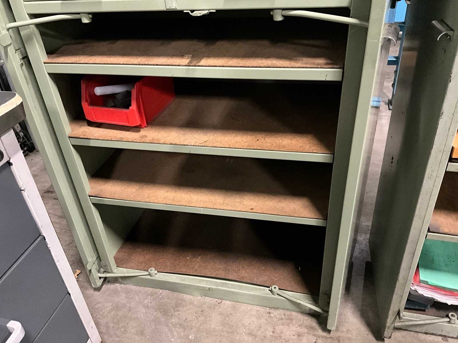 Voorzien van 2 laden en 3 legborden afsluitbaar d.m.v. 2 deuren en diverse inhoud Merk: Widenhorn Lengte: 41cm Breedte: 85cm Hoogte: 101cm Materiaal: Staal