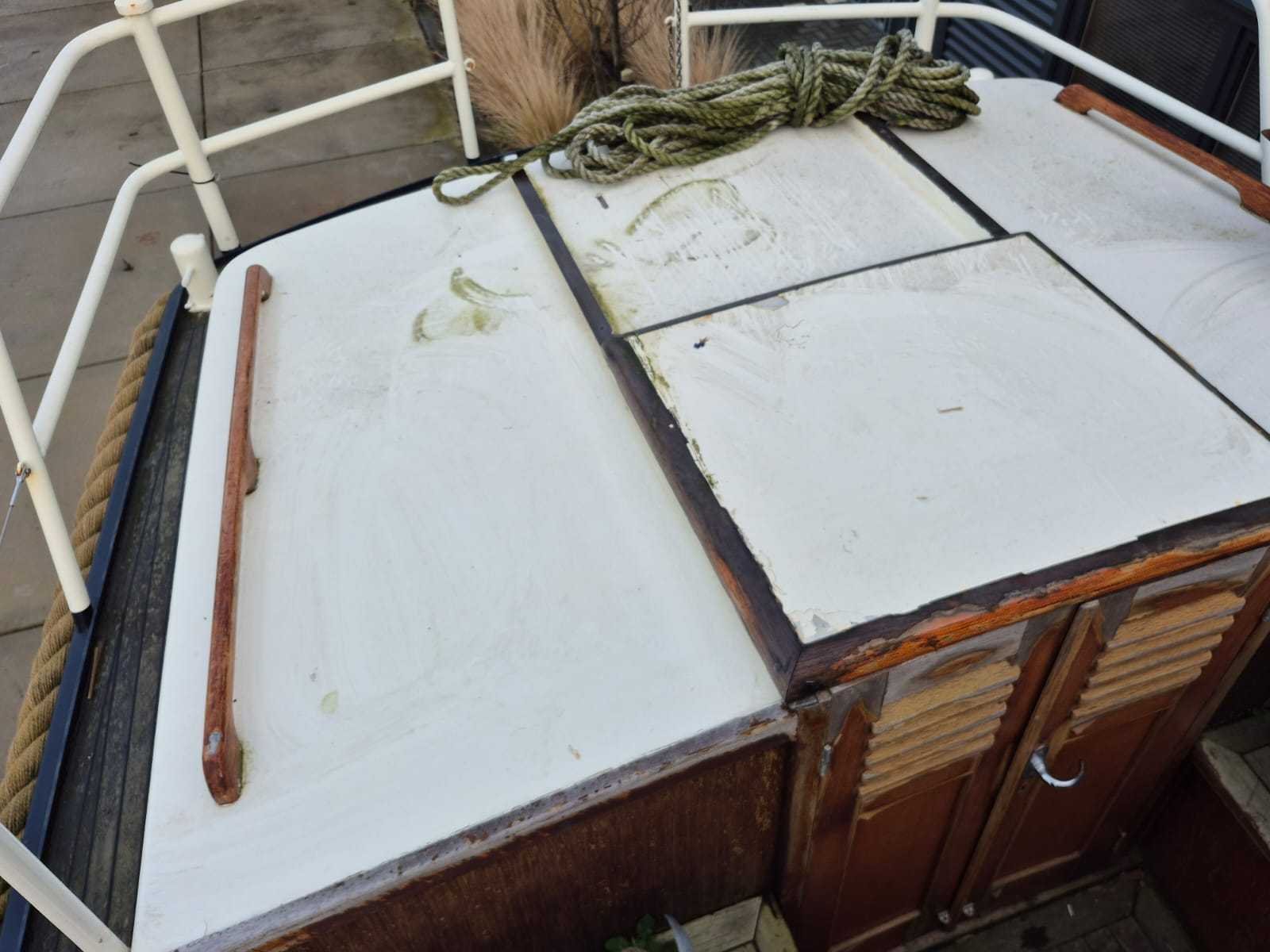 Valkvlet 1030 OK AK Afbouw project alles is er bij 10,30 lang 3,30 breed 1,85 sta hoogte 0,90 diepgang Motor Peugeot 4 cilinder Diesel Aluminium ramen Teakdek Volledige teak vloer Ankerlier Kachel Victeron Omvormer 2000w Toilet Keuken Touwen Stoot Kussens Let op de boot ligt in Harlingen. Kan eventueel op transport gezet worden. Exclusief transportbok Merk: Valkvlet Type: 1030 Lengte: 10,30m Breedte: 3,30m Diepgang: 0,90m Rompmateriaal: Metaal Stahoogte: 185cm Aantal motoren: 1 Merk motor: Peugeot Type motor: Peugeot Aantal cilinders: 4 Brandstof: diesel Navigatieverlichting: true Toilet: true