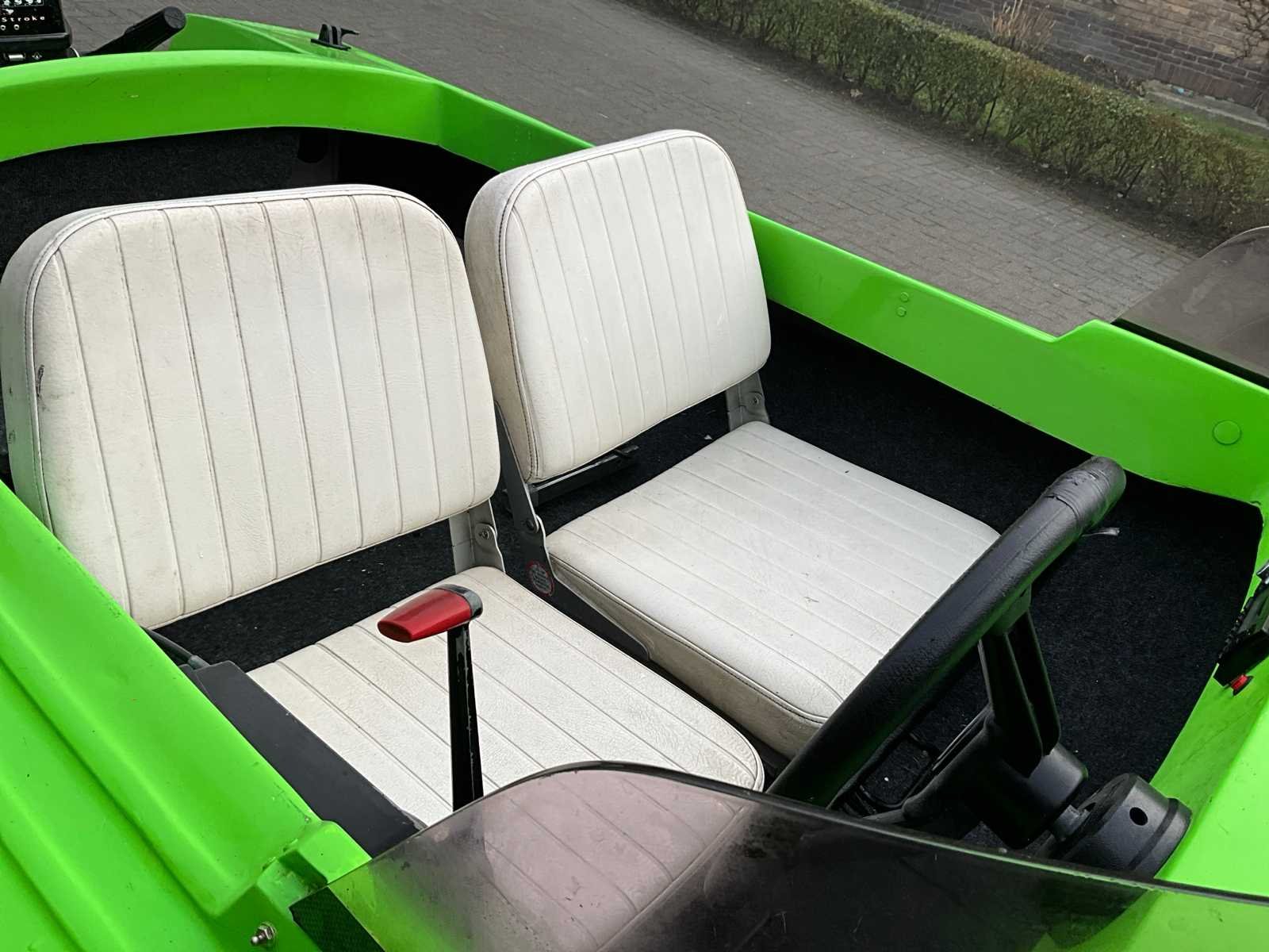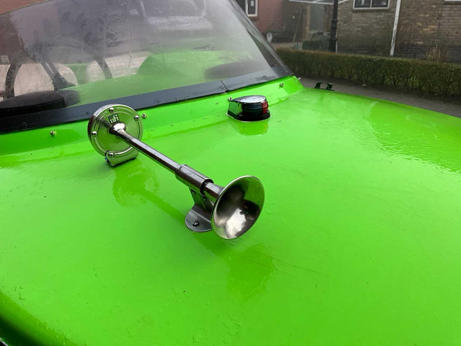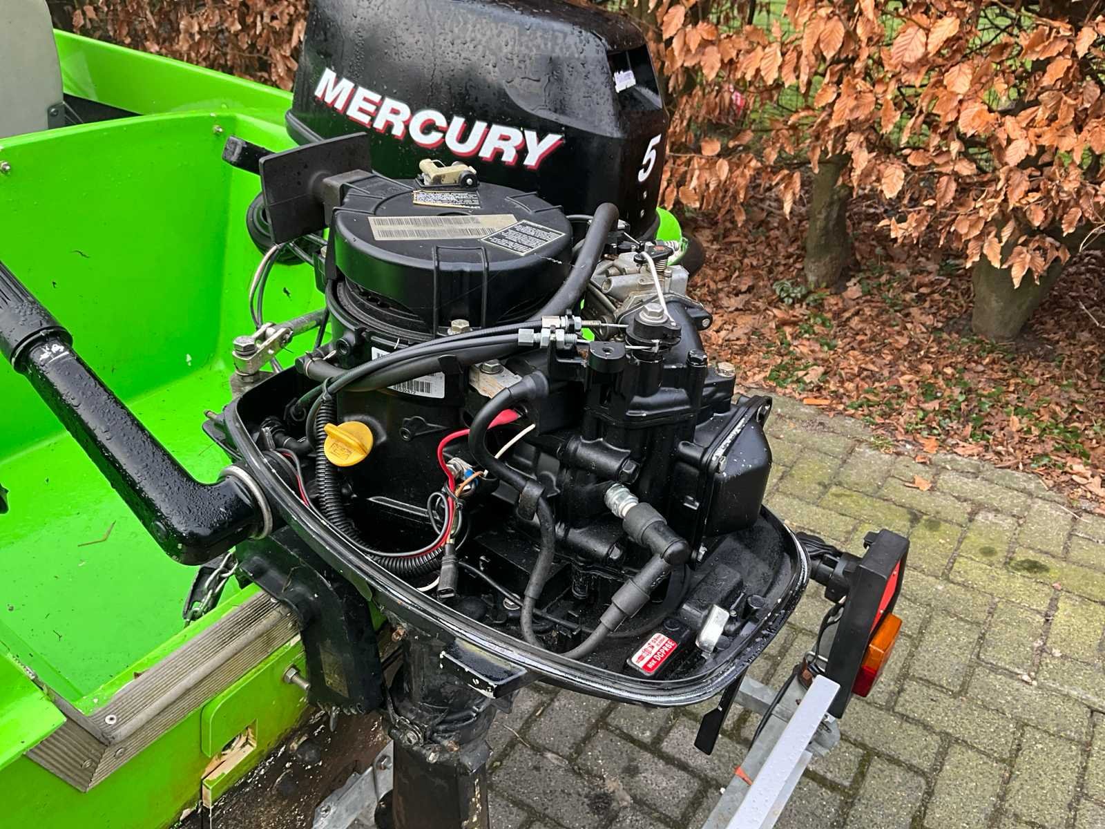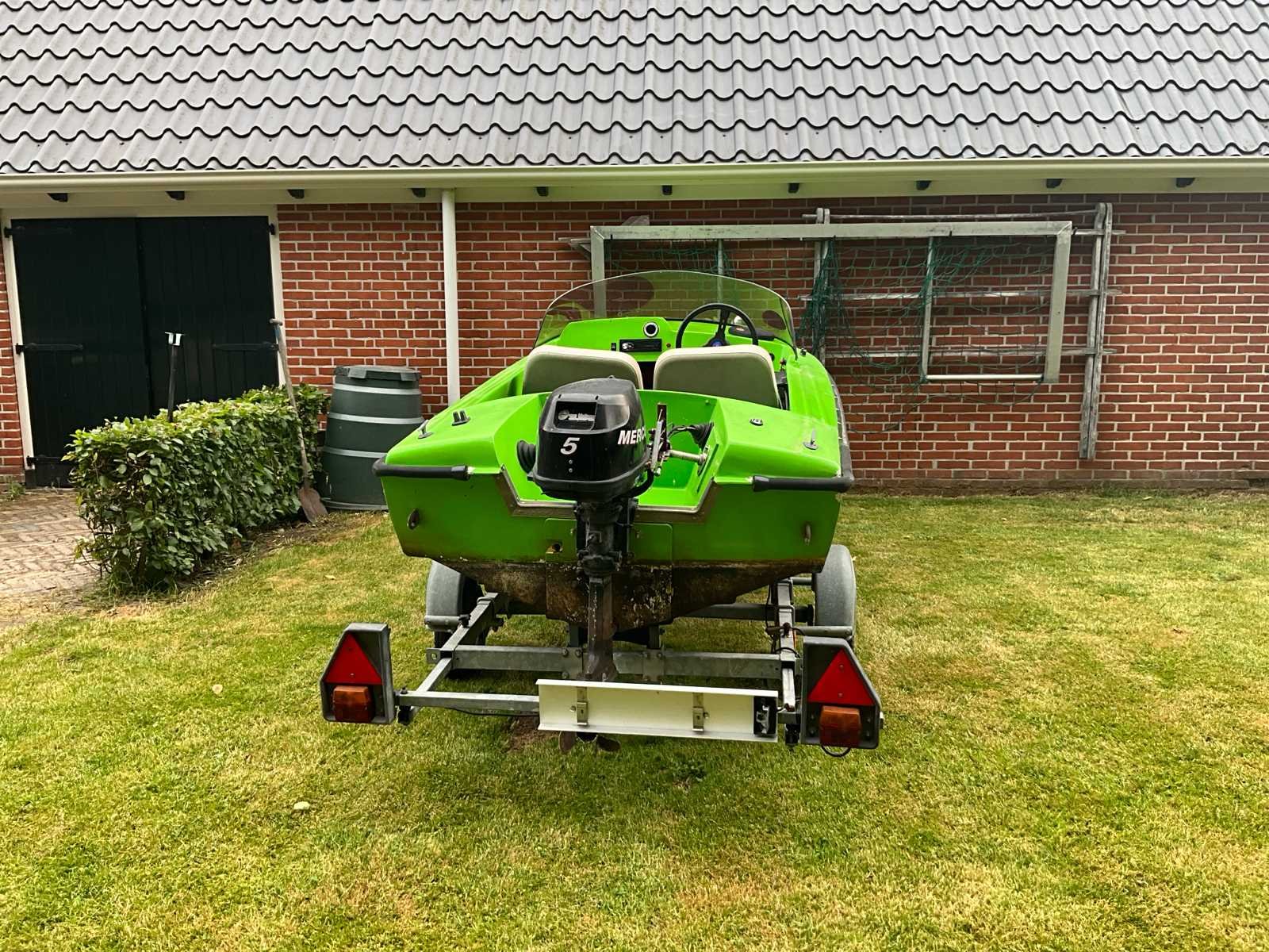 Stijlvolle groene boot met 2 zitplaatsen, ideaal voor recreatief varen of vissen; 5pk Mercury buitenboordmotor; met trailer: Degelijke boottrailer inbegrepen, klaar voor transport /vaarklaar; op maat gemaakt zeil voor bescherming tegen weersinvloeden; Werkende radio met 2 speakers voor muziek onderweg; Verlichting volledig functioneel, ideaal voor varen in schemer of ’s avonds; Accu inbegrepen, zodat alles direct klaar is voor gebruik; reddingsvest brandblusser vaarklaar Deze boot staat op een trailer en kan achter een auto gekoppeld worden. Na de sluiting van de veiling wordt er contact met u opgenomen om een afspraak te maken voor het afhalen. Merk: Speedboot Type: Pega boottrailer + 5 pk mercury Rompmateriaal: Polyester Brandstof: Benzine Breedte formaat: 1500m Type motor: 5 pk mercury Trailer merk + type: Pega ELG 4.5 450 kg Chassisnummer trailer: 09210 Lengte: 3850 Breedte: 1500