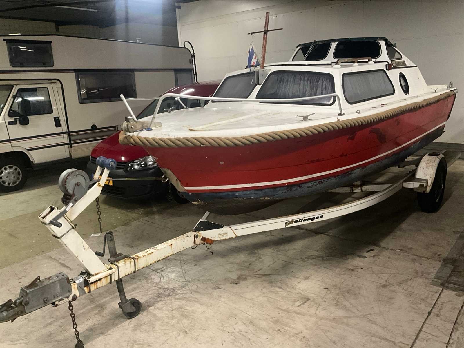 Inter 530 5,30 lang 2,10 breed Inclusief trailer; Trailer heeft geen kenteken Merk: Inter 530 Type: Console Rompmateriaal: Polyester Lengte over alles: 5,30m Breedte formaat: 2,10m