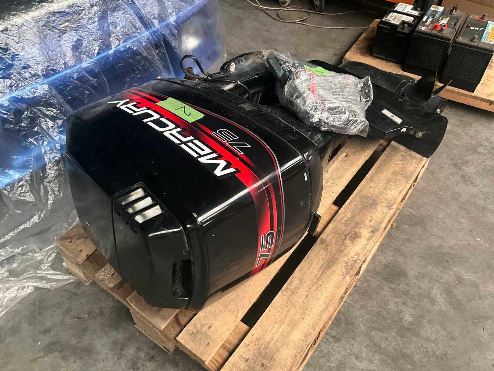 Mercury 75 PK. Bouwjaar 1998 Langstaart met elektrische start en powertrim. Compleet met schakelkast ; Zonder transportbok Merk: Mercury Model: Langstaart Type: 75 pk Product type: 2-takt Brandstof: Benzine Vermogen: 75hp Vermogen (pk): 75hp