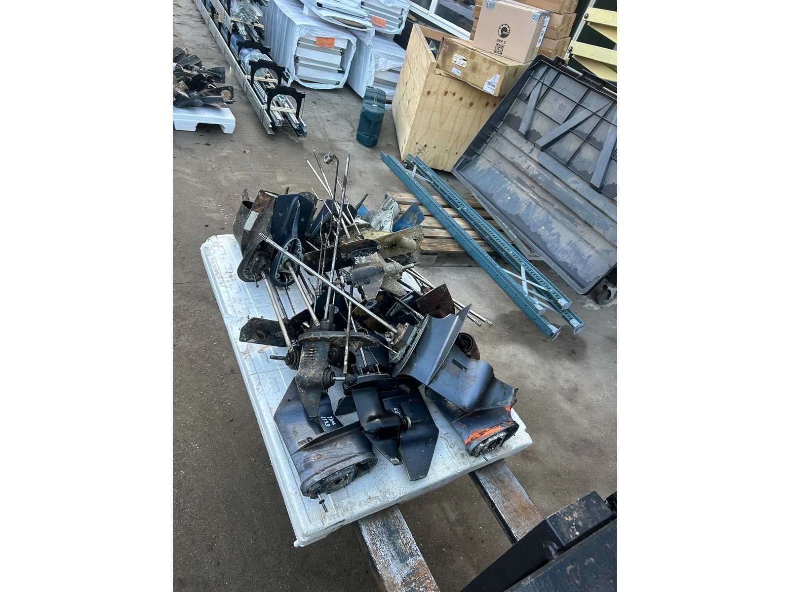 Partij diverse staartstukken & staartstukhuizen van buitenboordmotoren. Werking onbekend. Merk: Diverse onderdelen Model: Staartstukken Materiaal: rubber / gegalvaniseerd metaal