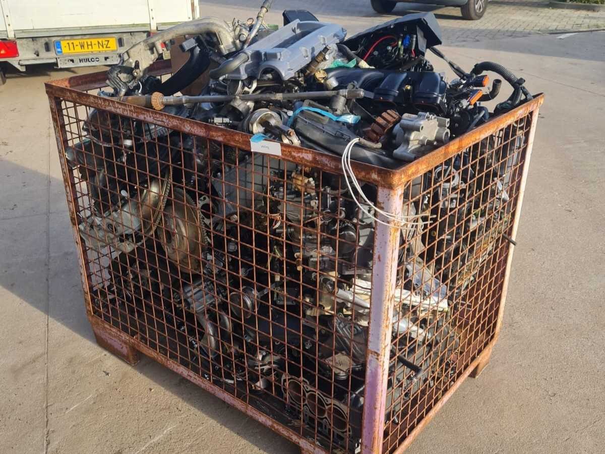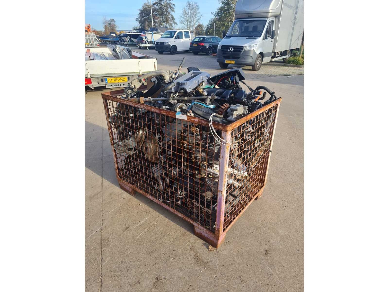 Partij diverse onderdelen buitenboordmotoren. Motorblokken, inlaatsystemen, cilinderkoppen etc. Gitterbox / opslagkrat / gaascontainer uitgezonderd. Merk: Diverse onderdelen Model: Motorblok onderdelen Materiaal: rubber / gegalvaniseerd metaal