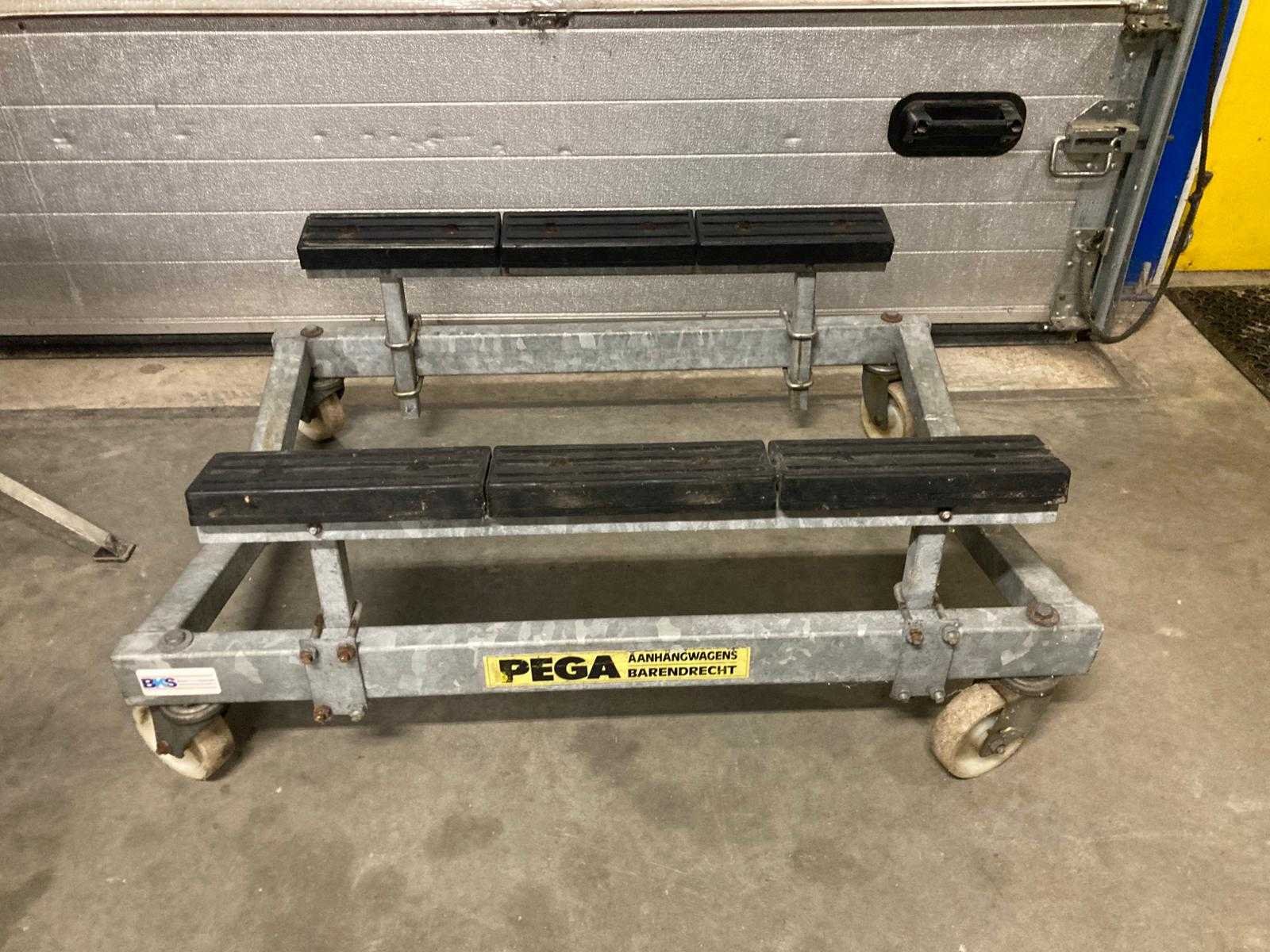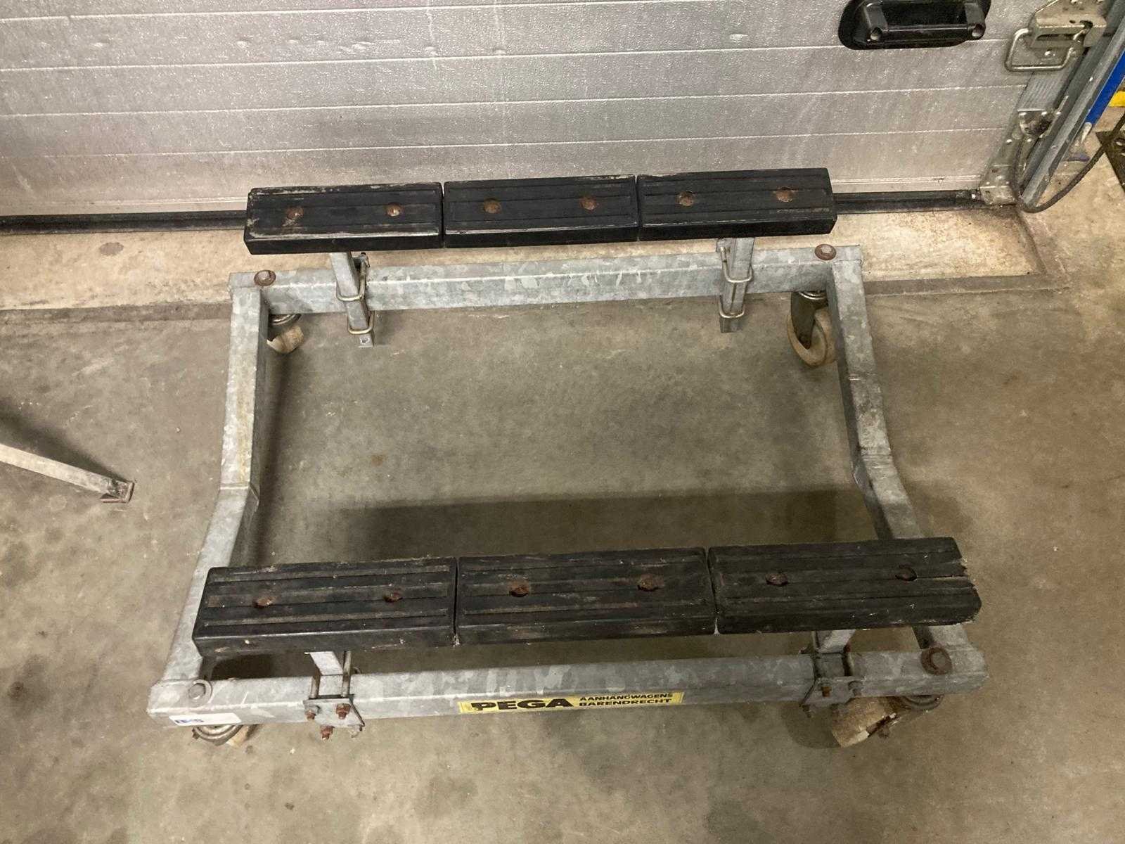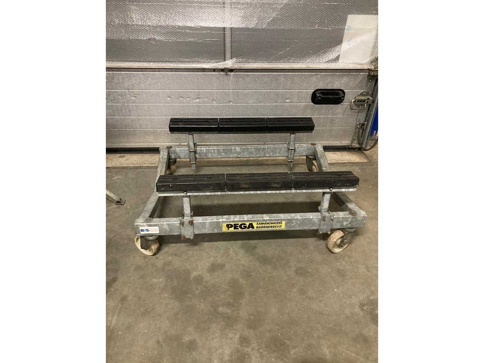 Botenbok/botenkar PEGA 2 liggers/vlakke steunen Merk: Pega Maatvoering liggers zwart rubber 900mm bij 100mm Bokformaat 1100mmbij 760mm V-vorm liggers verstelbaar, thermisch verzinkt Merk: BKS / Pega Product type: botenkar Materiaal: gegalvaniseerd