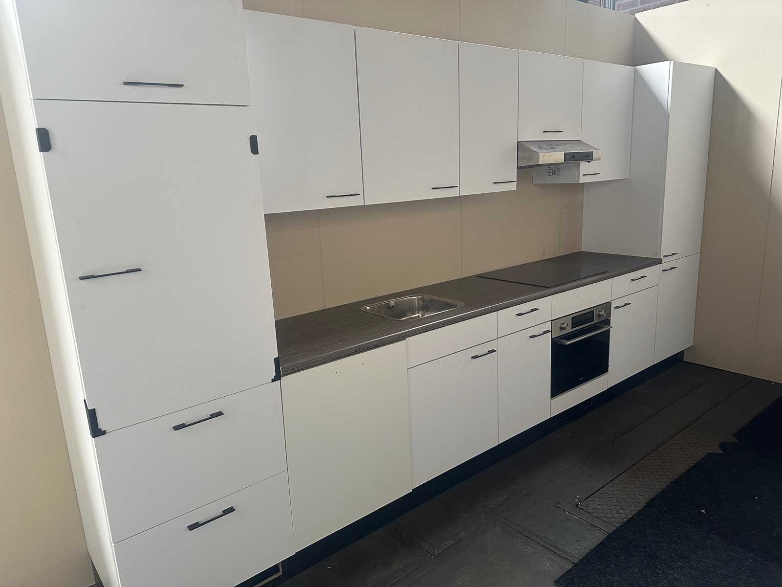 Foto ter illustratie, opstelling en kleur kunnen afwijken Onderbouw Laag (5x 60cm) Onderbouw hoge kast (2x 60x215cm) Onderbouw Hoog (2x60cm) v.v. Blum scharnieren, multiplex werkblad / spatscherm, bestekindeling, plint De keuken dient zelf gedemonteerd te worden op professionele wijze. Schade die ontstaat aan pand/eigendommen, worden verhaald op de koper. Kleur front vaatwasser en oven wijkt af. Merk: Bribus keuken Type keukenopstelling: Recht Breedte: 405cm Hoogte: 215cm Kraan: Nee Gootsteen: RVS Aanrechtblad: 284x60 Fornuis: Etna KIS260ZT Softclose: true Oven: Etna CM450RVS Afzuigkap: Etna A0160RVS Vaatwasser: Etna VW549M Hoofdkleur: Wit