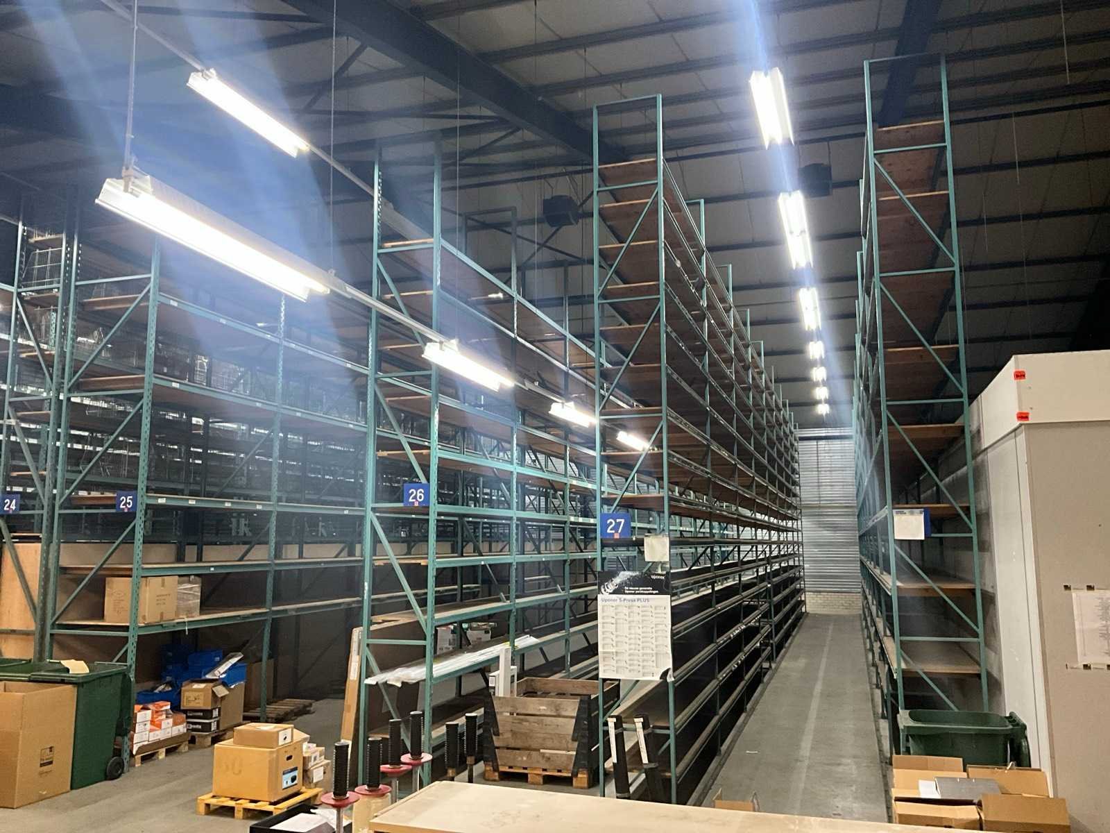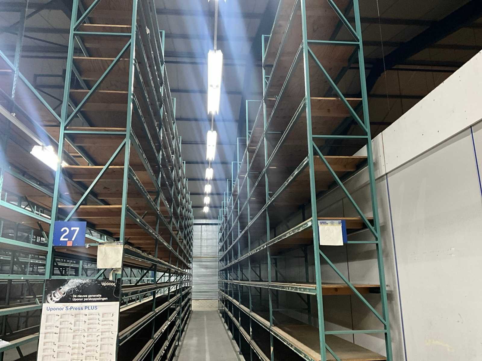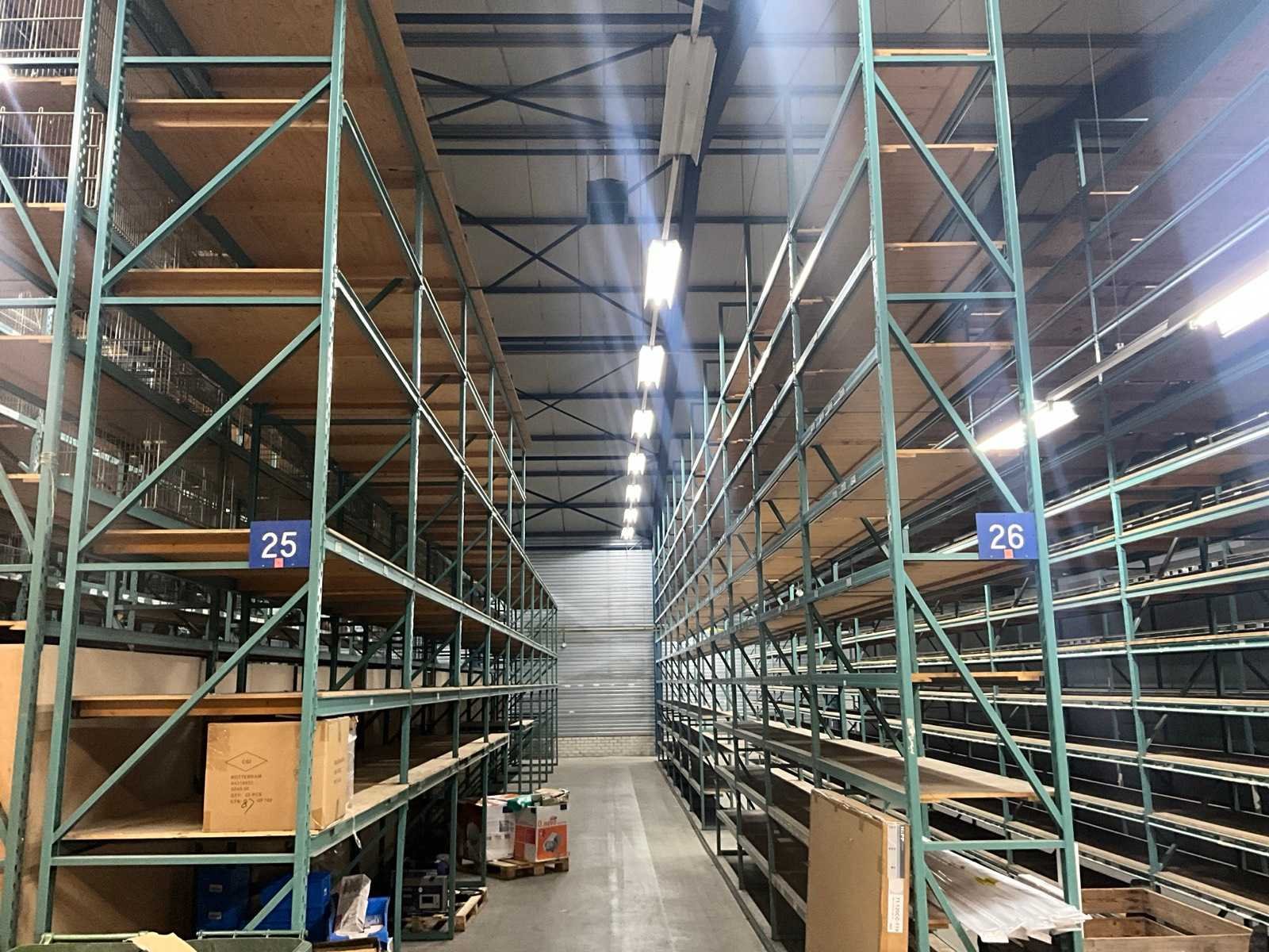 2 stellingen hebben een diepte van 112cm, inbegrepen bij dit kavel: diverse metalen draadmanden, houten en metalen schappen, legborden. Sectie afm. b: 2000mm Sectie diepte: 670mm Sectie afm. h: 6000mm Aantal staanders: 83 Aantal liggers: 980 Demontabel: true Materiaal: Metaal Totale afmeting L: 16000cm Totale afmeting Hoogte: 600cm