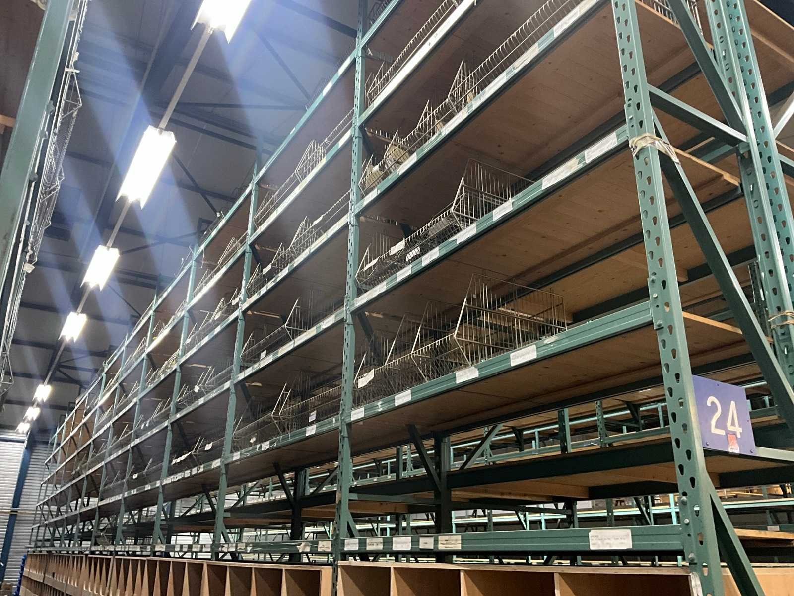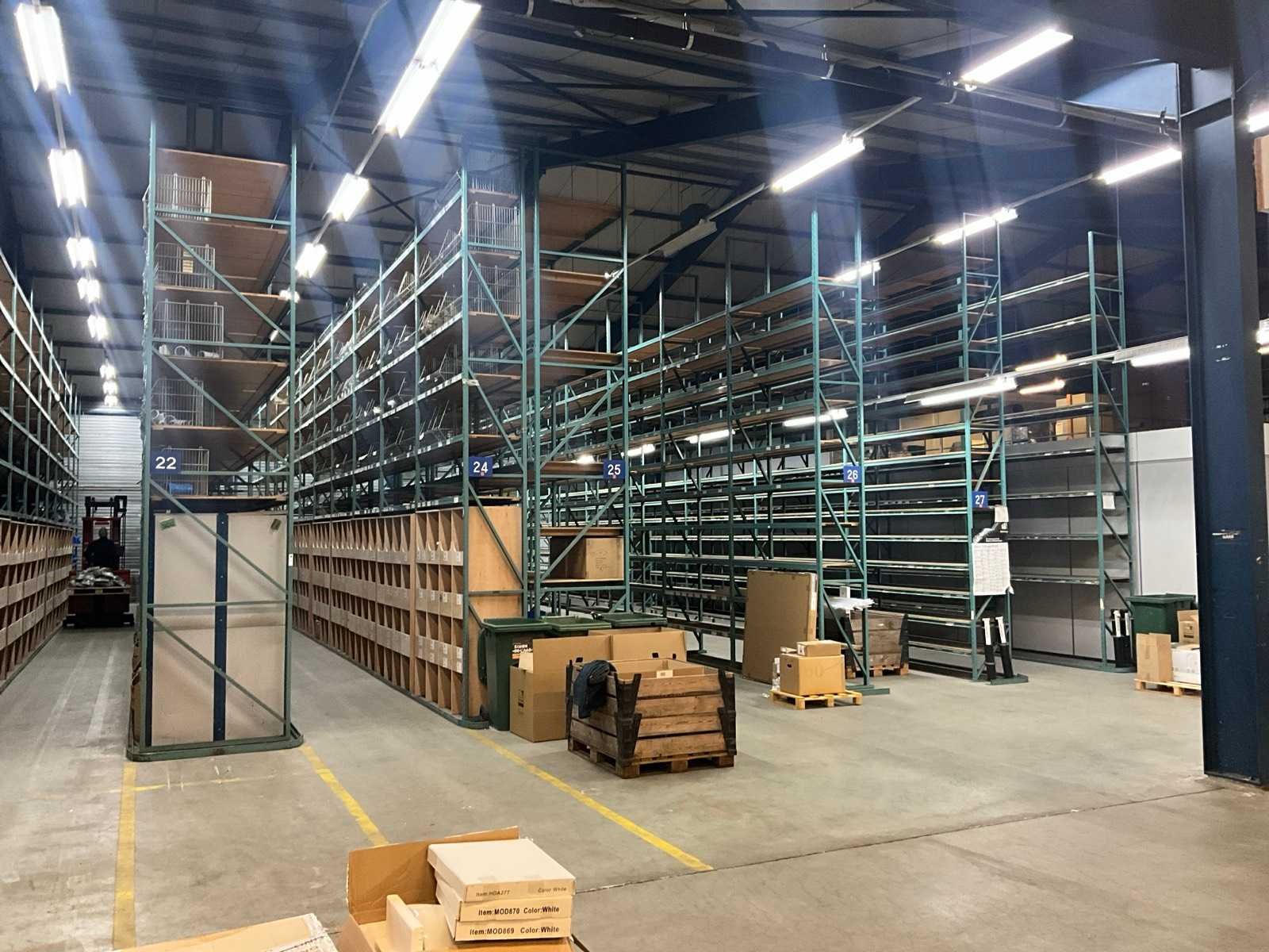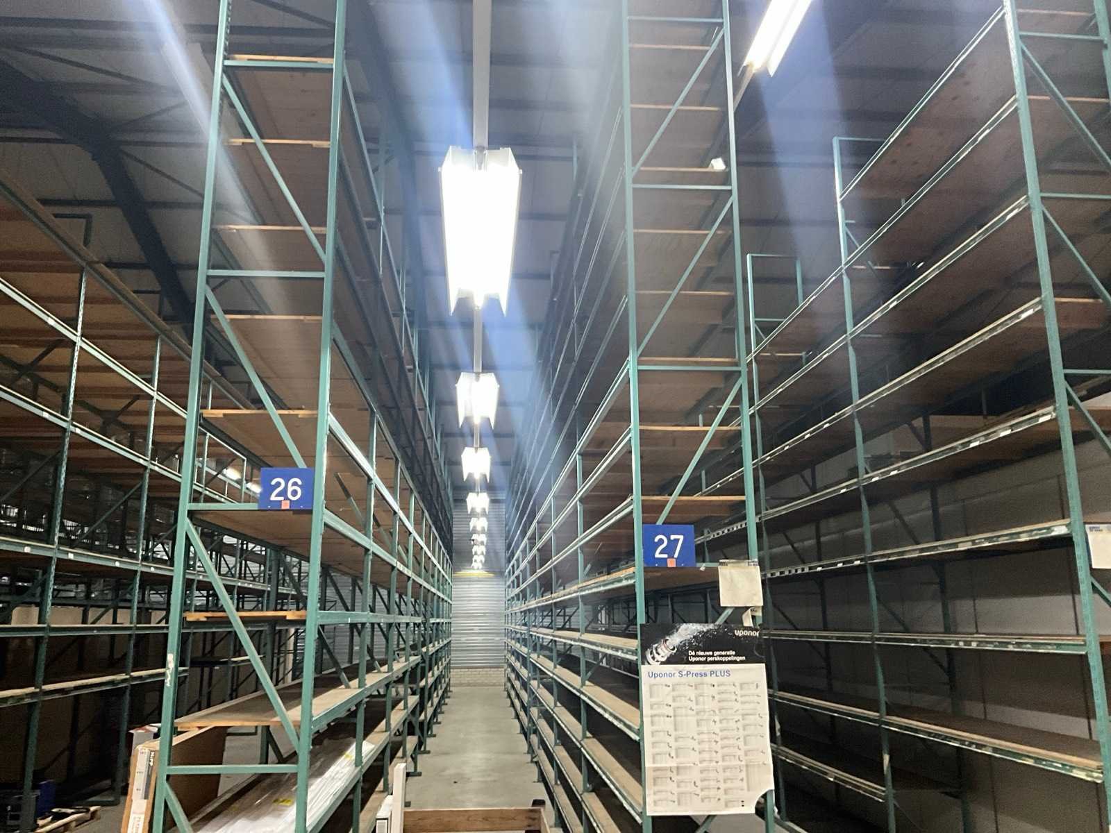 2 stellingen hebben een diepte van 112cm, inbegrepen bij dit kavel: diverse metalen draadmanden, houten en metalen schappen, legborden. Sectie afm. b: 2000mm Sectie diepte: 670mm Sectie afm. h: 6000mm Aantal staanders: 83 Aantal liggers: 980 Demontabel: true Materiaal: Metaal Totale afmeting L: 16000cm Totale afmeting Hoogte: 600cm