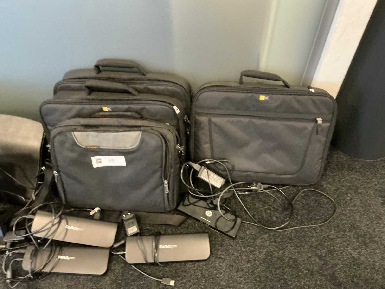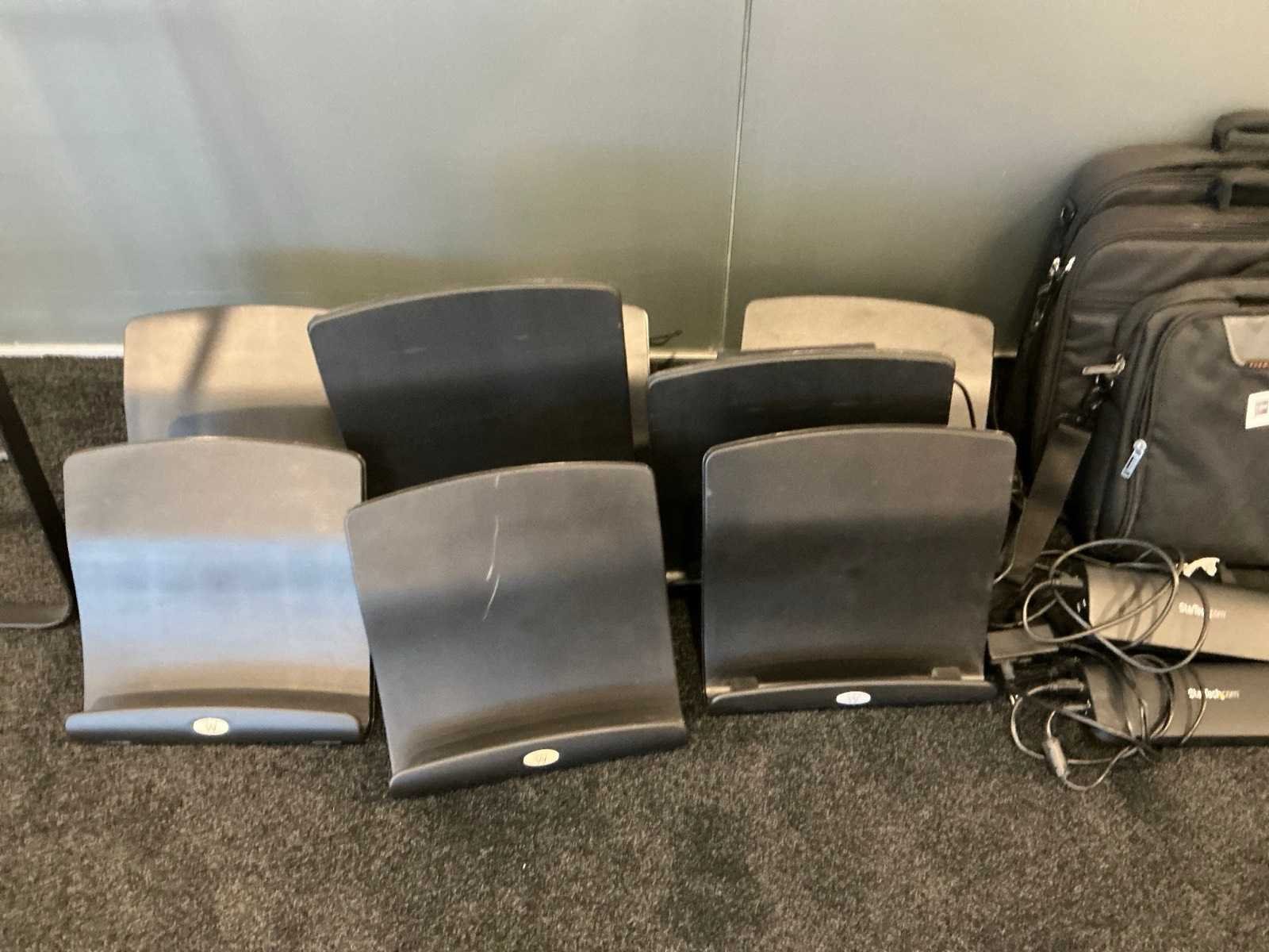 Bestaande uit 8 laptopstandaards, 4 dockingstations en 5 tassen.