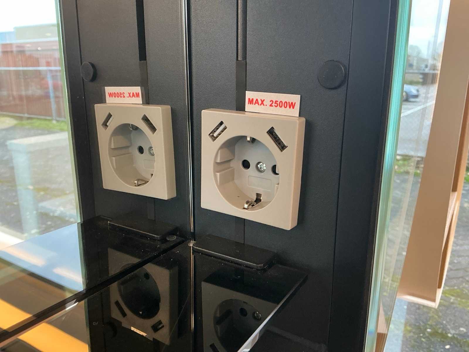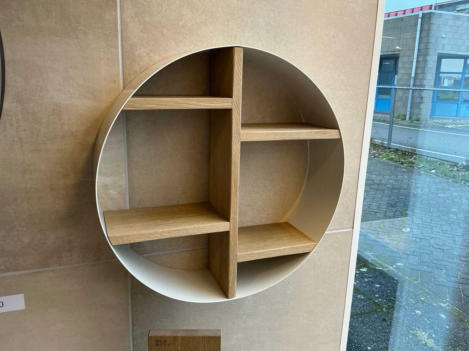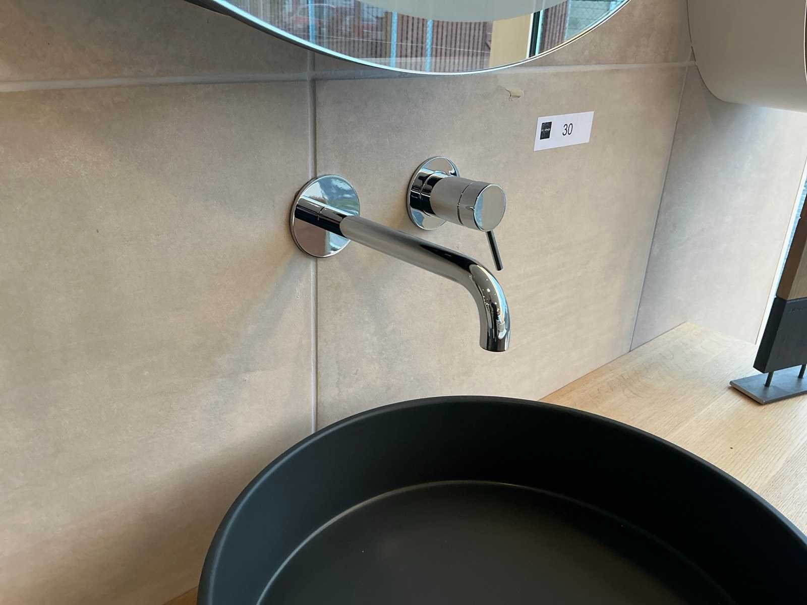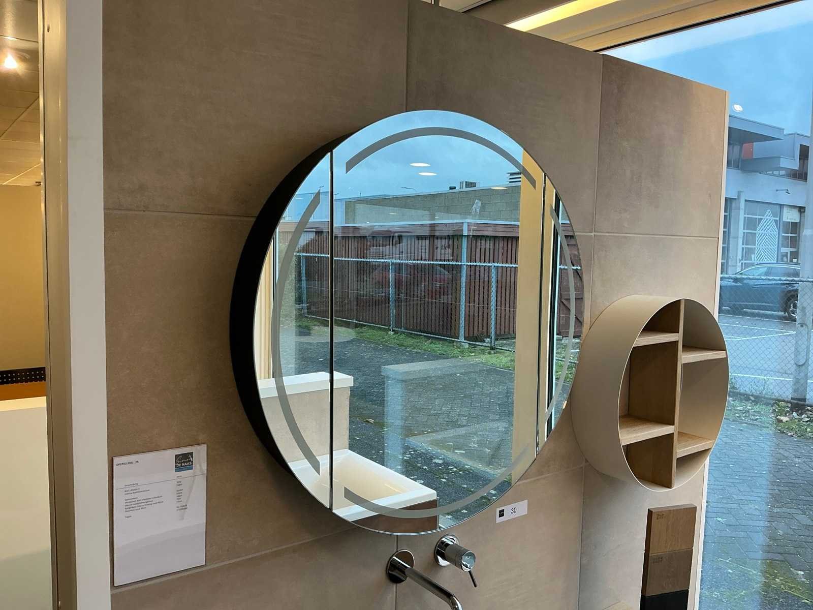 Bestaande uit een Hipp Spiegelkast met verlichting 80cm, Laufen Kartell waskom 42x42x12cm, Lagoo Garda wastafelkraan opbouwdeel zonder inbouwgedeelte, Meubelset 120cm Wooden drawer box 120x45cm met 1 greeploze lade, Looox Wooden Box Round 50cm. Merk: Looox