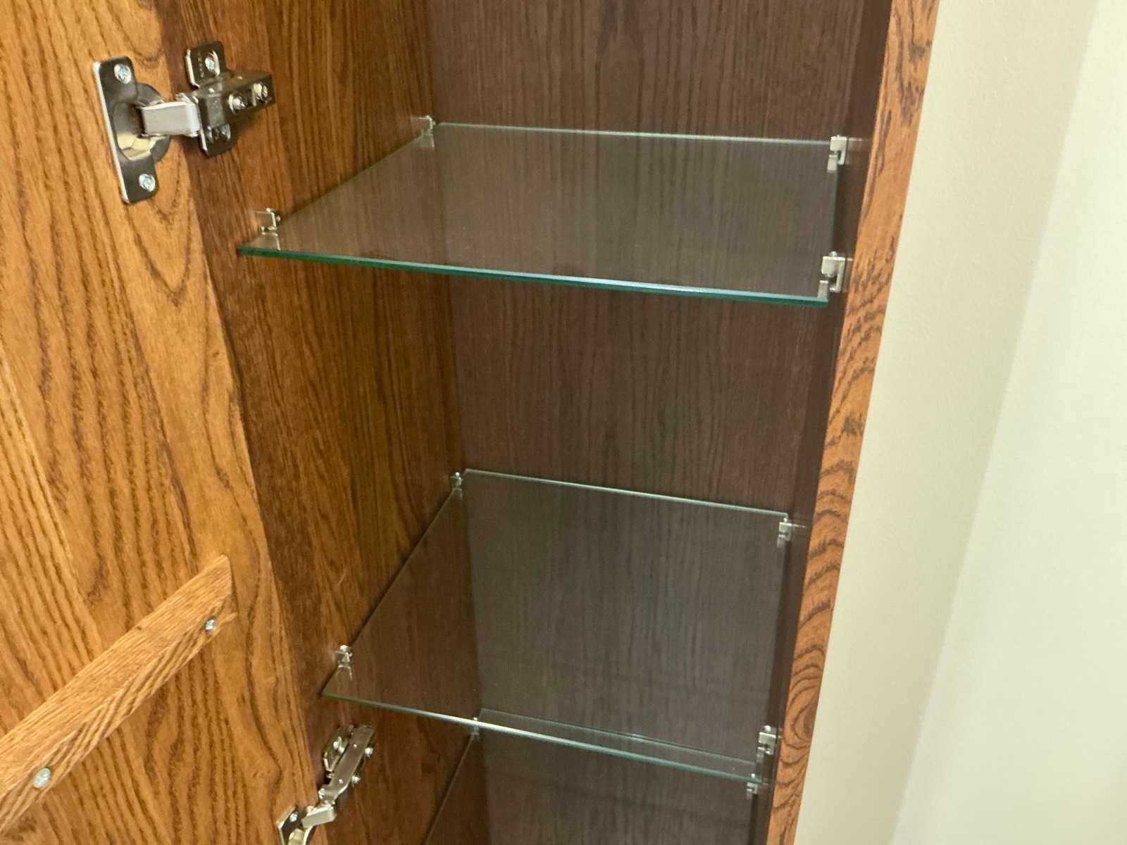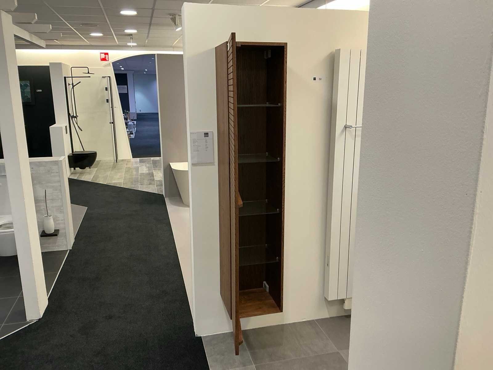 1 deur greeploos. Voorzien van 4 glazen planchettes. Zelfde design als kavel 48 Merk: Sanibell Model: Ink Kleur: Chocolate Lengte: 36cm Breedte: 37cm Hoogte: 169cm Materiaal: Massief eiken gefreesd