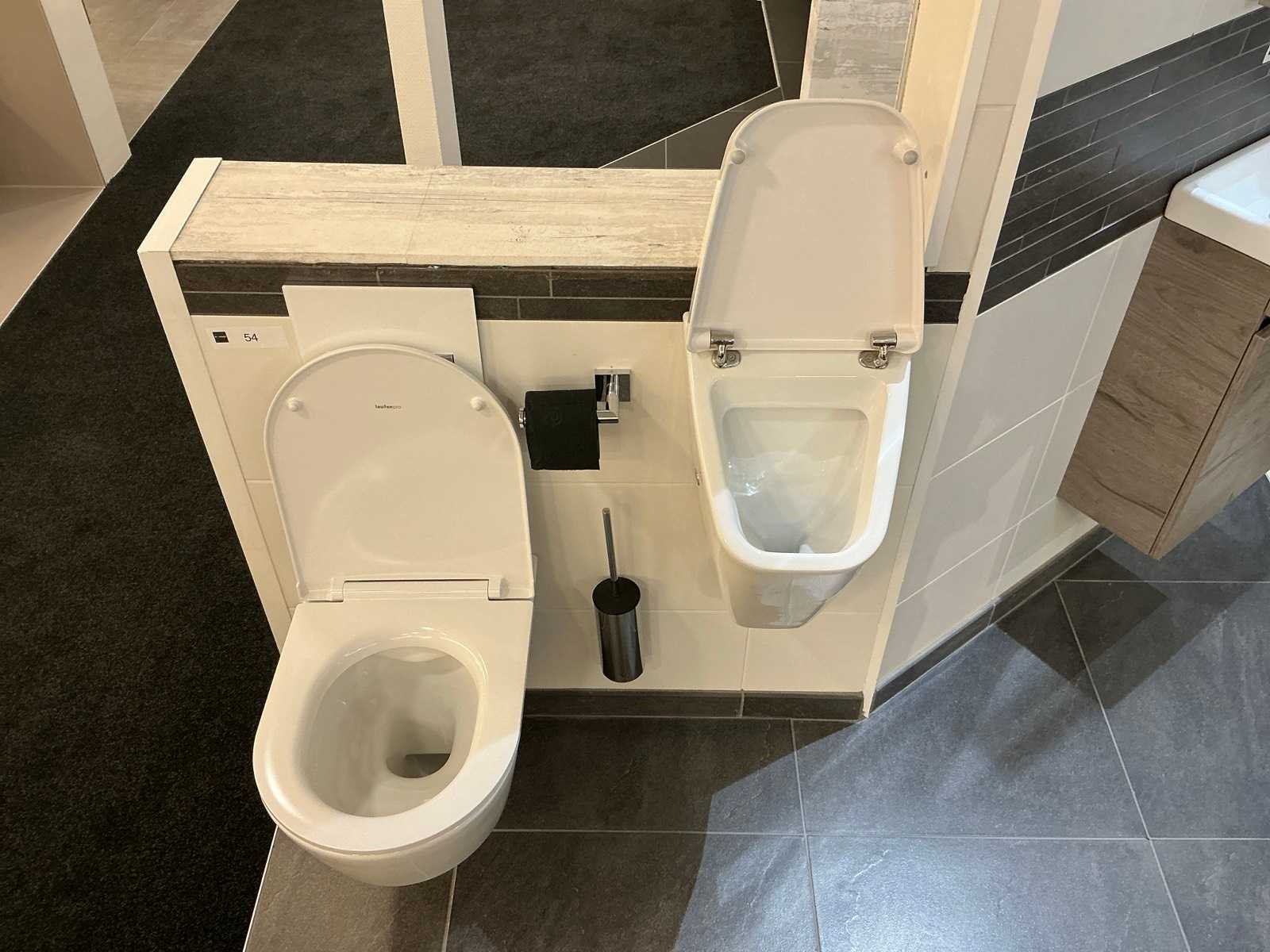 Bestaande uit Laufen randloos wandcloset Pro New Zeeland( keramiekhoogte 43cm) voorzien van softclose, Laufen Vila Urinoir met softclose. Voorzien van toiletgarnituur. Bedieningspaneel is dummy. Let op! Zonder inbouwreservoir. Merk: Laufen