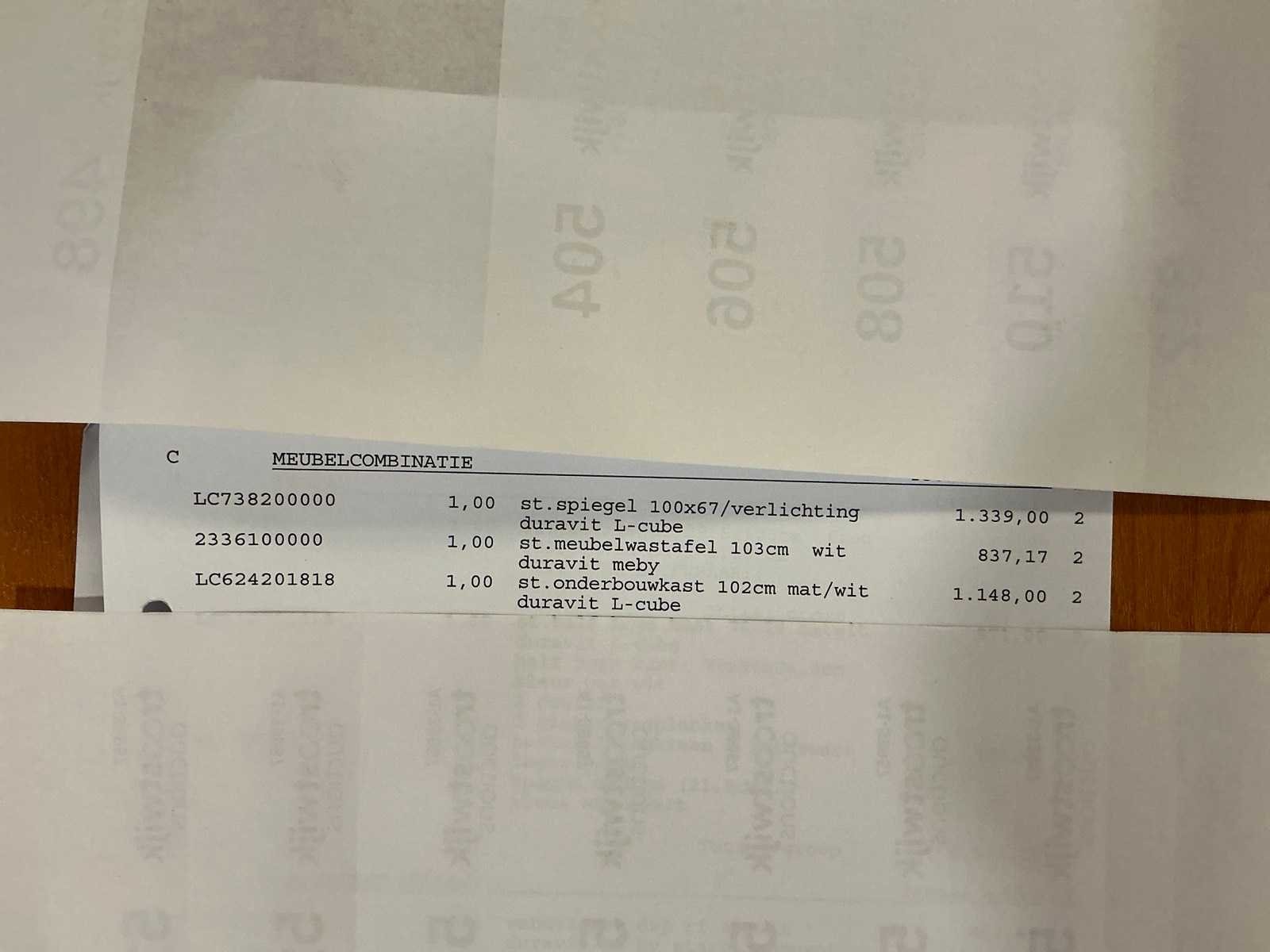 Bestaande uit een spiegel met verlichting 100x67cm, Meby wastafel 103cm, onderkast 102x54cm, Lagoo Garda wastafelmengkraan mat zwart zonder binnenwerk . Let op , kavel 57 zelfde design. Merk: Duravit Model: L-Cube