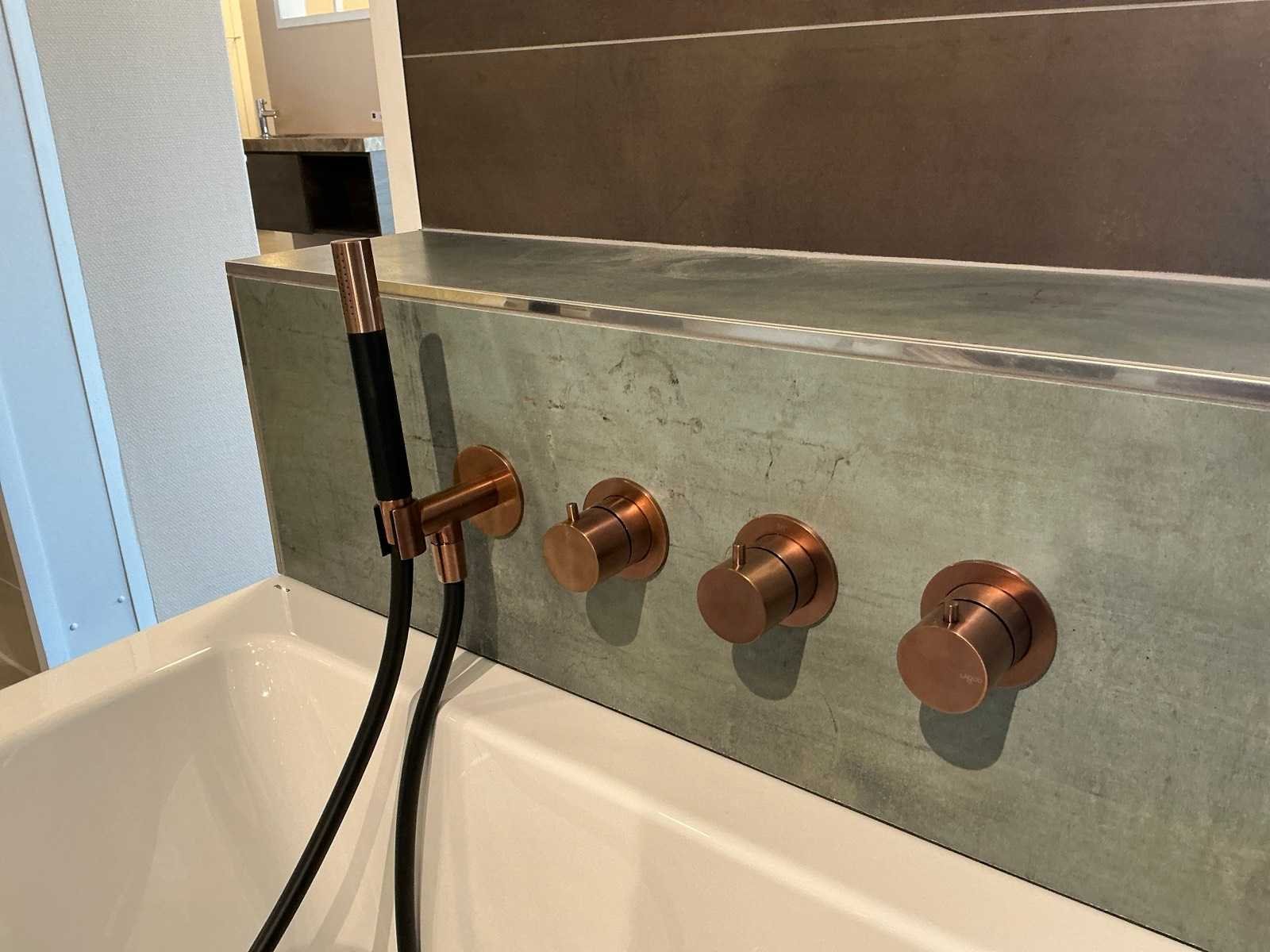 Voorzien van afbouwdeel Lagoo Bruscop thermostaat en handdouche zonder inbouwgedeelte en met handoekstang 60cm. Merk: Riho Model: Rethink Cubic Product type: 190x90cm