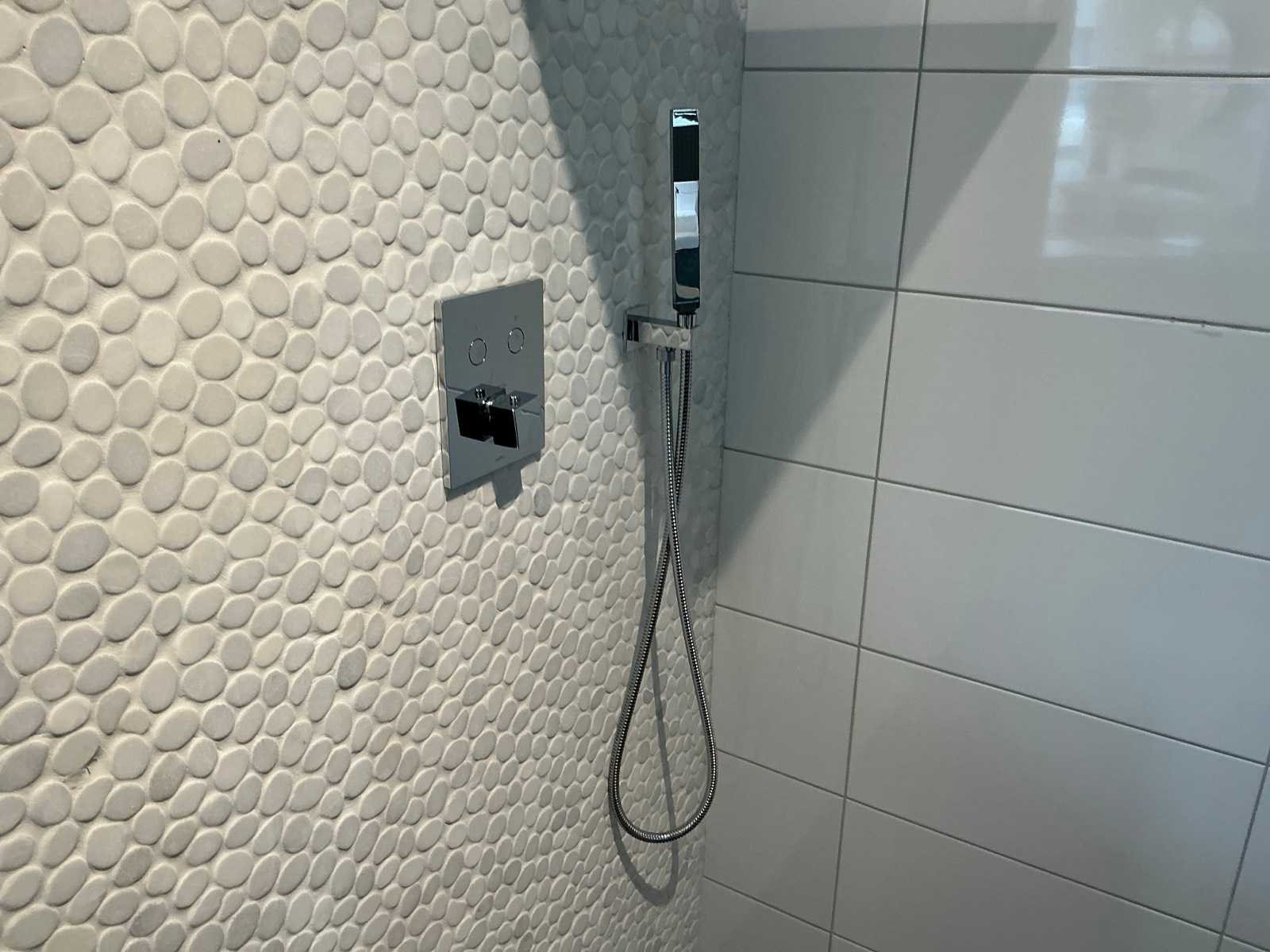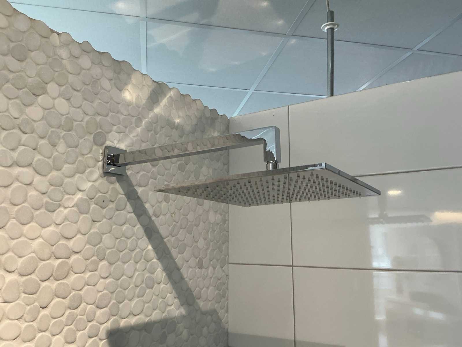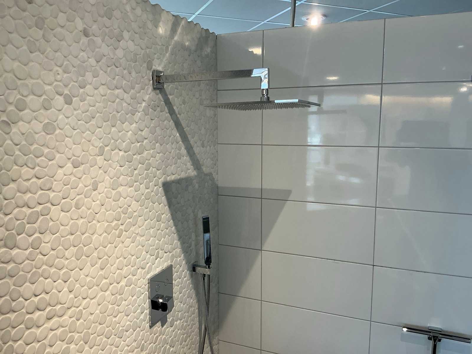 Bestaande uit een inloopdouchewand 120x209cm 8mm dik glas voorzien van handdoekstang, Paffoni (afbouwonderdelen)hoofddouche 30x30cm, handdouche en thermostaat zonder inbouwgedeeltes Merk: Modo Model: SL II