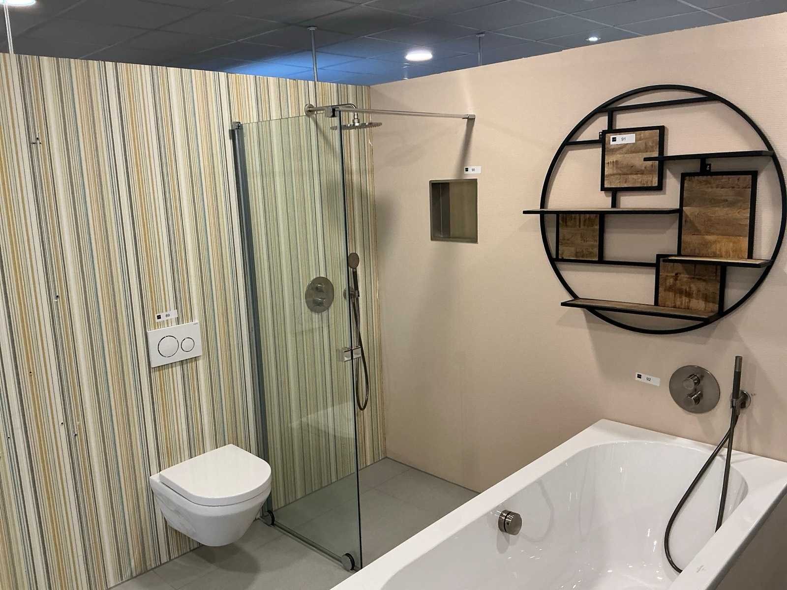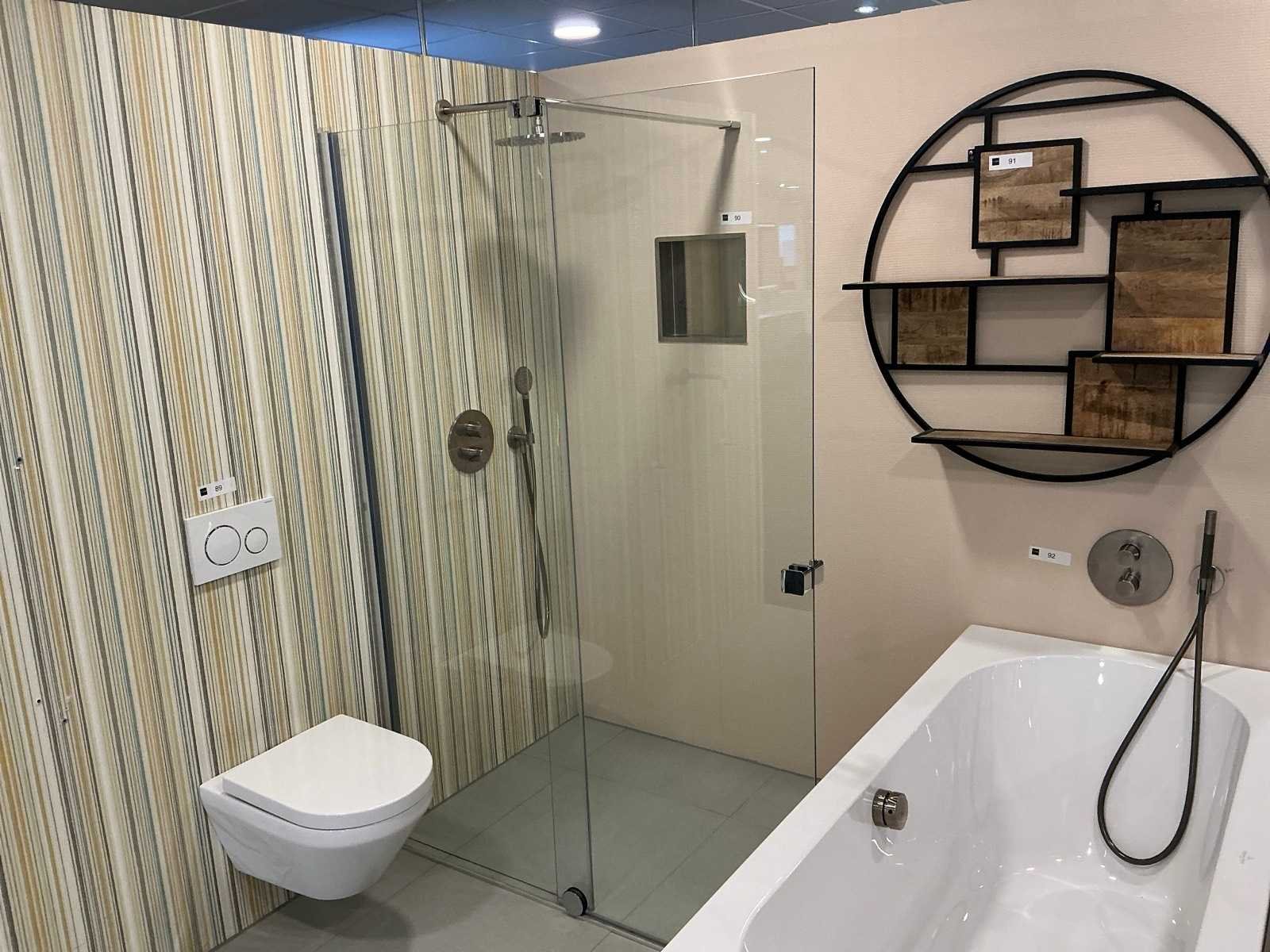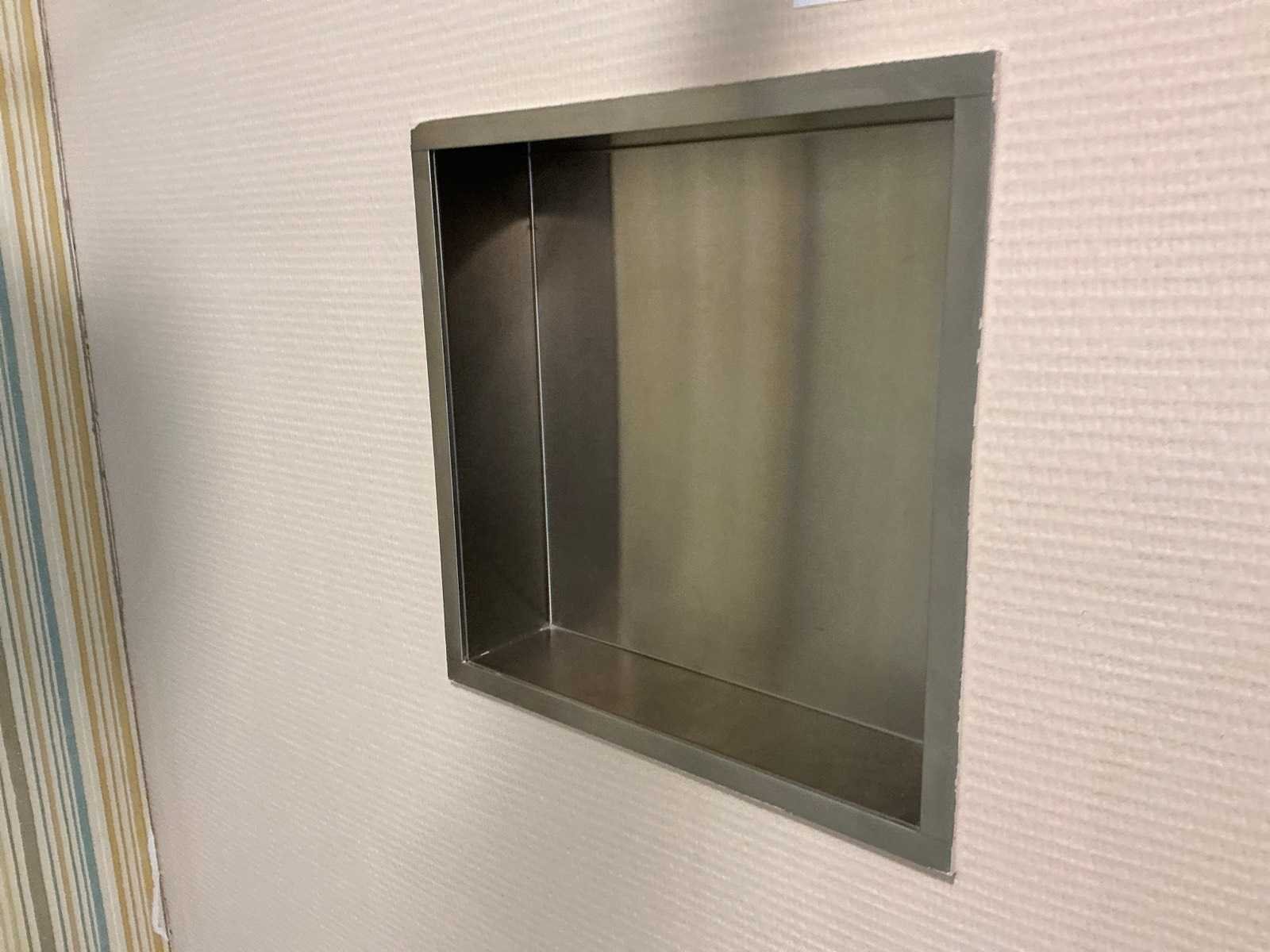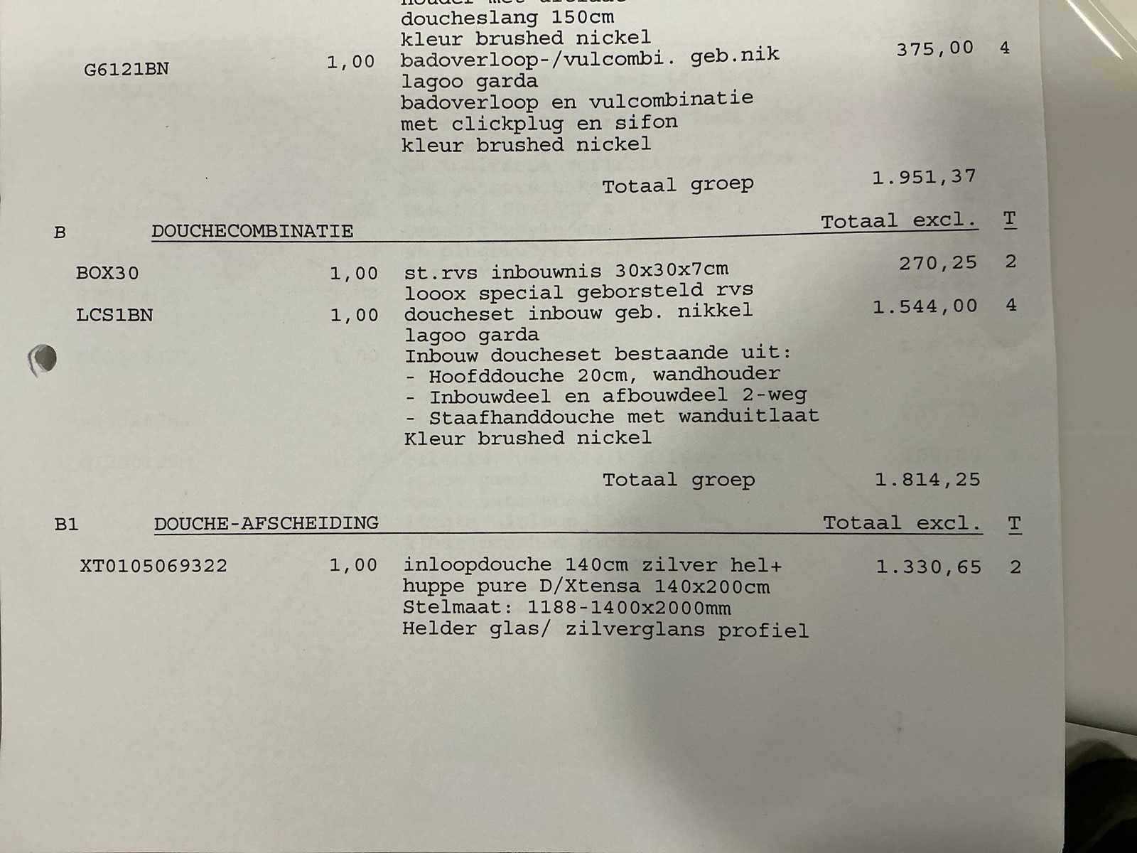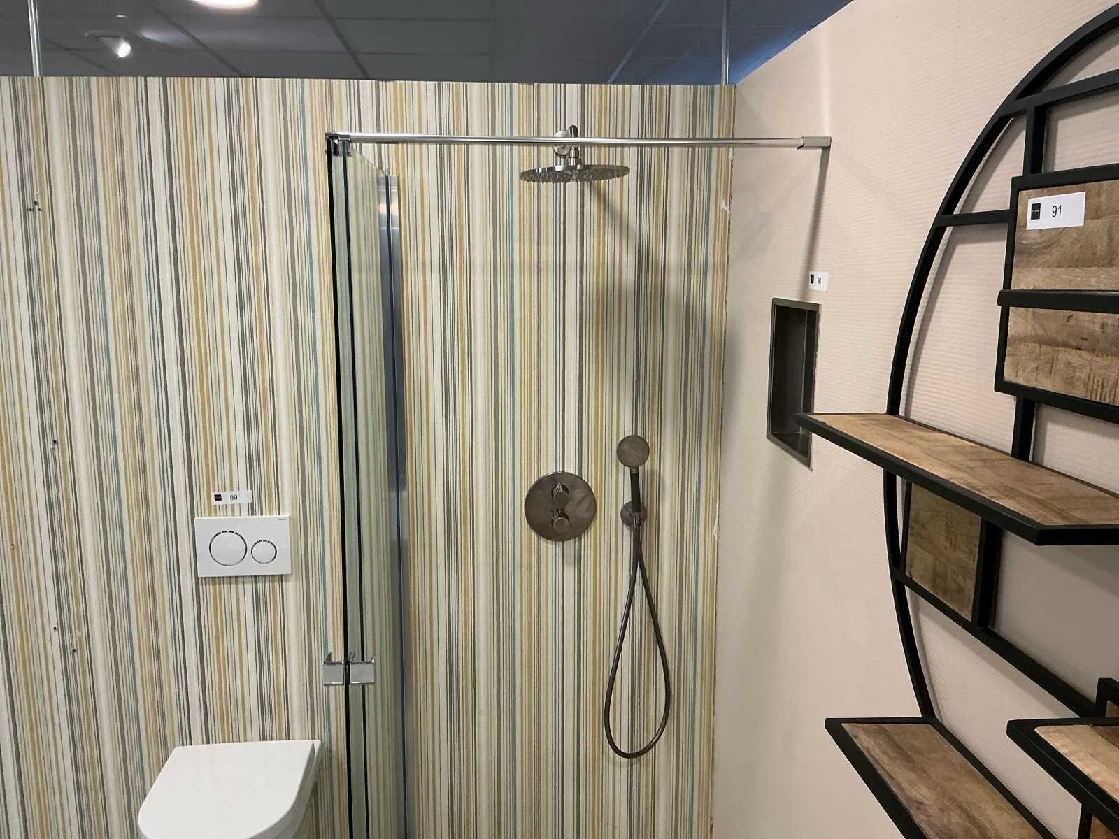 Bestaande uit een Pure D/Xtensa 140x200cm inloopdouche, Looox special RVS inbouwnis 30x30x7cm, Lagoo Garda hoofddouche en staafhanddouche afbouwdelen zonder inbouwgedeelte. Merk: Huppe