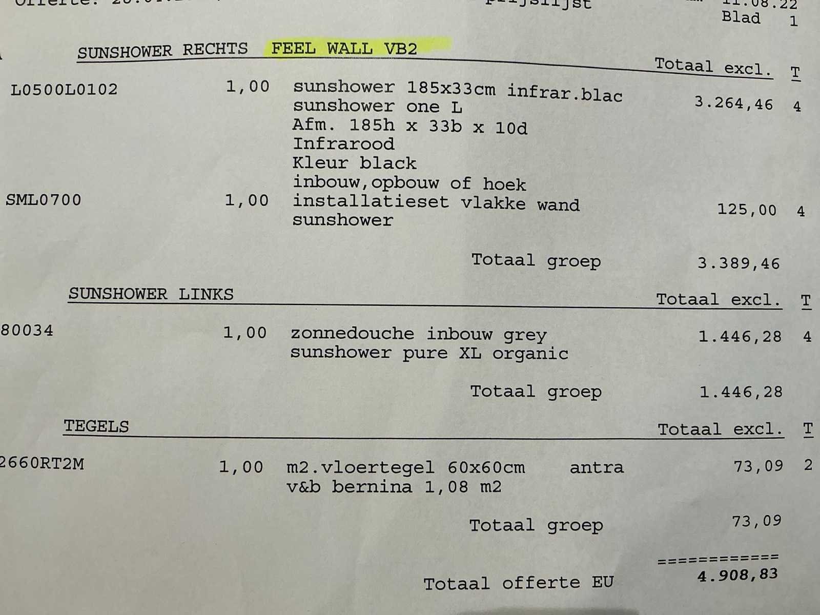 Merk: Sunshower Model: Pure XL Organic Product type: 124x20x10cm