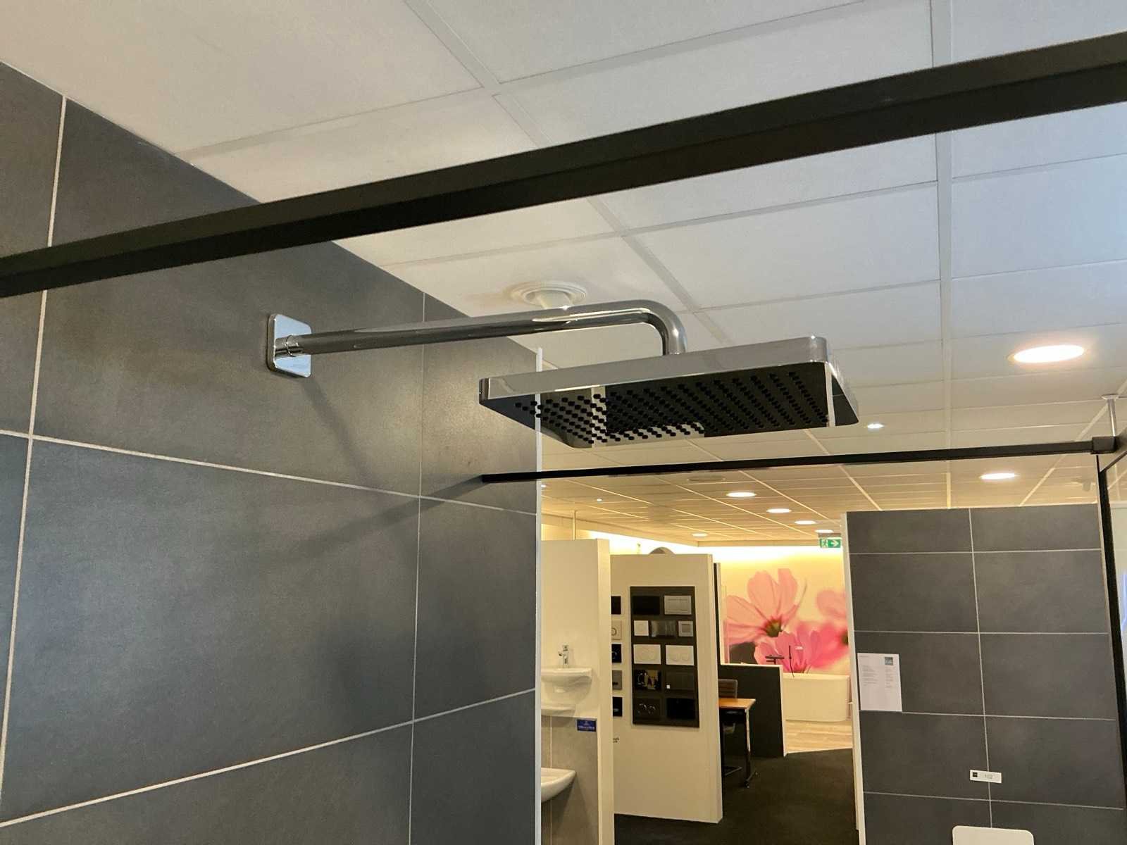 Bestaande uit een Sealskin Soho inloopdouche 140x210cm met muursteun en stabilisatiestang 100cm, Villeroy&Boch Architectura douchebak (140x90cm) Dornbracht afbouwdelen douchethermostaat, regendouche en handdouche zonder inbouwgedeeltes. Merk: Sealskin / Villeroy&Boch