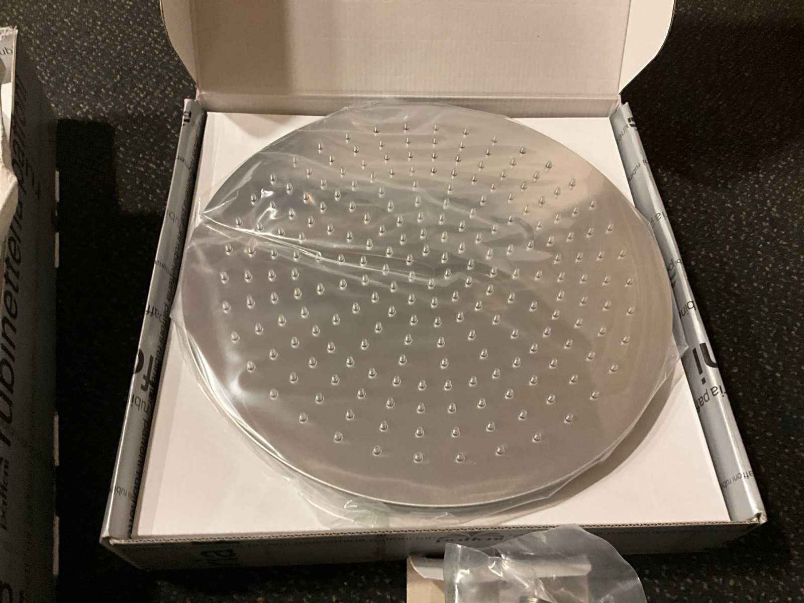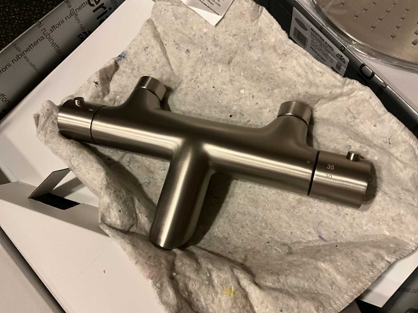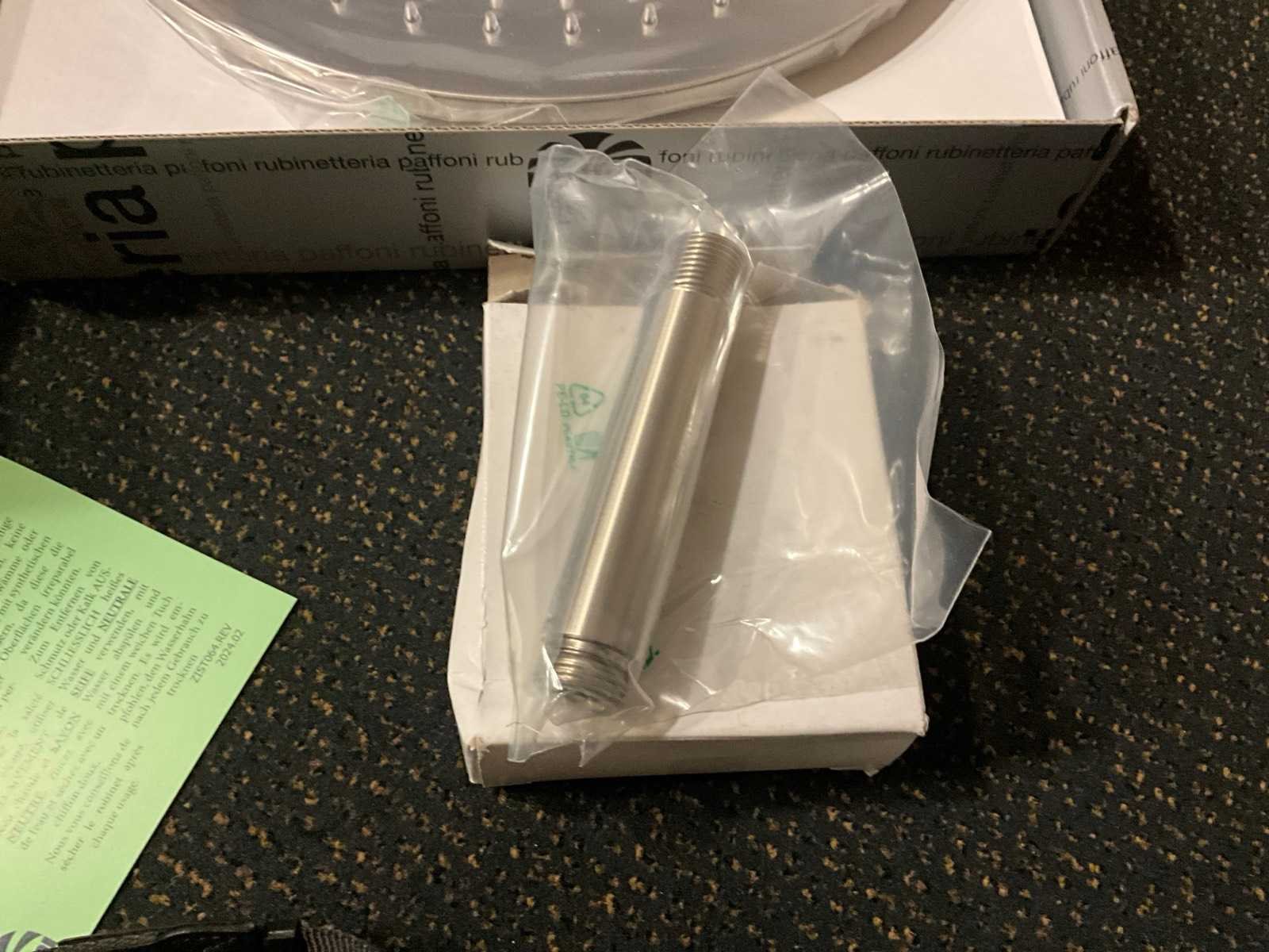 Bestaande uit: thermostatische badmengkraan, badset, regendouchekop, wastafelkraan, afvoerplug, douchekop inbouw onderdeel, kleur: brushed metal Merk: Paffoni