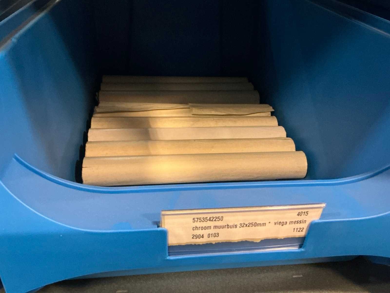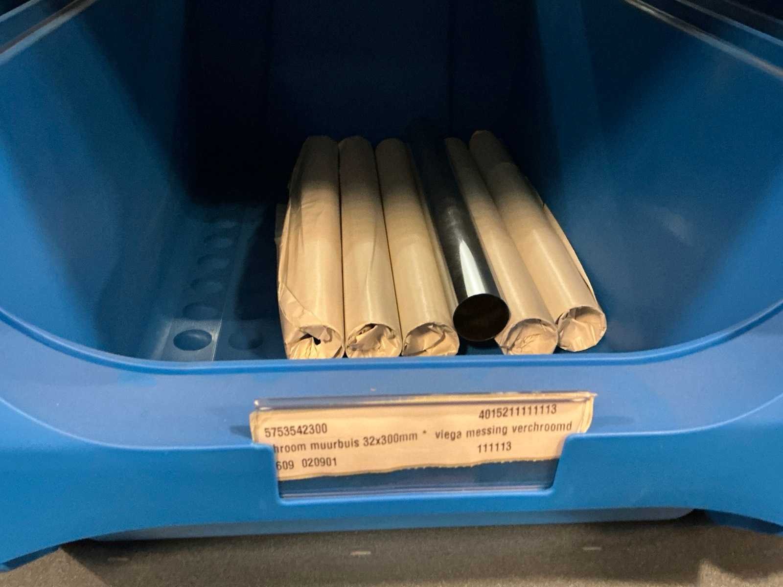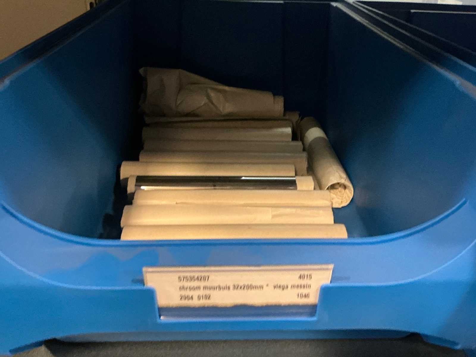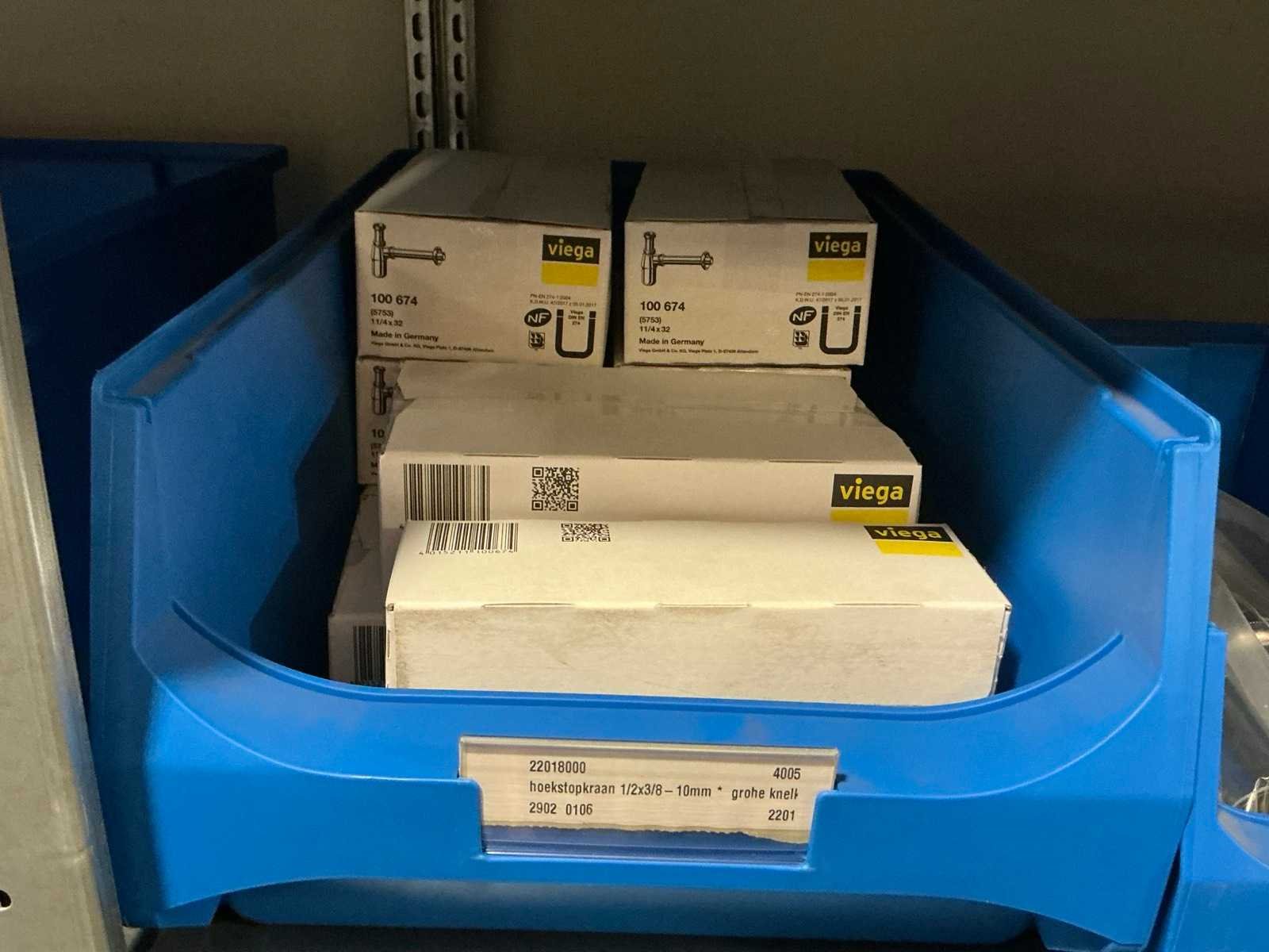 Inclusief magazijnbakken. Bestaande uit: Verschillende producten van Viega in 3 meter stelling.