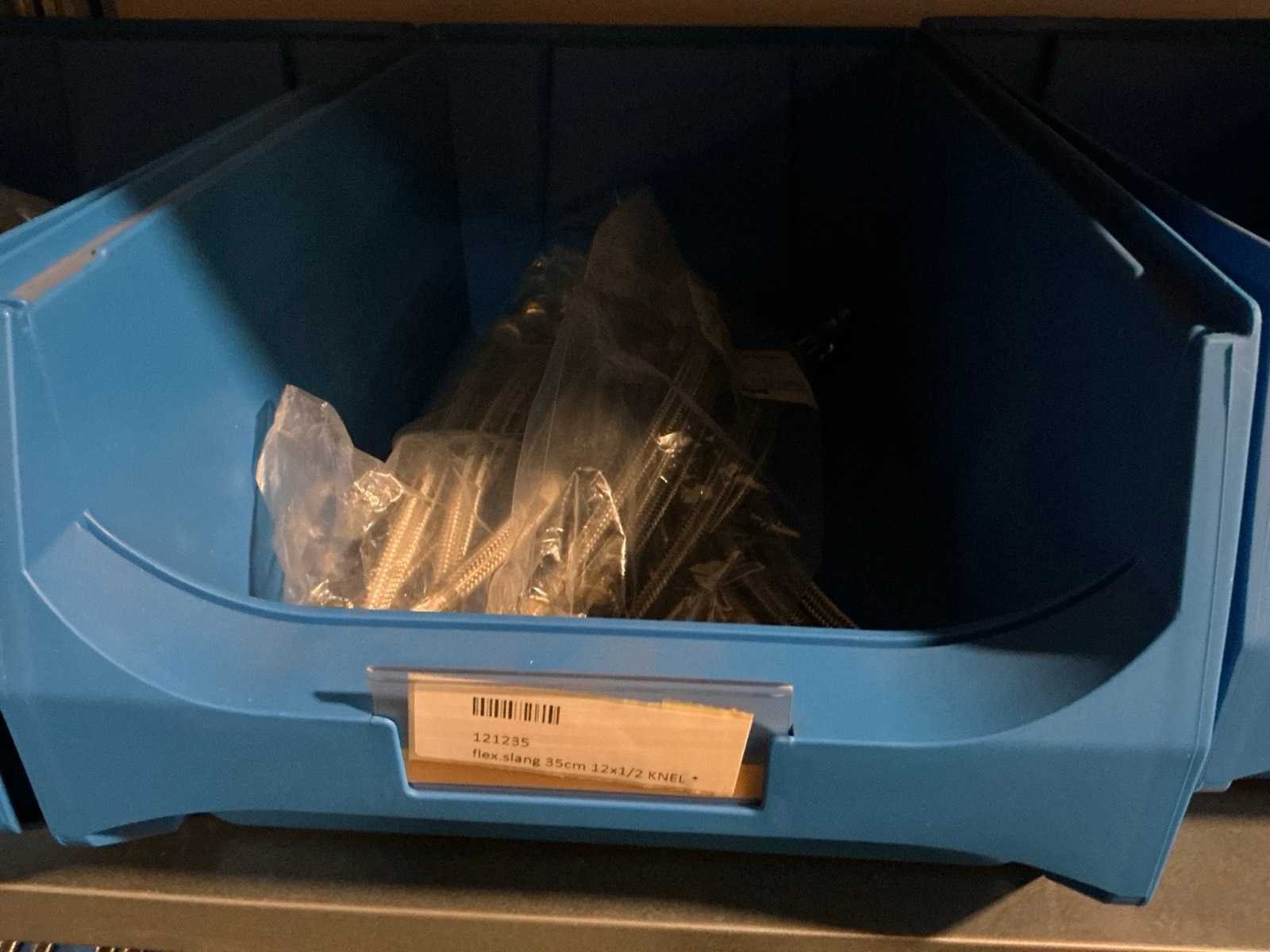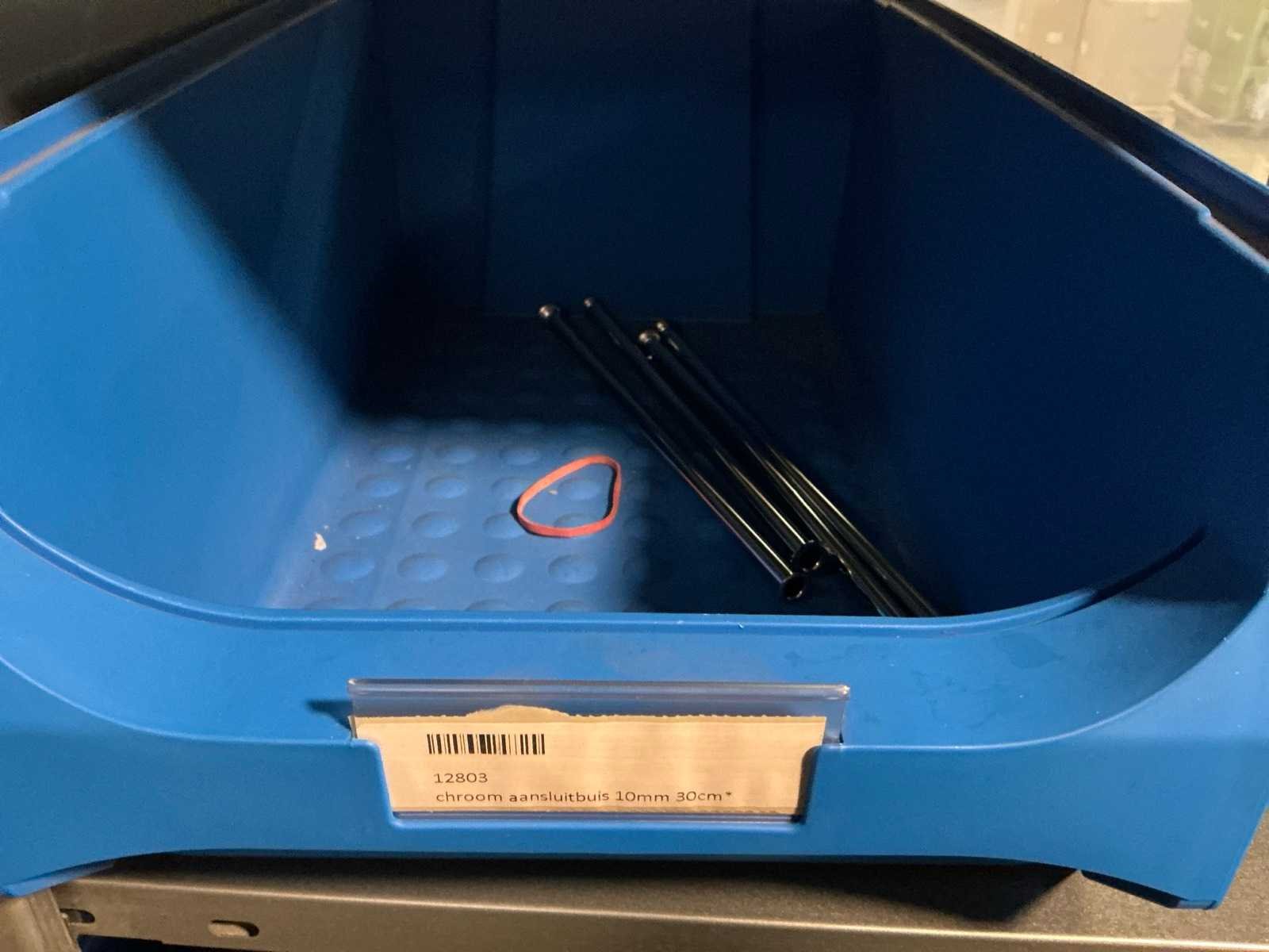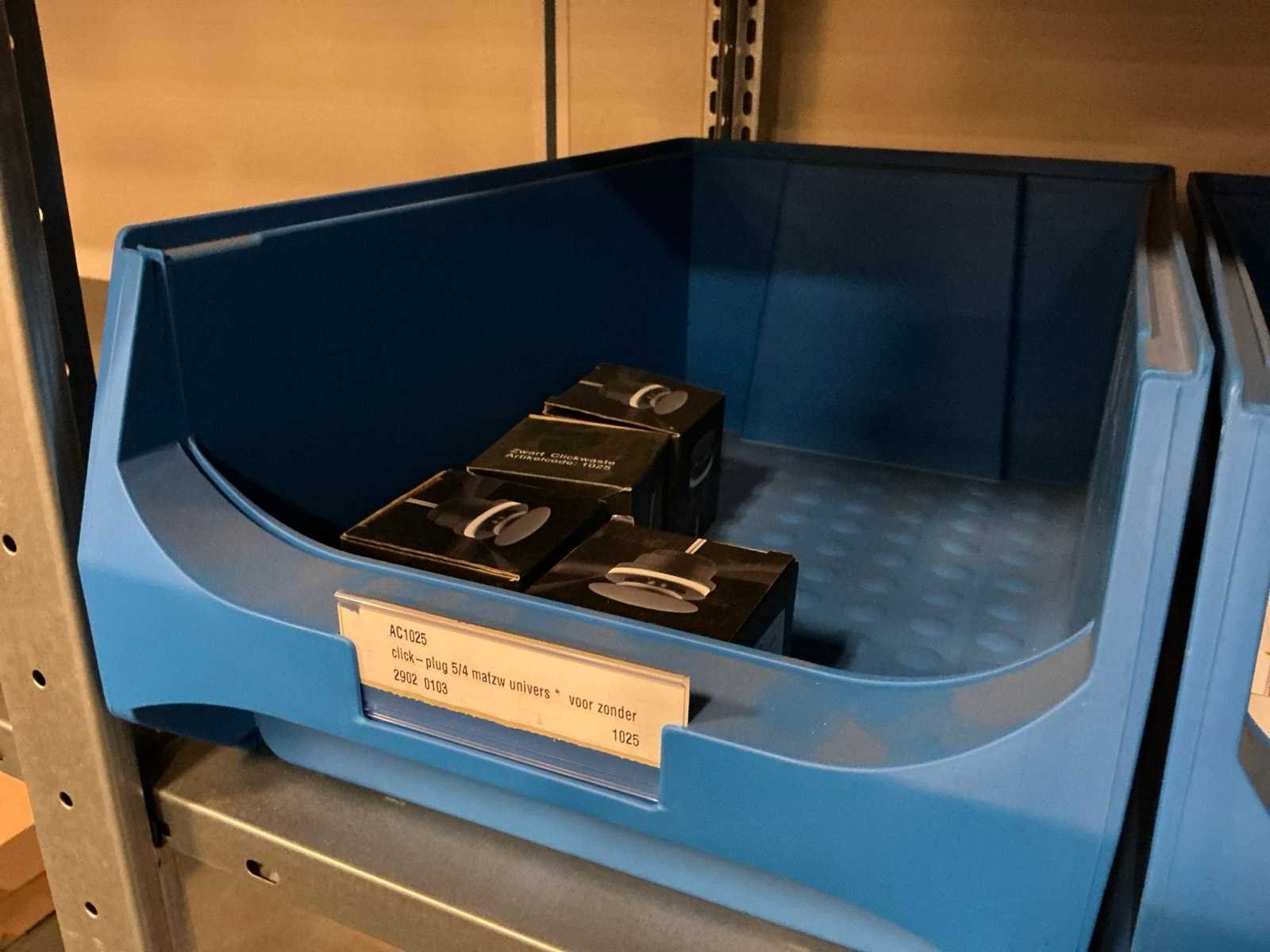Inclusief magazijnbakken. Bestaande uit: Verschillende producten van diverse merken in 6 meter stelling.
