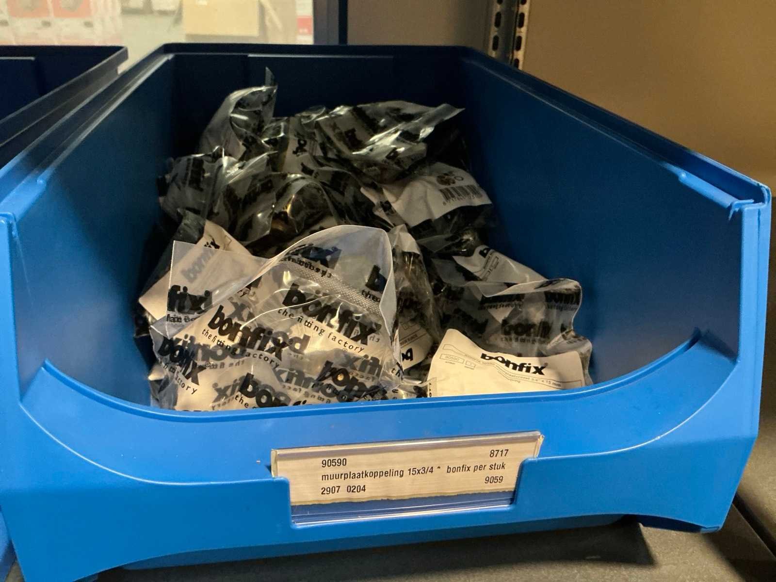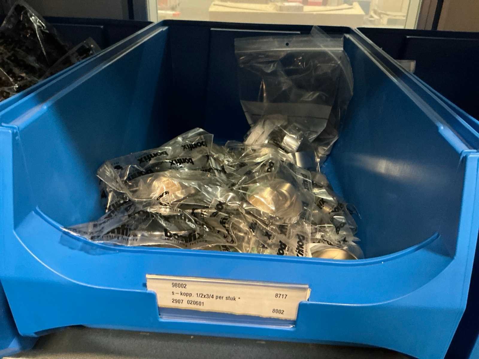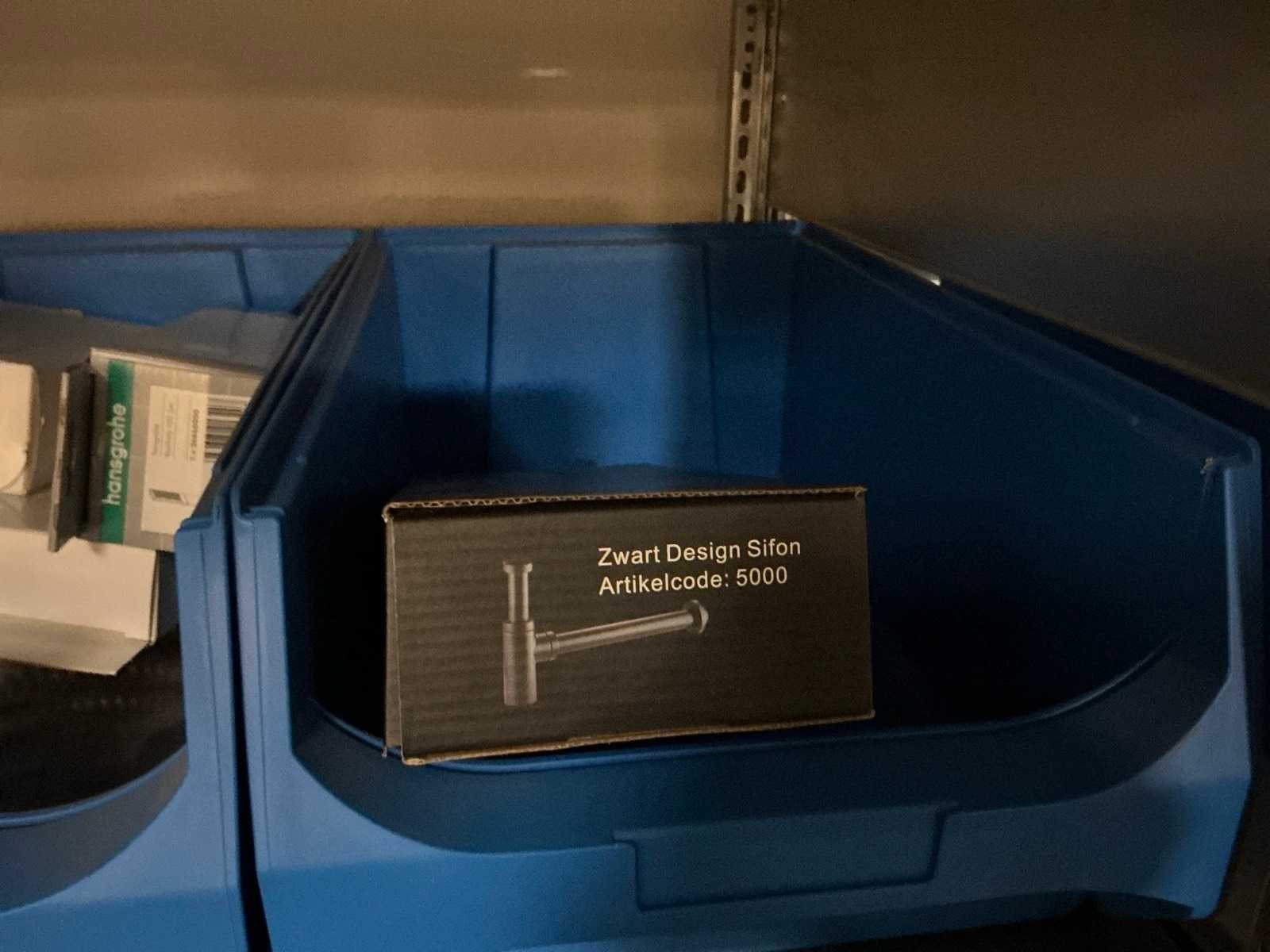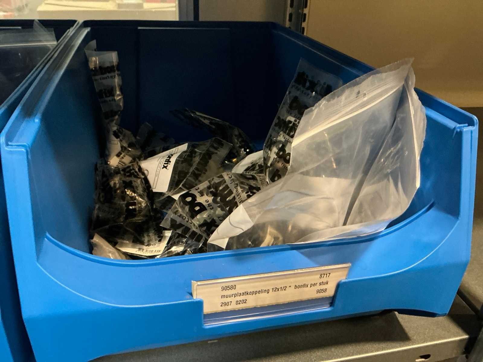 Inclusief magazijnbakken. Bestaande uit: Verschillende producten van diverse merken in 6 meter stelling.