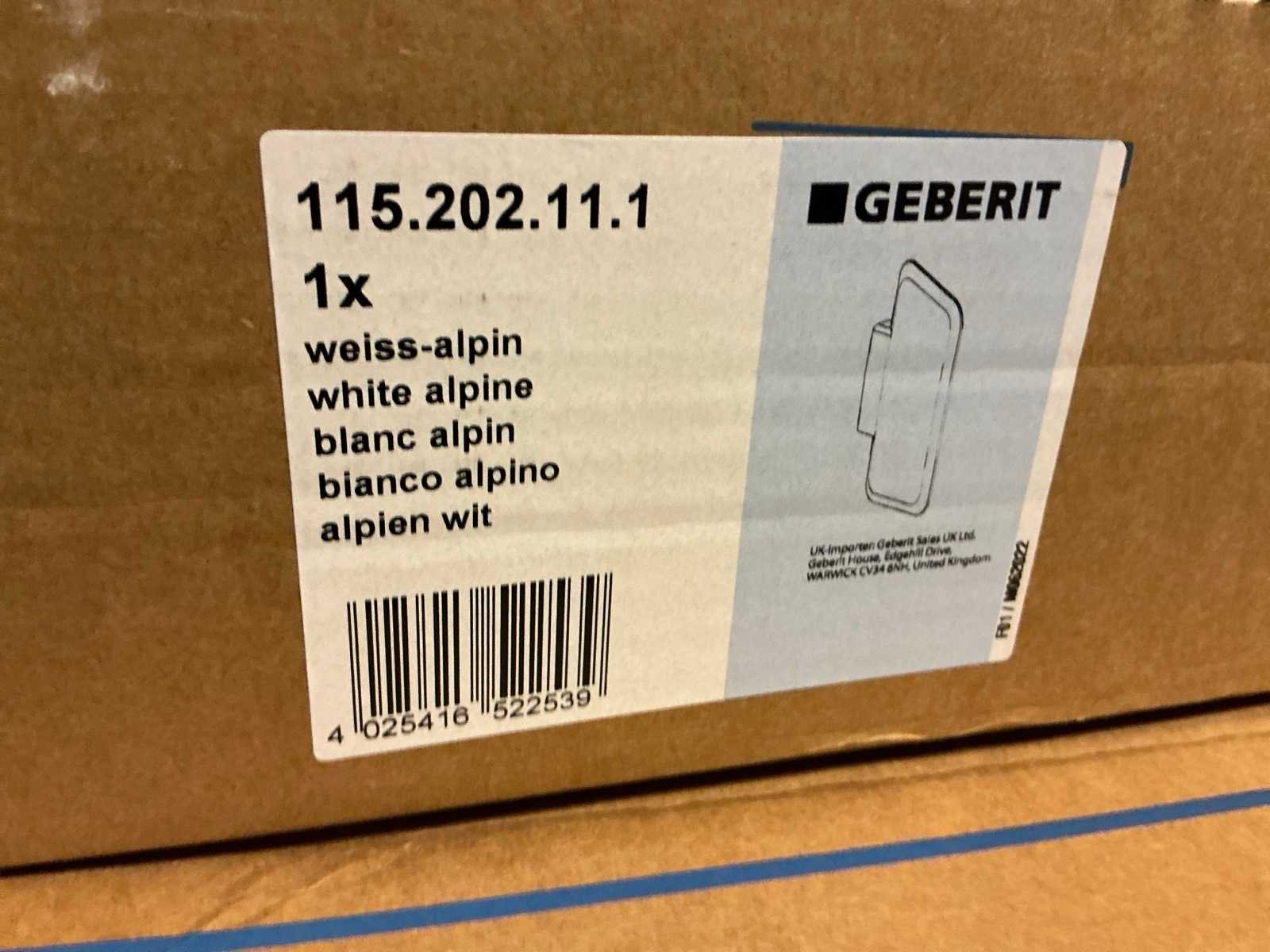 In doos. Merk: Geberit Model: 115.202.11.1 Kleur: Alpien Wit Lengte: 9.6cm Breedte: 44cm Hoogte: 74cm