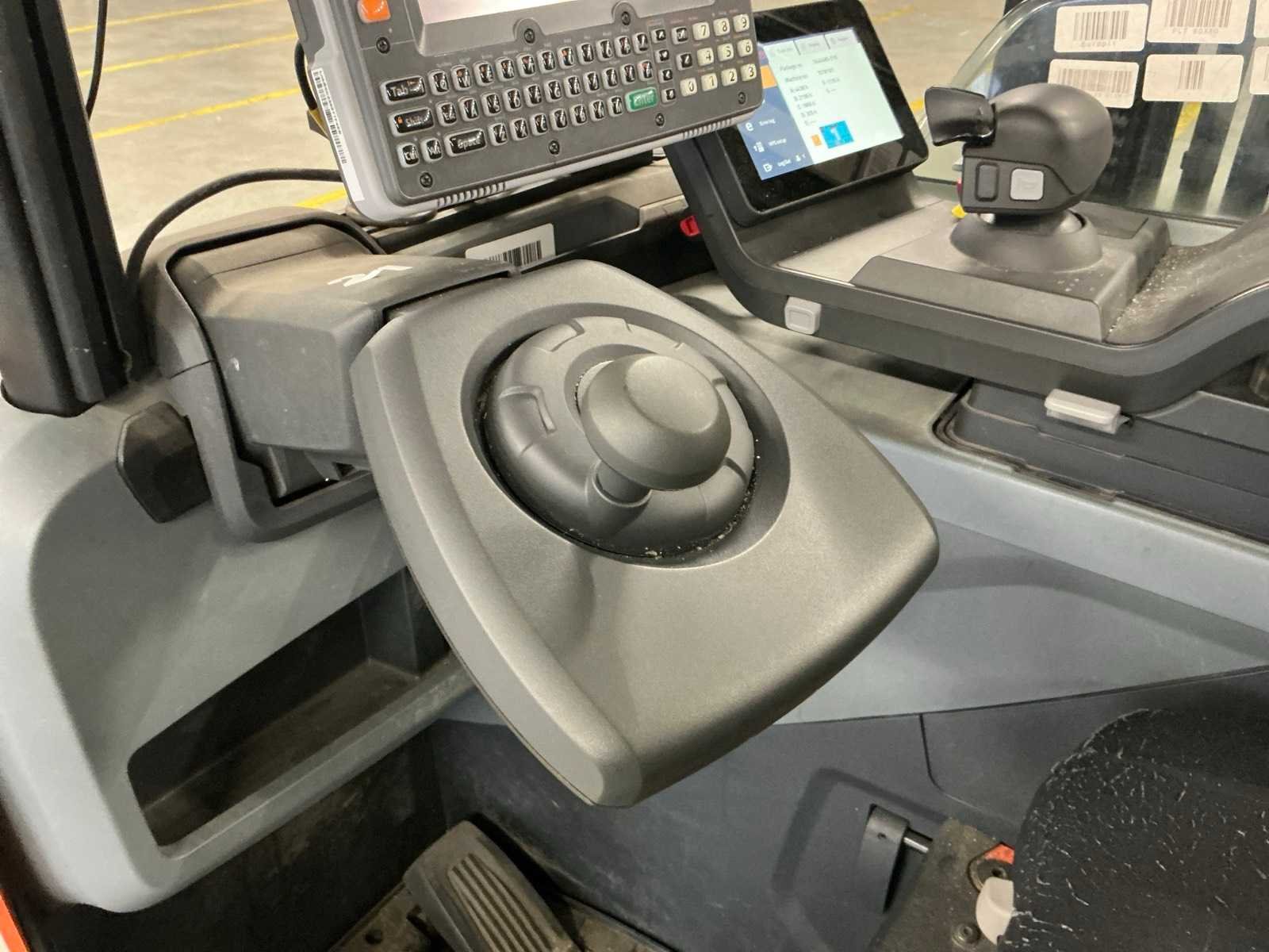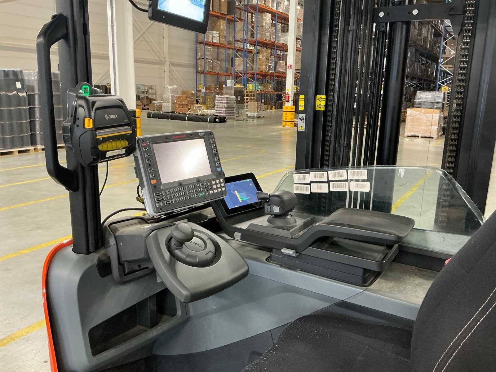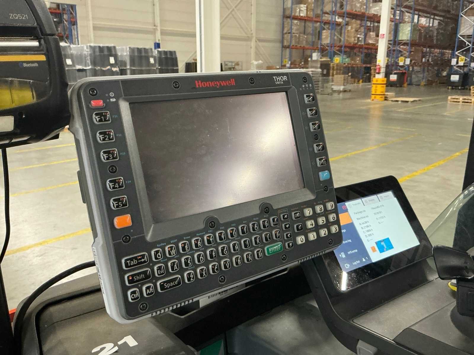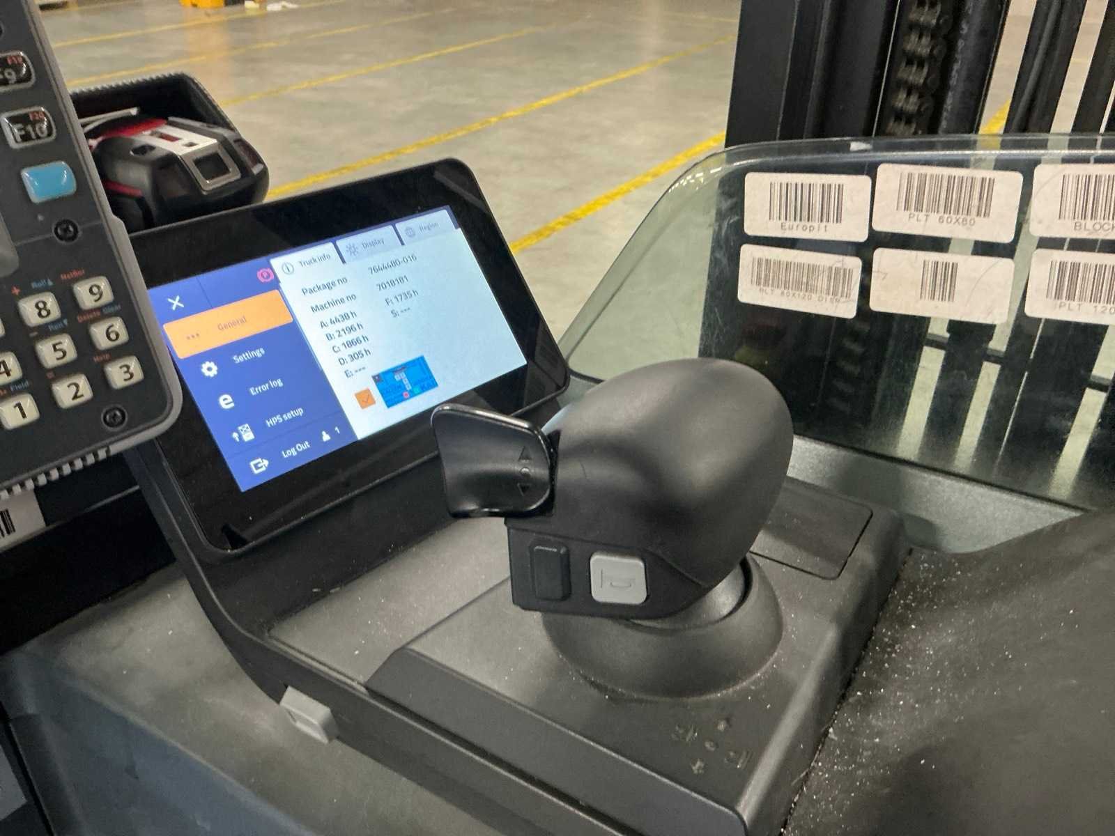 Voorzien van: camera, blue-spot, digitaal touchscreen display, HoneyWell Thor VM1A Android tablet, HoneyWell barcode scanner, Zebra ZQ521 labelprinter. Merk: Toyota Type: RFE160H Bouwjaar: 2023 Serienummer: 7018181 Afgelezen urenstand: 4438 Accu lader: true Side-shift: true Eigen gewicht: 3095kg Hefvermogen: 1600kg Lepellengte: 1140mm Max. hefhoogte: 10500mm Minimale doorrijhoogte: 4050mm Totale afmeting L: 2500mm Totale afmeting Breedte: 1250mm Totale afmeting Hoogte: 4050mm Elektrisch: true