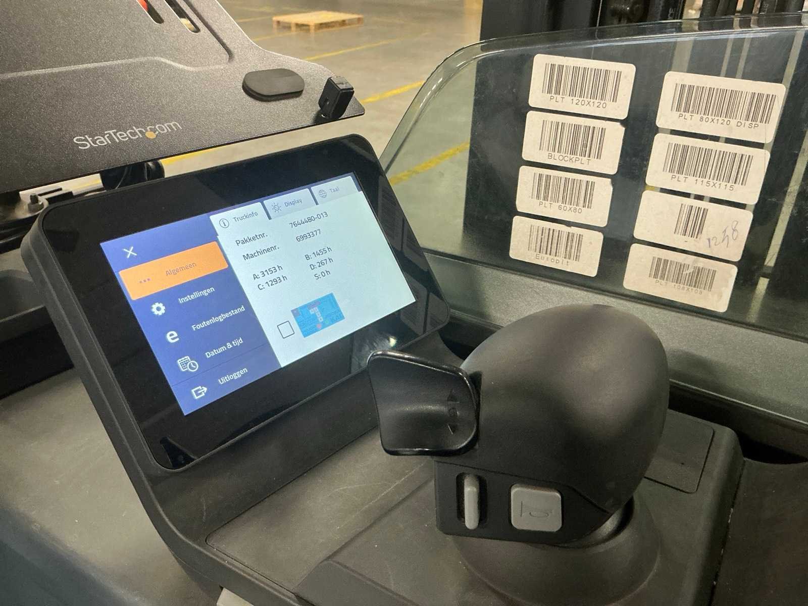 Voorzien van: camera, blue-spot, digitaal touchscreen display, Zebra ZQ521 labelprinter. Merk: Toyota Type: RFE160H Bouwjaar: 2023 Serienummer: 6993377 Afgelezen urenstand: 3153 Accu lader: true Side-shift: true Eigen gewicht: 3176kg Hefvermogen: 1600kg Lepellengte: 1140mm Max. hefhoogte: 10500mm Minimale doorrijhoogte: 4050mm Totale afmeting L: 2500mm Totale afmeting Breedte: 1250mm Totale afmeting Hoogte: 4050mm Elektrisch: true