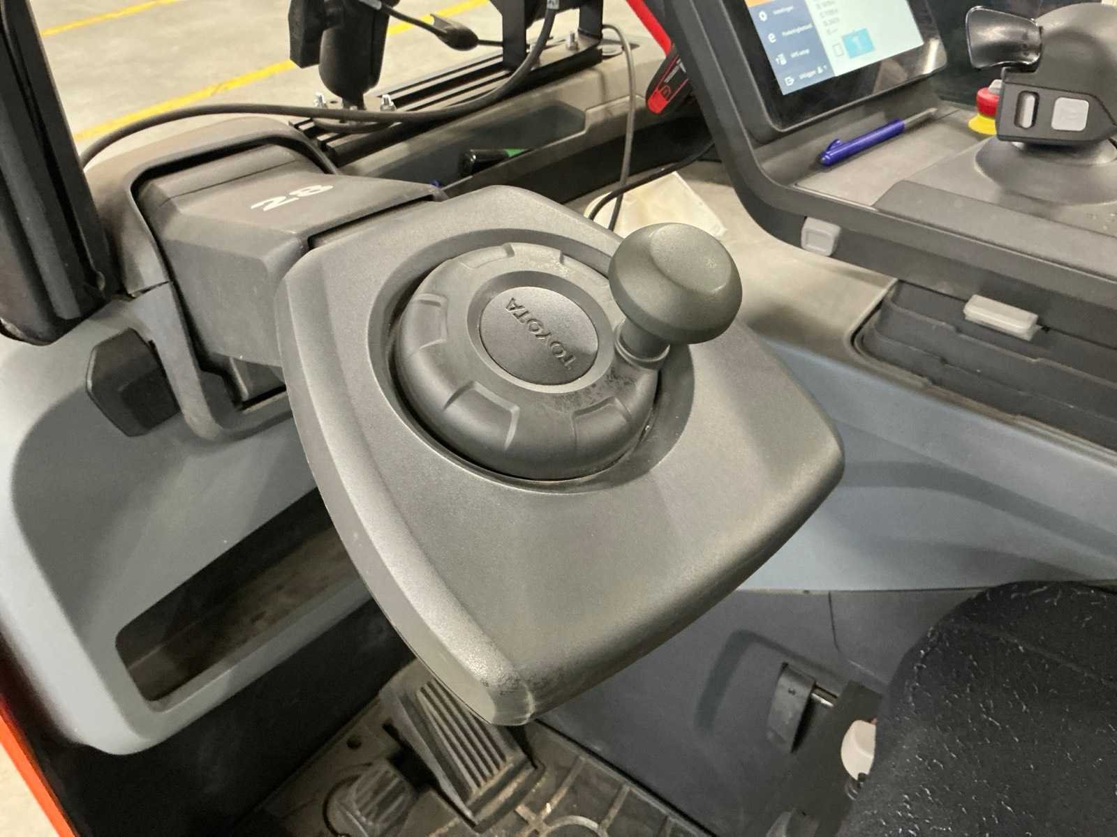 Voorzien van: camera, blue-spot, digitaal touchscreen display, HoneyWell Thor VM1A Android tablet, HoneyWell barcode scanner, Zebra ZQ521 labelprinter. Merk: Toyota Type: RFE160H Bouwjaar: 2023 Serienummer: 6994785 Afgelezen urenstand: 3254 Accu lader: true Side-shift: true Eigen gewicht: 3176kg Hefvermogen: 1600kg Lepellengte: 1140mm Max. hefhoogte: 10500mm Minimale doorrijhoogte: 4050mm Totale afmeting L: 2500mm Totale afmeting Breedte: 1250mm Totale afmeting Hoogte: 4050mm Elektrisch: true