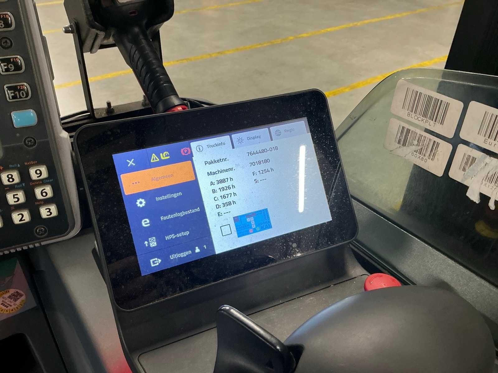 Voorzien van: camera, blue-spot, digitaal touchscreen display, HoneyWell Thor VM1A Android tablet, HoneyWell barcode scanner, Zebra ZQ521 labelprinter. Merk: Toyota Type: RFE160H Bouwjaar: 2023 Serienummer: 7018180 Afgelezen urenstand: 3887 Accu lader: true Side-shift: true Eigen gewicht: 3095kg Hefvermogen: 1600kg Lepellengte: 1140mm Max. hefhoogte: 10500mm Minimale doorrijhoogte: 4050mm Totale afmeting L: 2500mm Totale afmeting Breedte: 1250mm Totale afmeting Hoogte: 4050mm Elektrisch: true