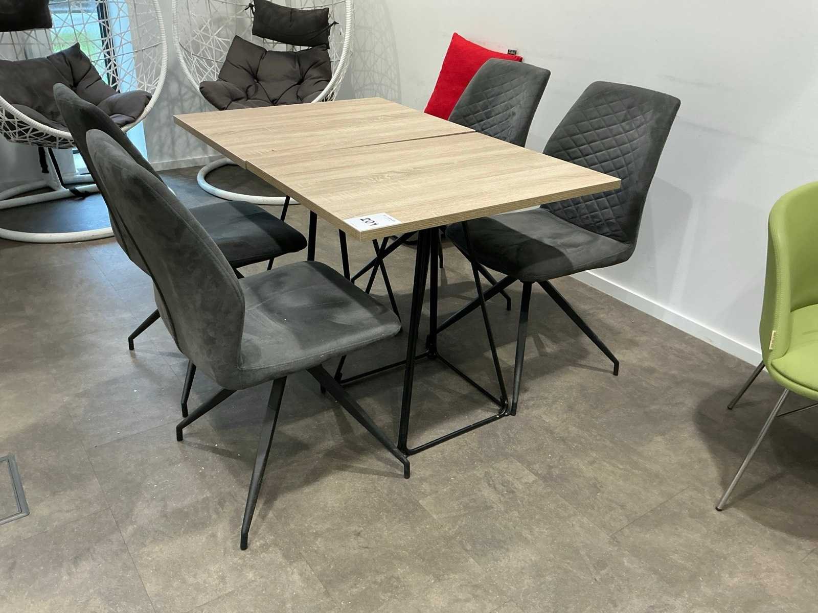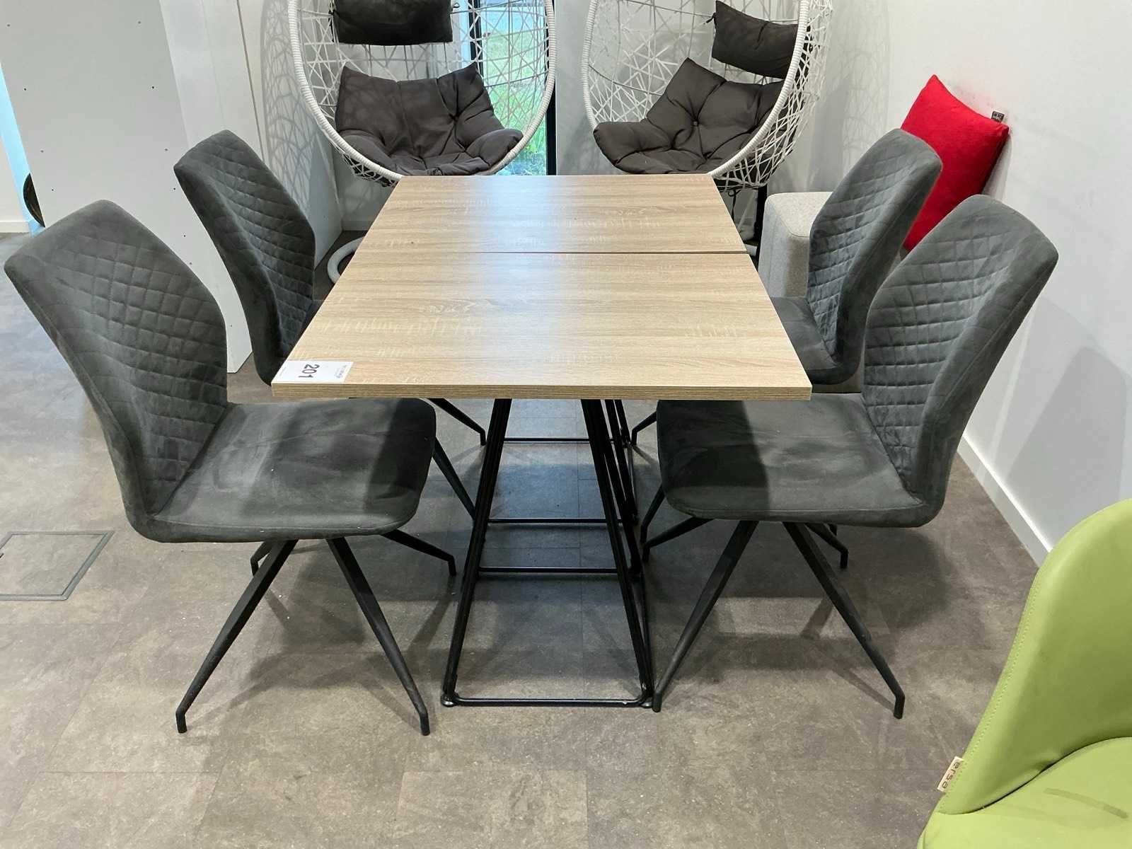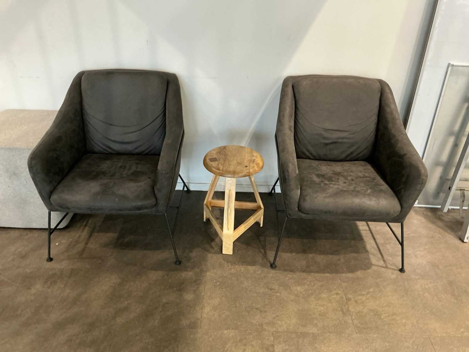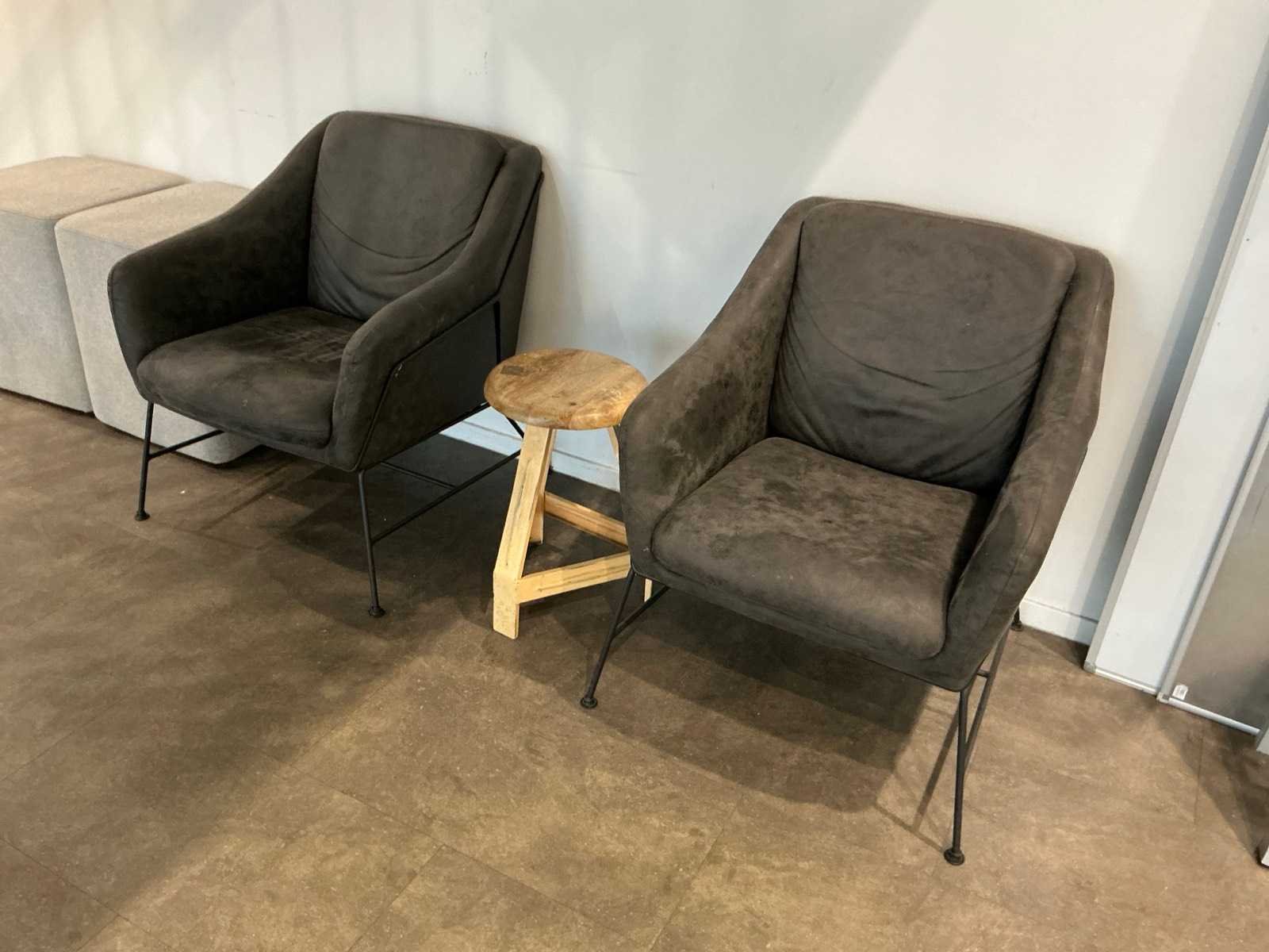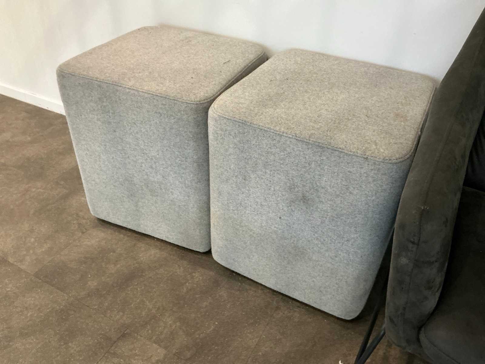 Bestaande uit: 2x kantinetafel (60x80x75 cm), 6x vergaderstoel, 2x fauteuil, 3x poef (53 cm hoog).