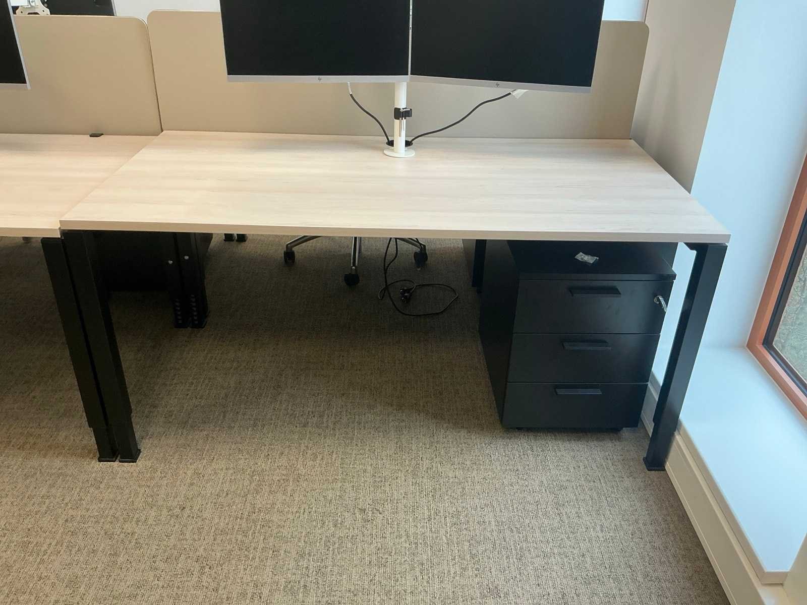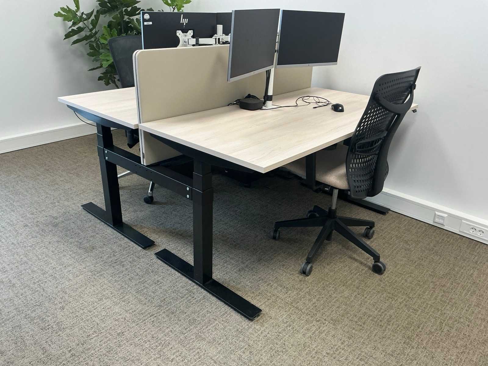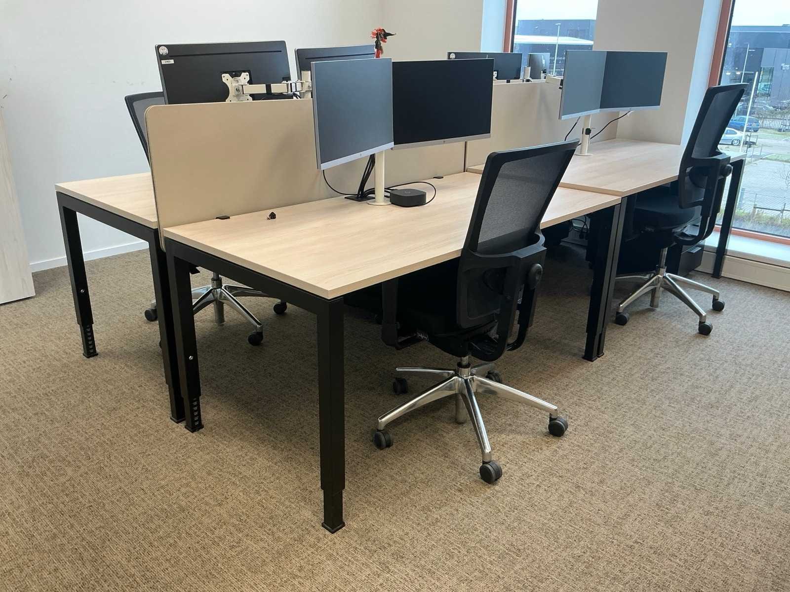 Bestaande uit: 4x bureau (160x80x75 cm) Bralco duo-bureau (bureaublad 160x80 cm), 2x opbergkast (100x46x118 cm), 6x bureaustoel. Monitoren, dockingstations en overige goederen zijn niet inbegrepen.
