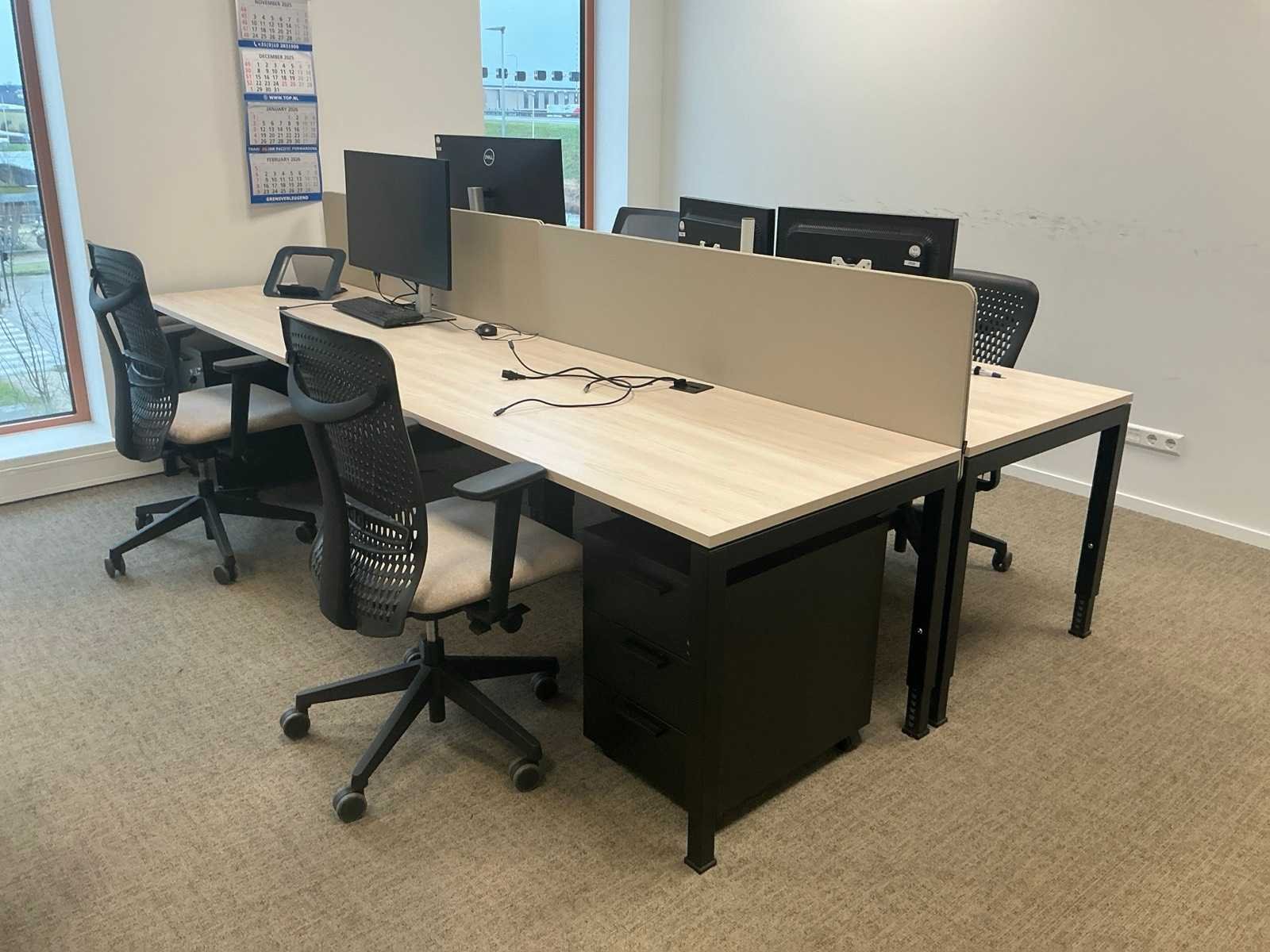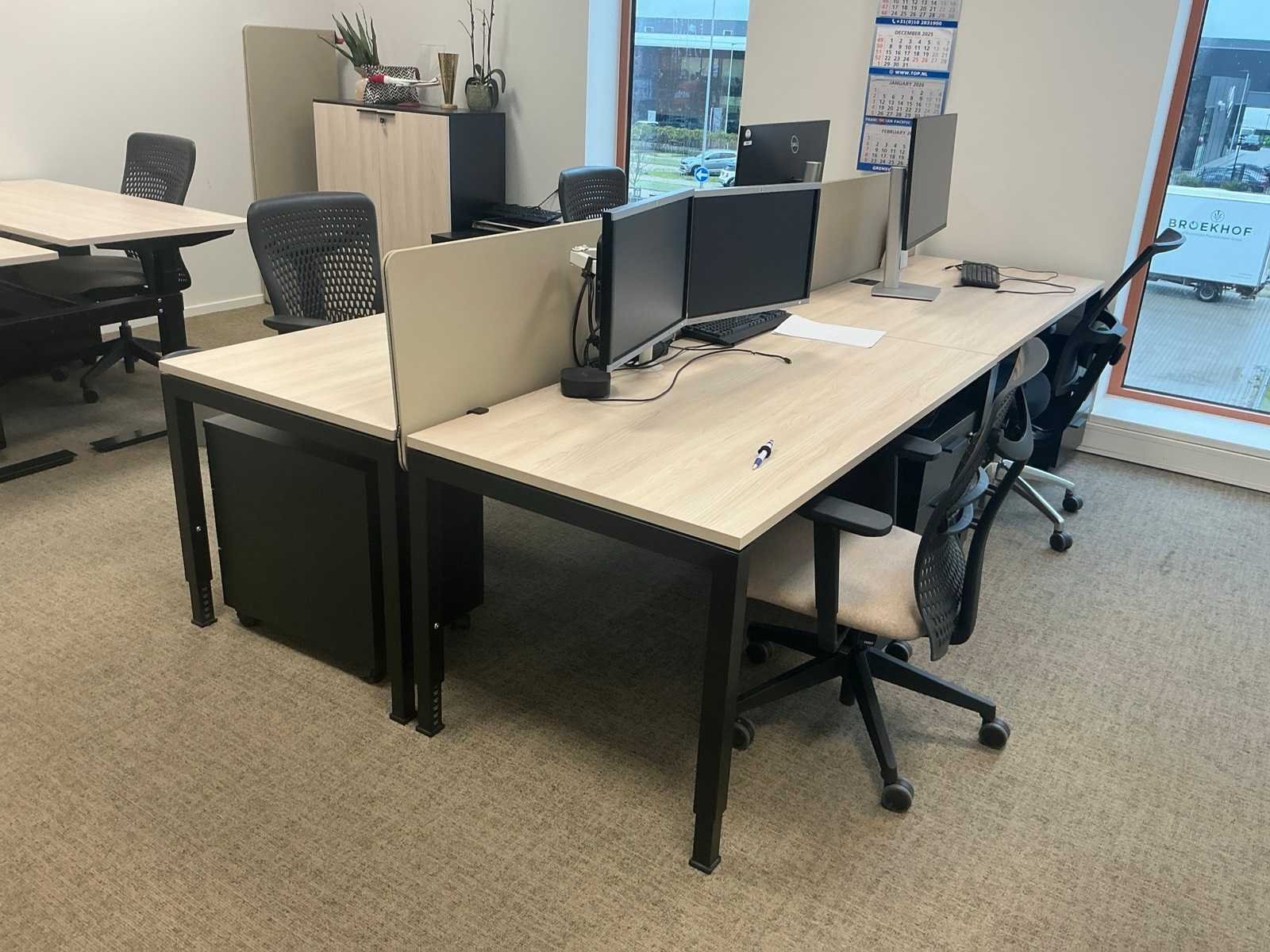 Bestaande uit: Bralco 4x bureau (160x80x75 cm) Bralco duo-bureau (bureaublad 160x80 cm), 1x opbergkast (100x46x118 cm), 6x bureaustoel en 6x ladekast. Monitoren, dockingstations en overige goederen zijn niet inbegrepen.
