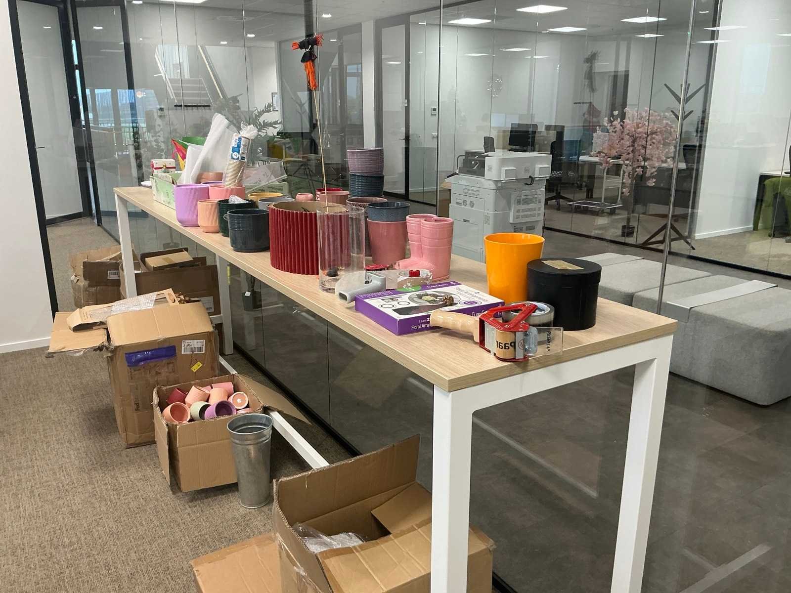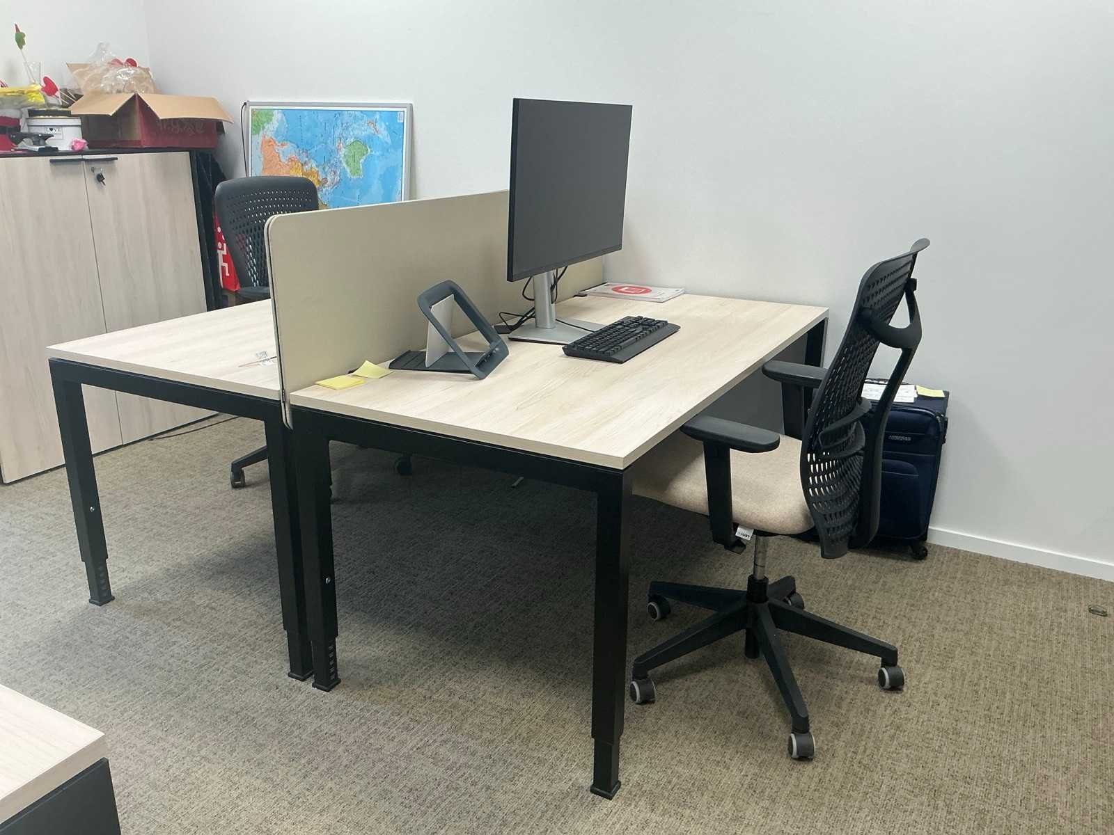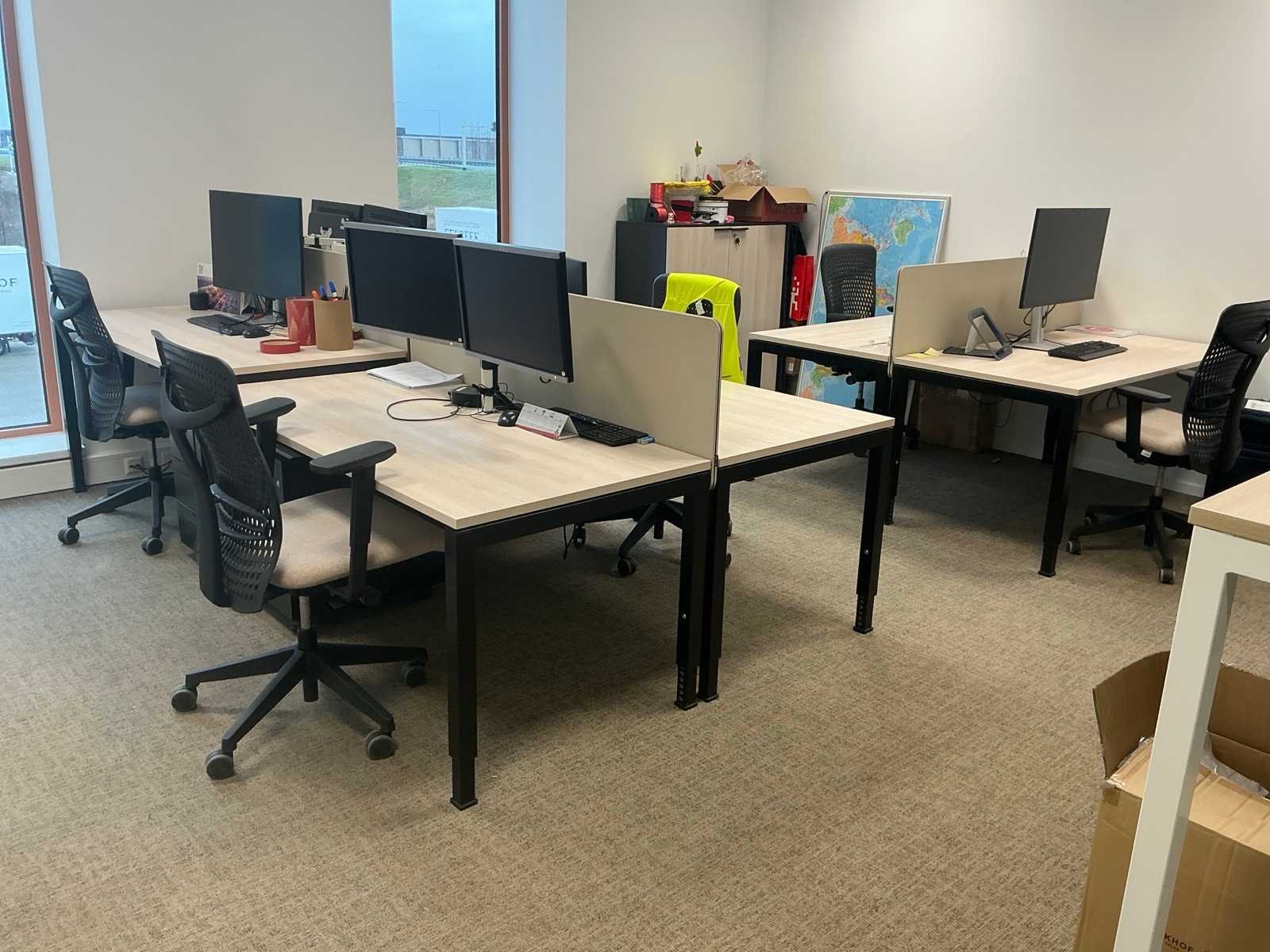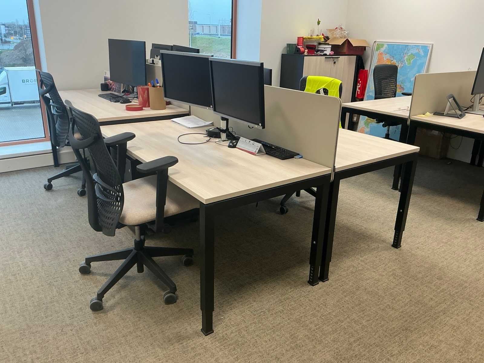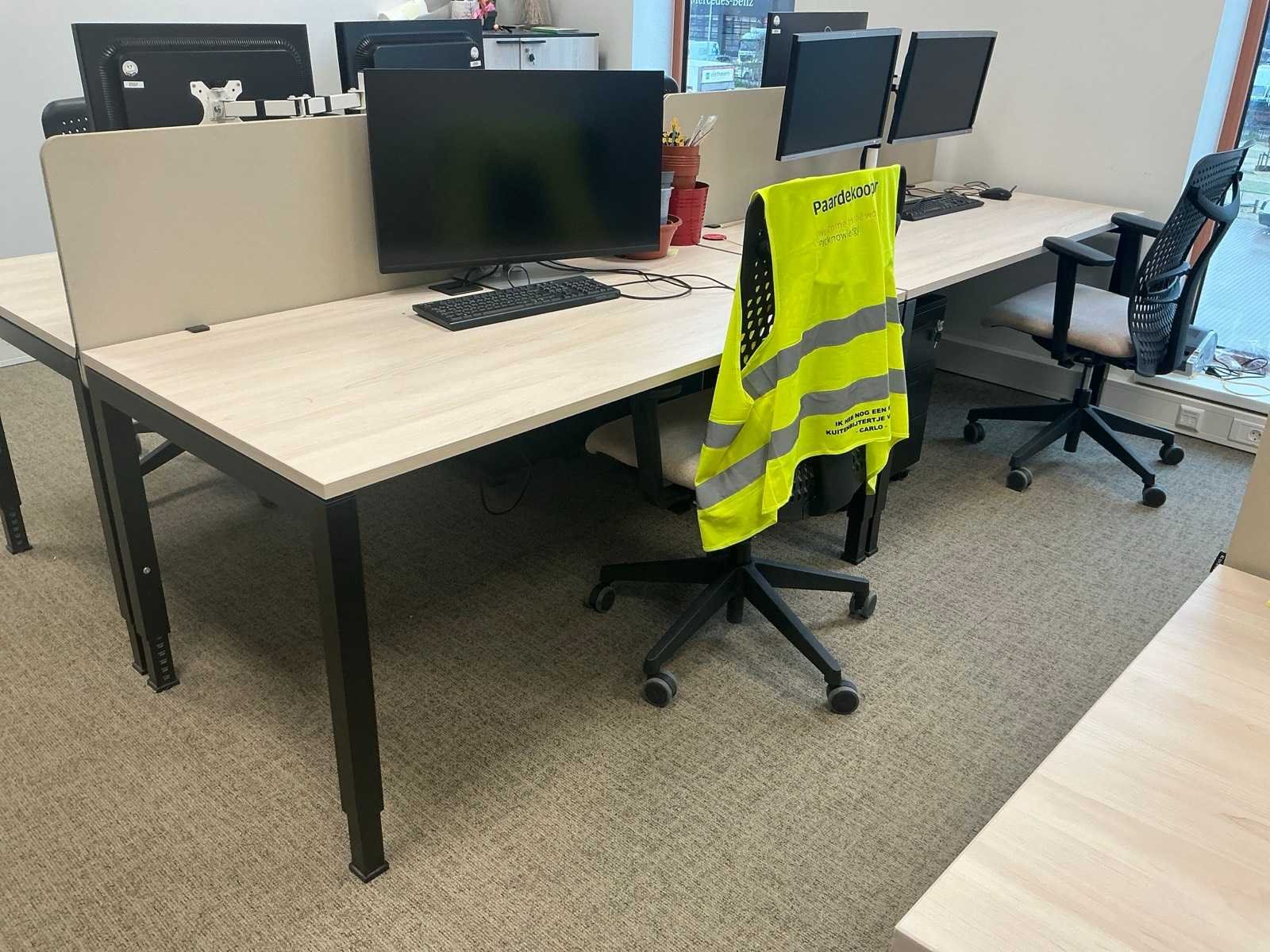 Bestaande uit: Bralco 6x bureau (160x80x75 cm), 2x opbergkast (100x46x118 cm), bartafel (320x60x110 cm), 6x bureaustoel en 6x ladekast. Monitoren, dockingstations en overige goederen zijn niet inbegrepen.